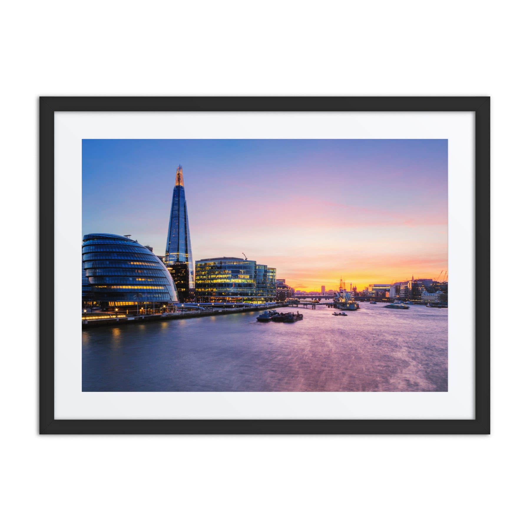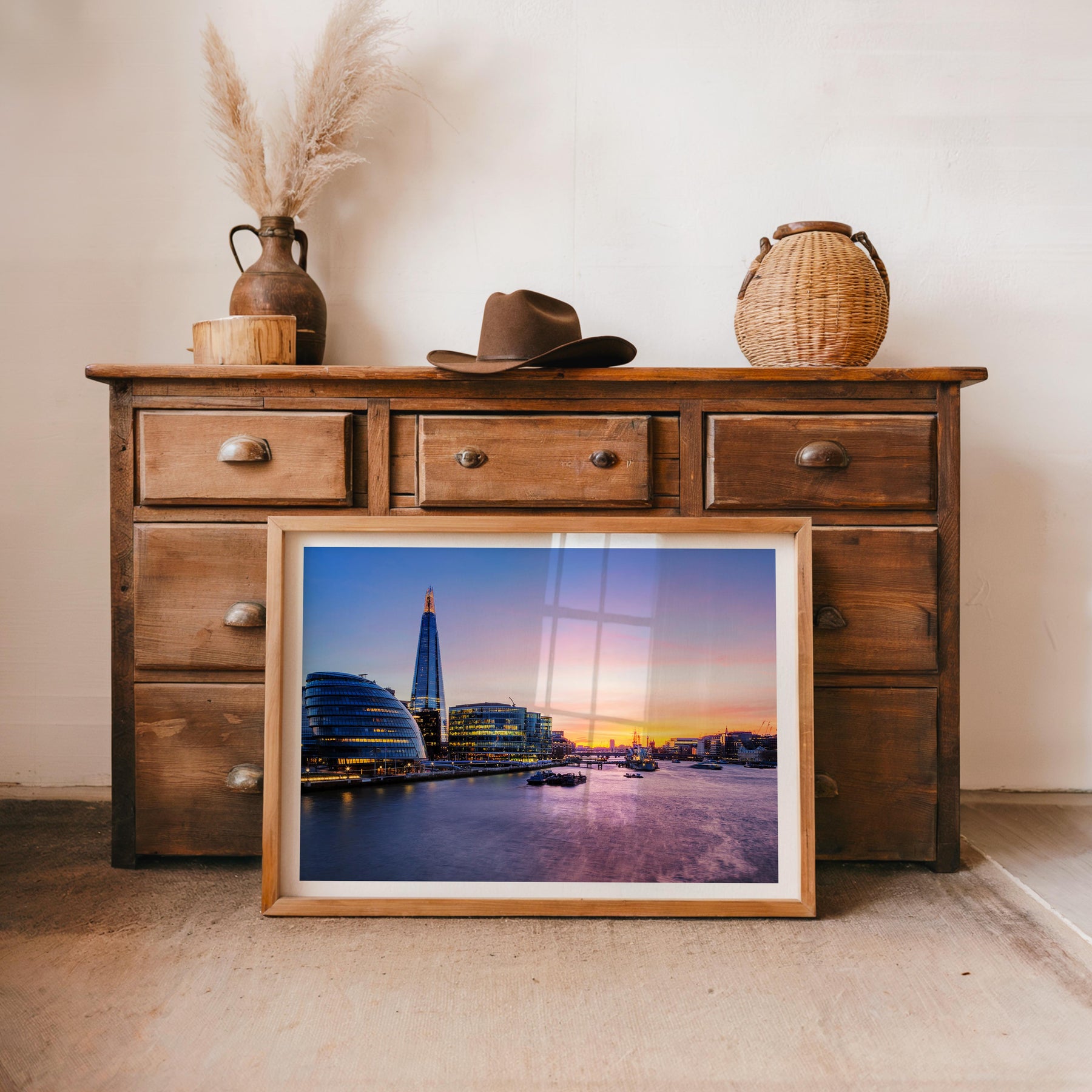 Elevate your surroundings with this elegant framed poster showcasing a stunning river view of the Shard at sunset. It’s the perfect way to add a touch of sophistication to your space.