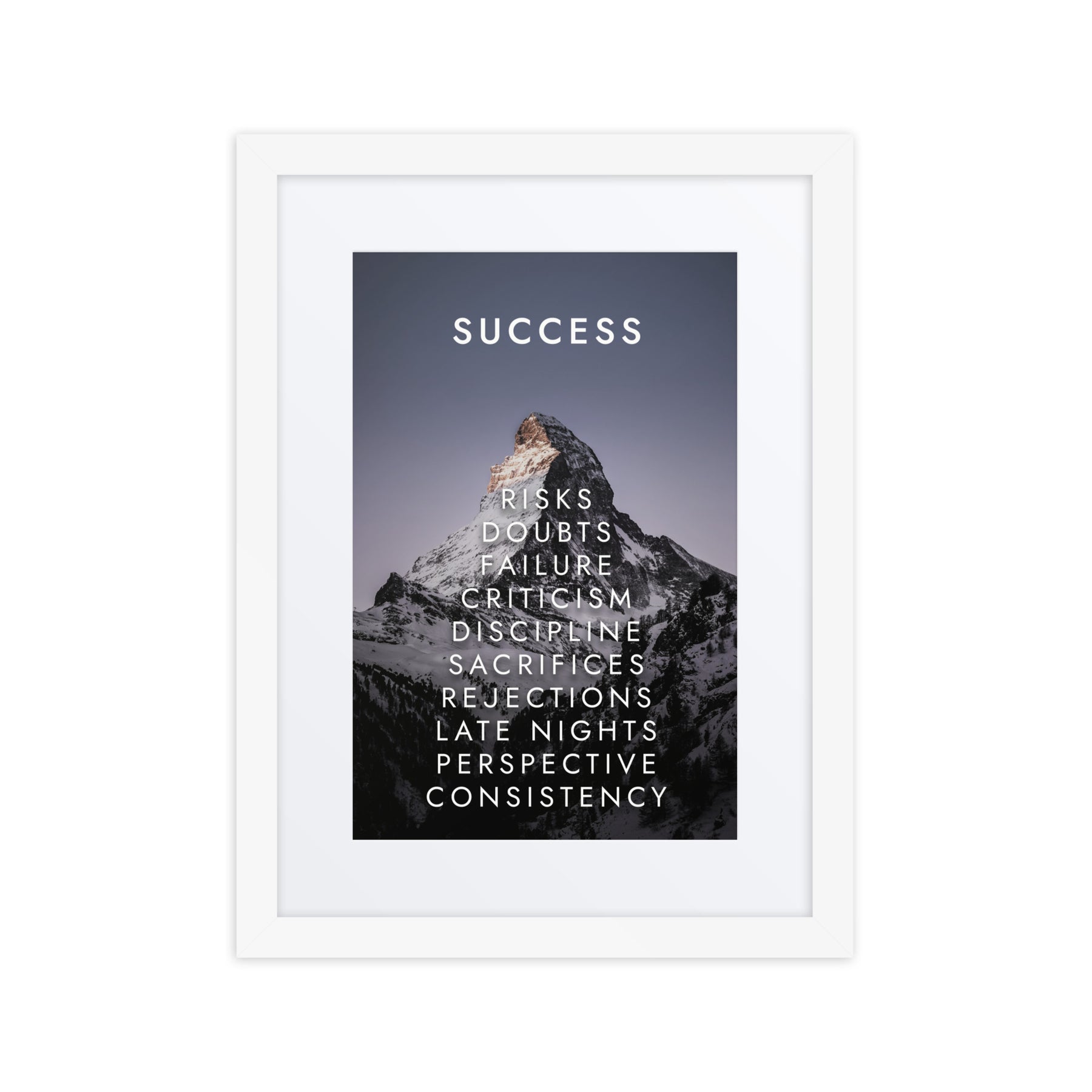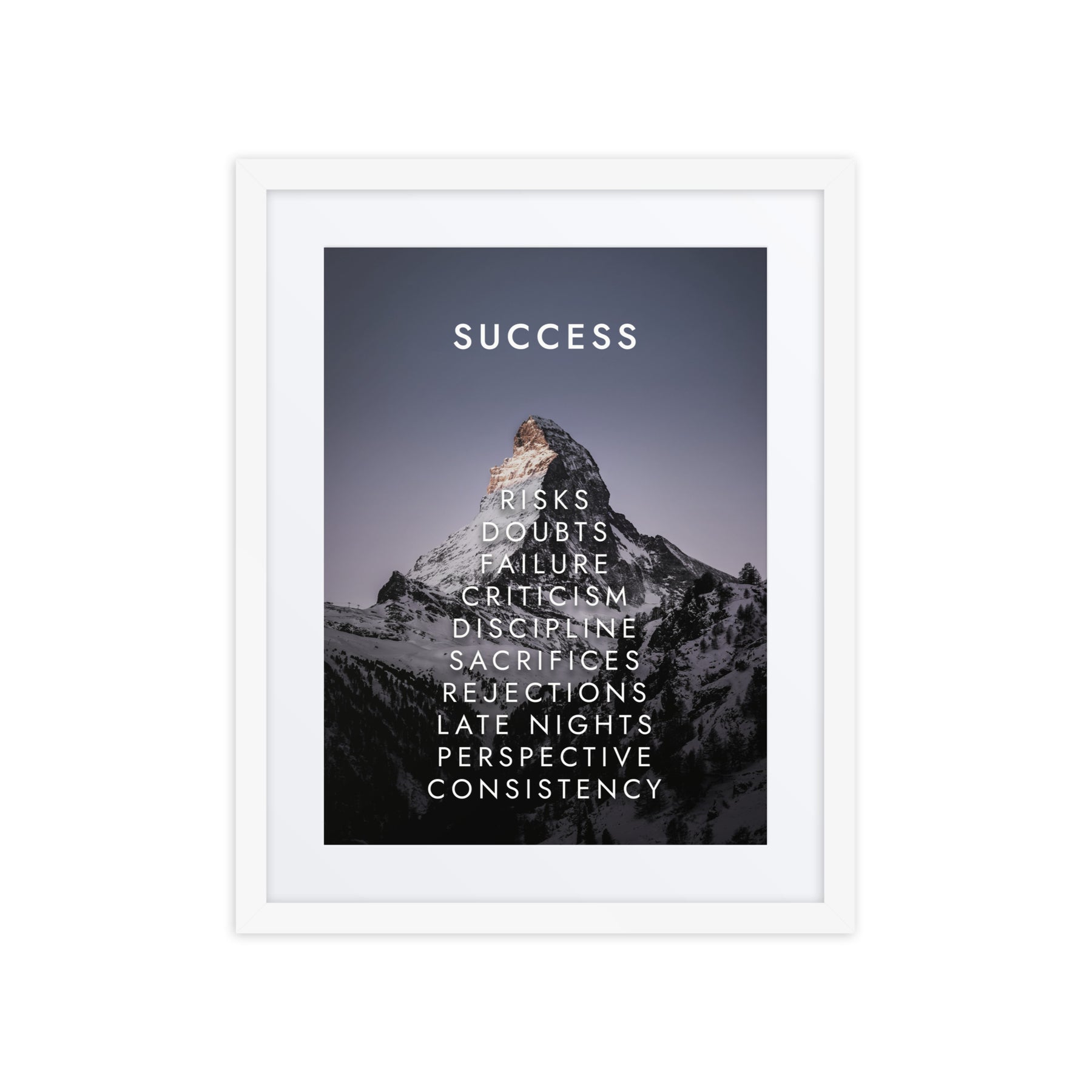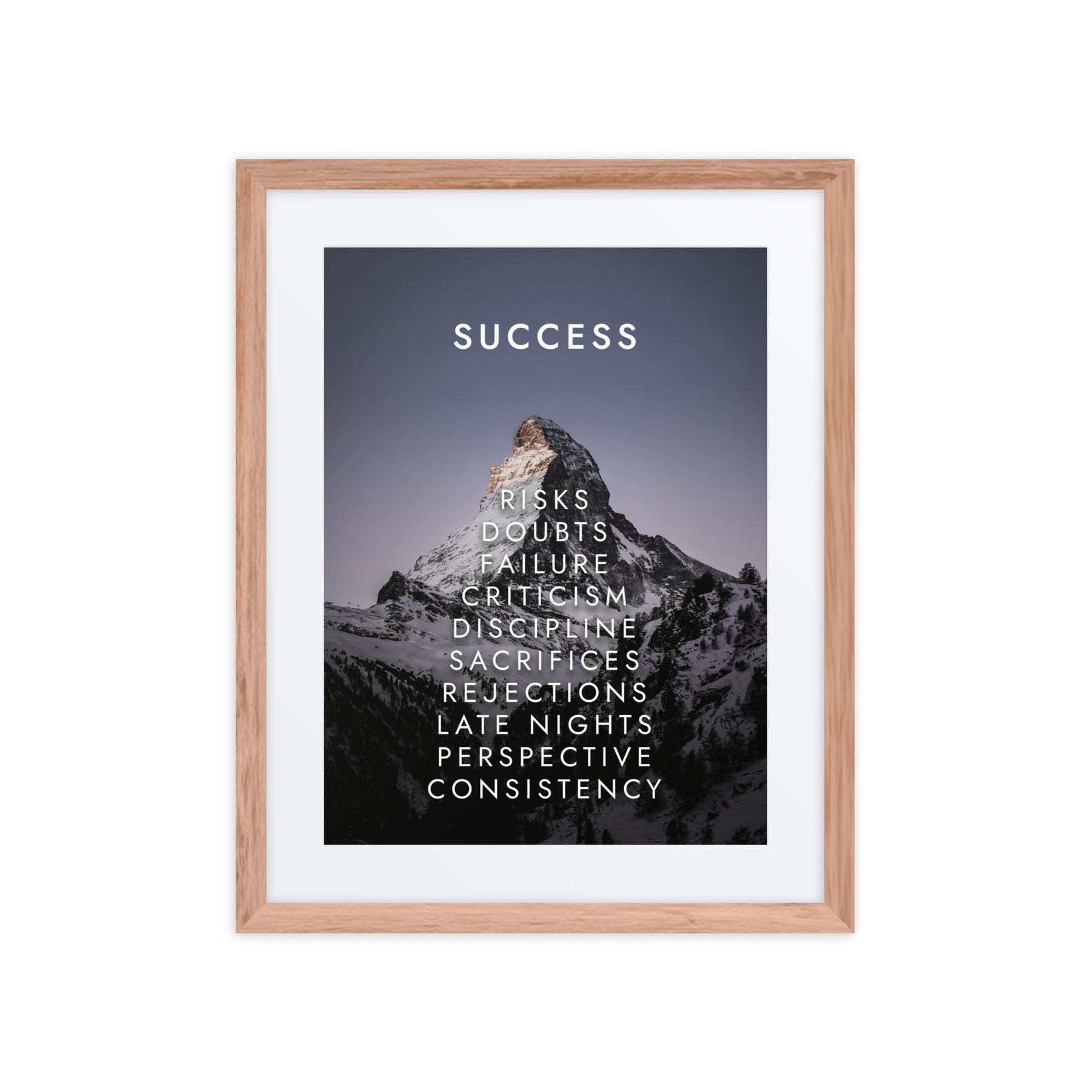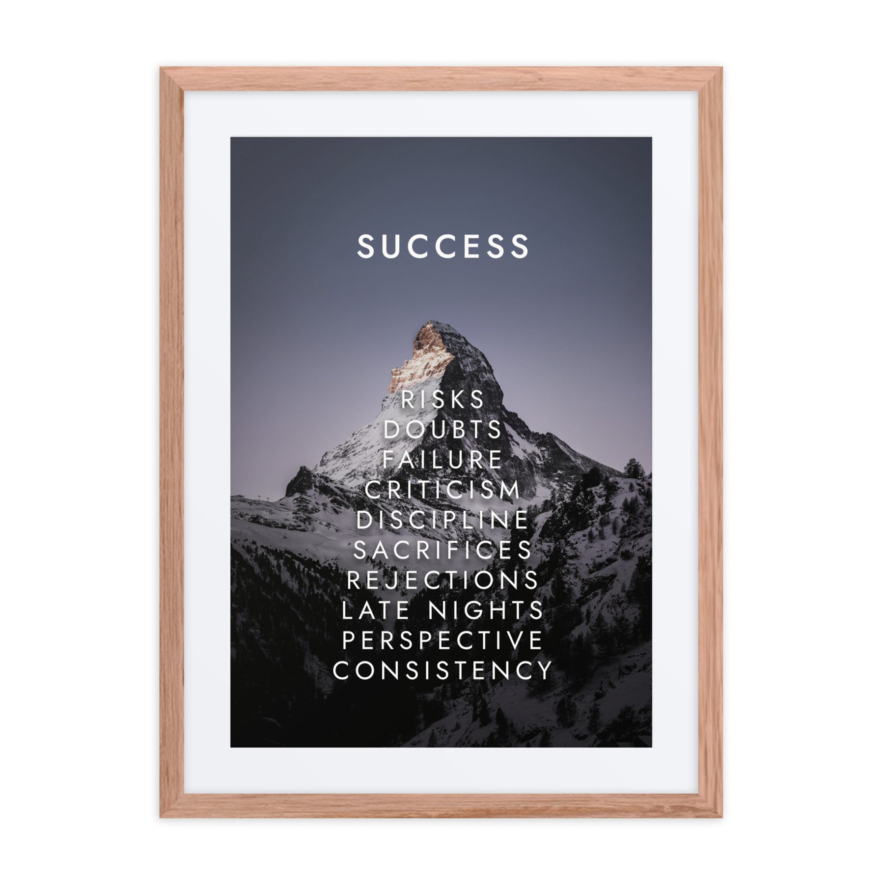 Reach new heights with this inspiring "Success" framed wall art! Showcasing a stunning mountain backdrop , it highlights the key traits necessary for success: risks, discipline , and perseverance. Ideal for any living room or workspace , this piece not only beautifies your decor but also fuels your ambition . Let it inspire you to conquer your dreams every day!