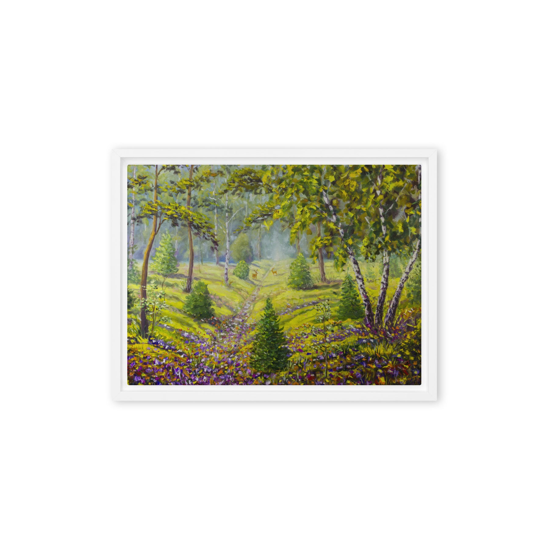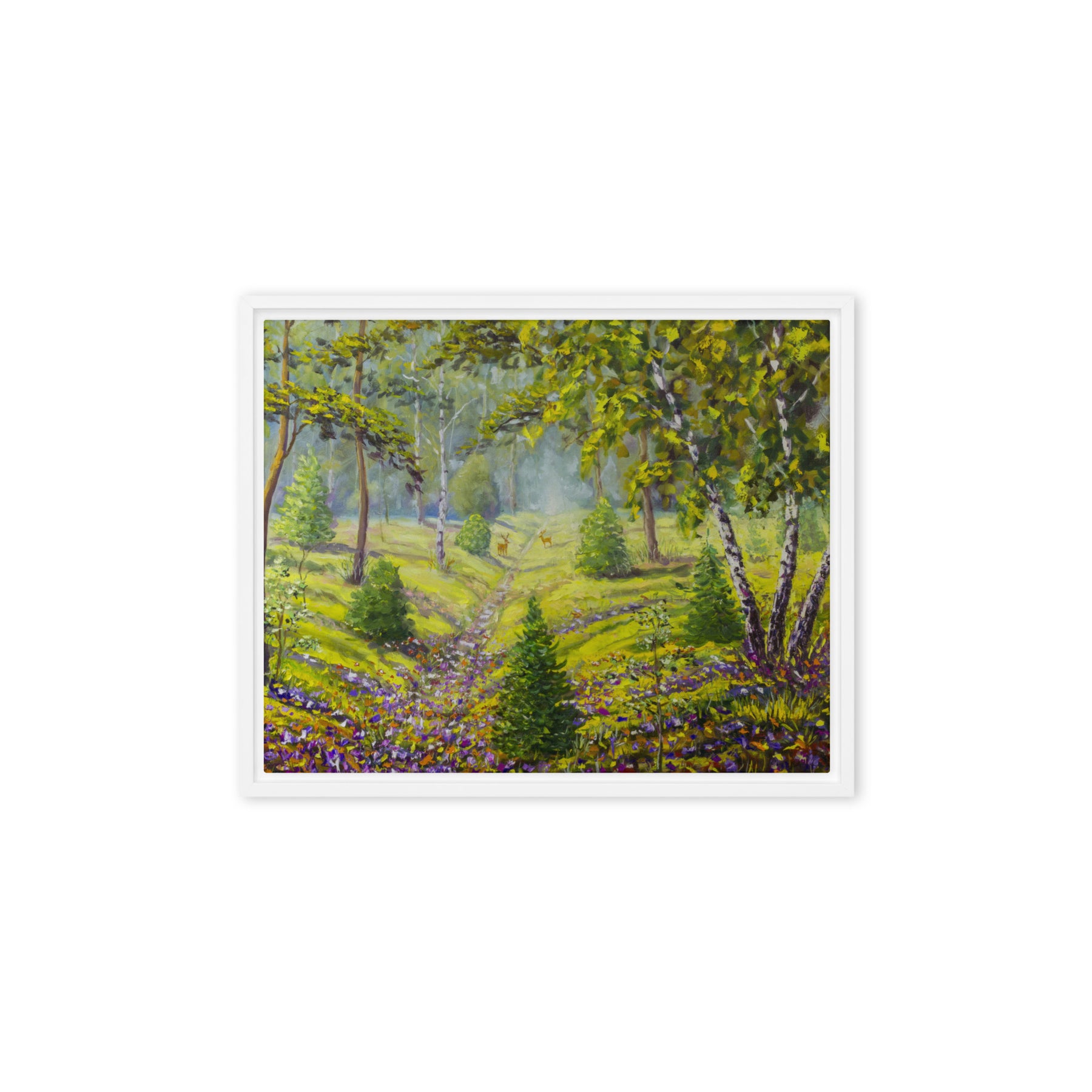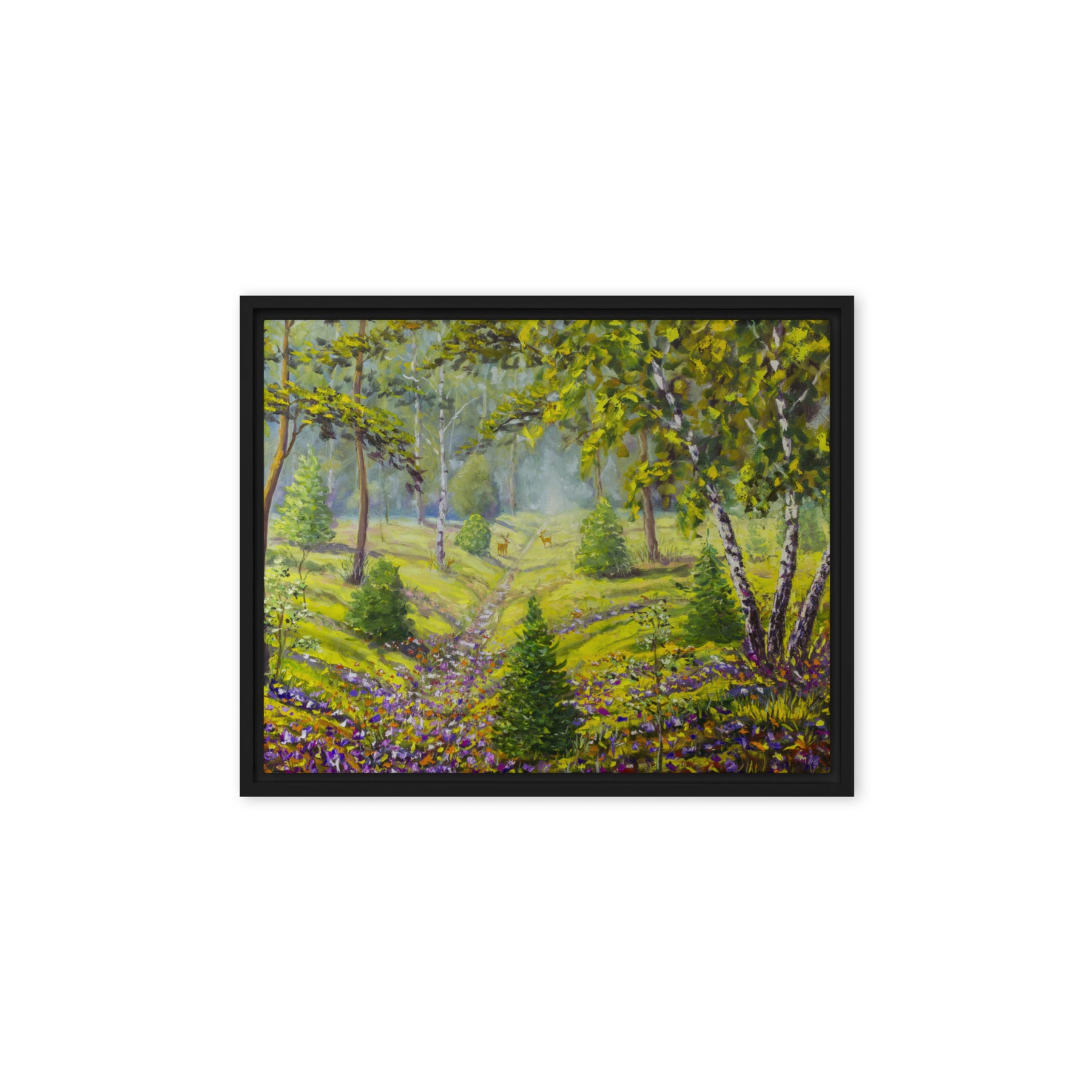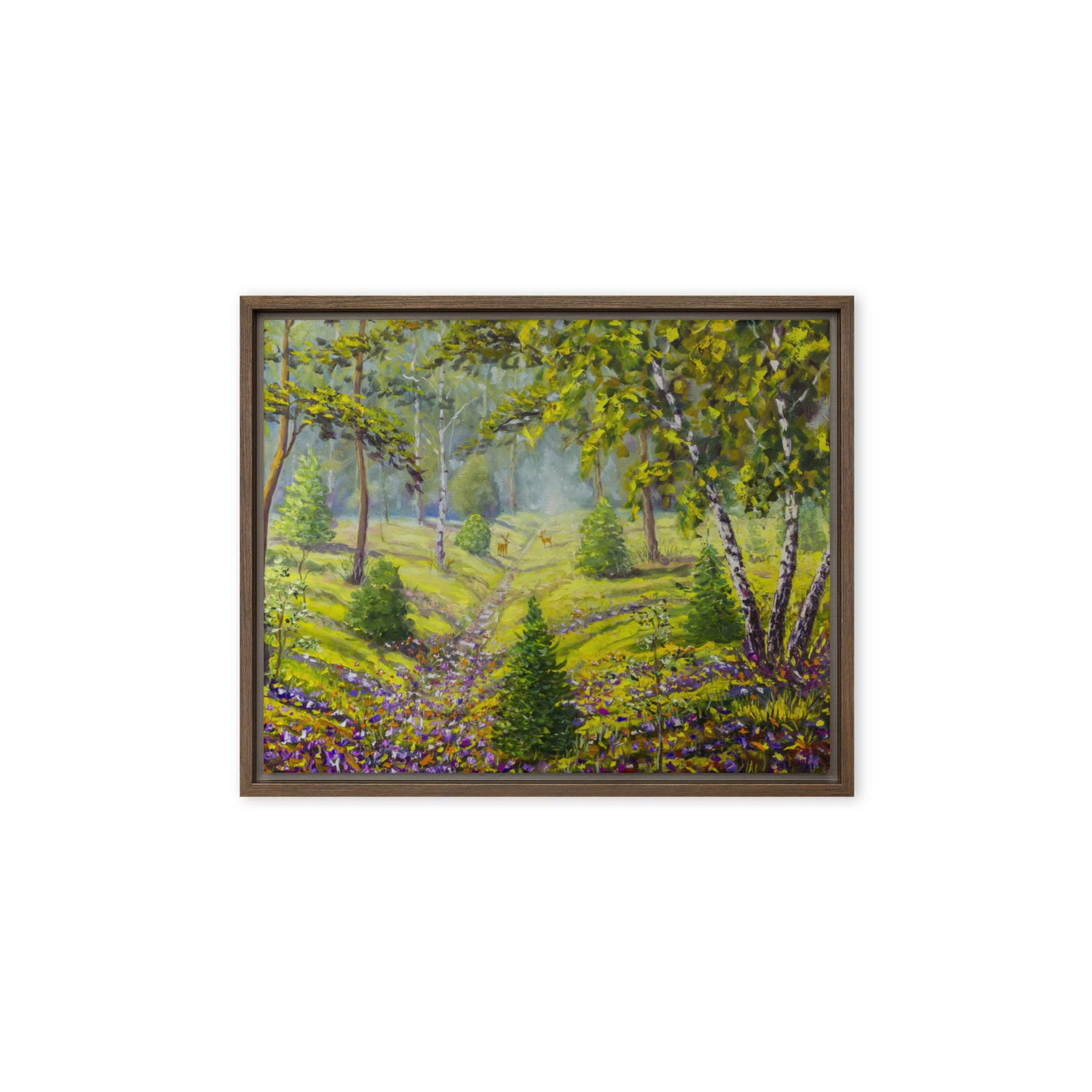 Step into a world of enchantment with "Woodland Whispers." This framed canvas wall art immerses you in a lush, dreamy forest scene, perfect for enhancing your bedroom or living room decor. Ideal for nature lovers and Gen Z renters seeking a digital art gallery online, this piece revitalizes any space with its rich greenery and peaceful allure, inviting you to wander and wonder.