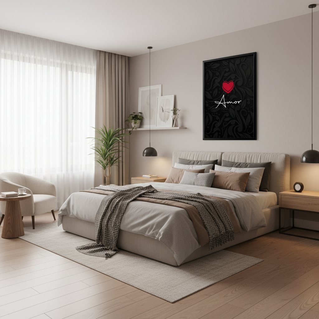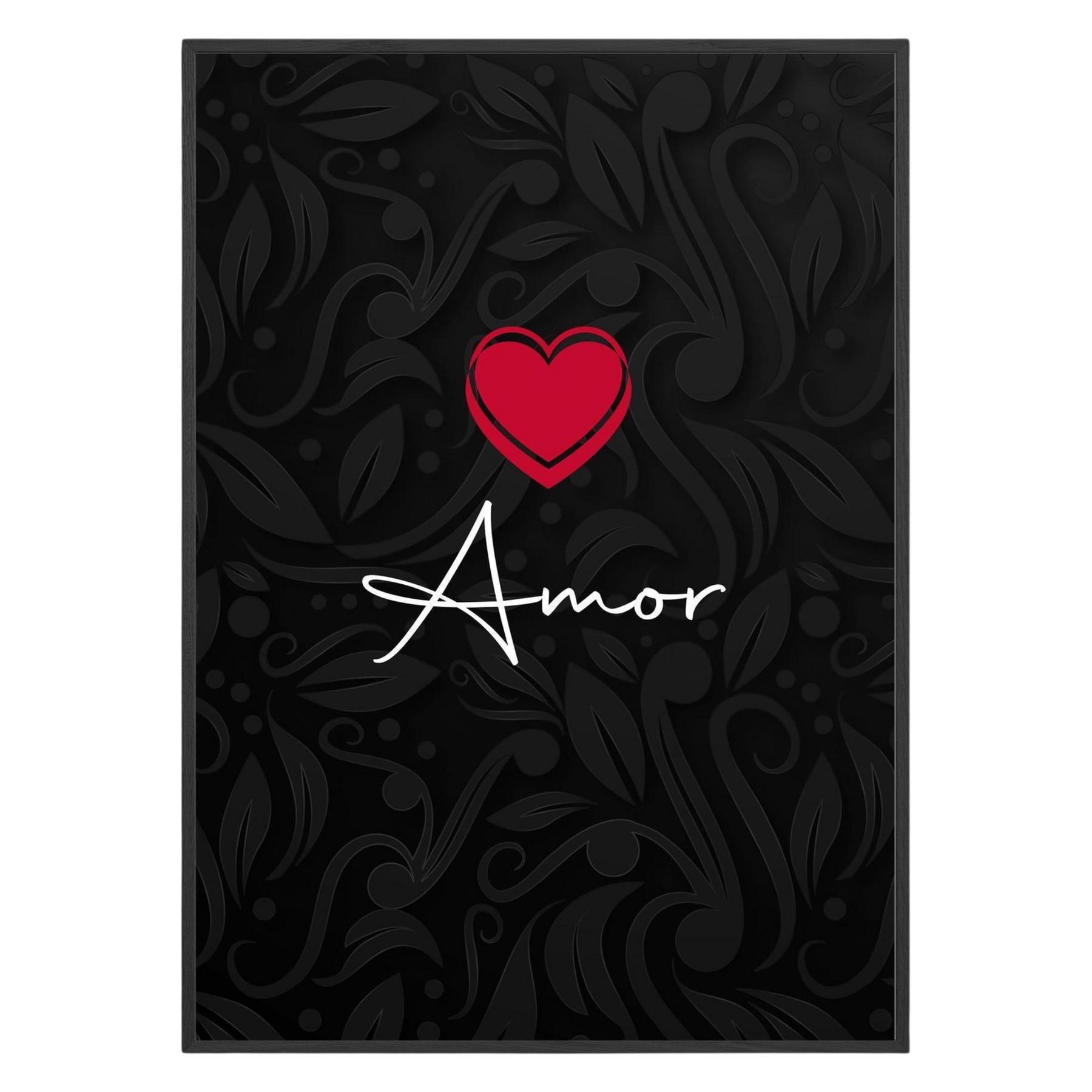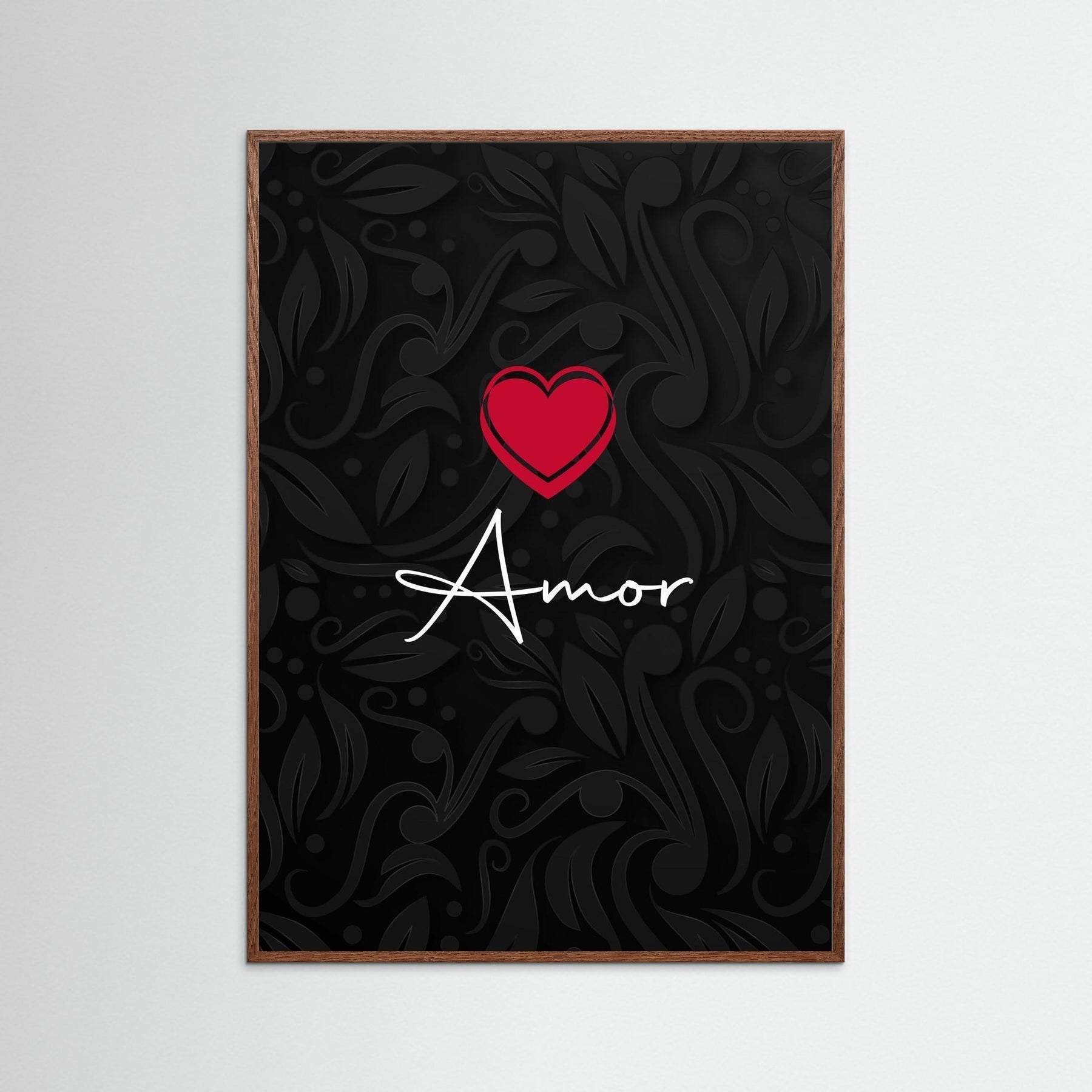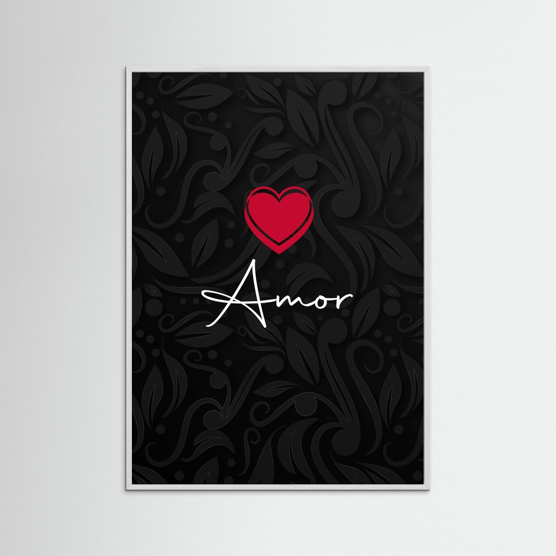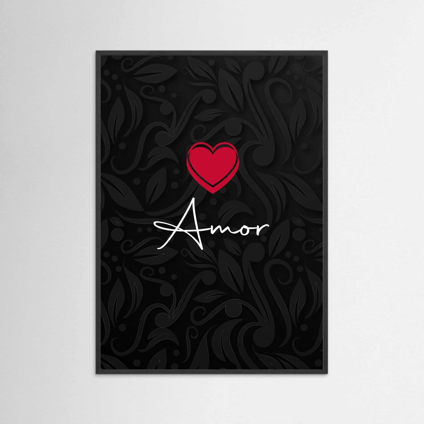 Embrace the mystique of romance with "Mystic Love: Elegant Amor with Heart." This stunning framed statement art piece features elegant calligraphy intertwined with delicate florals, forming the word "Amor." The intricate design creates a captivating focal point that speaks to the soul, making it a perfect addition for anyone wishing to celebrate their love story.