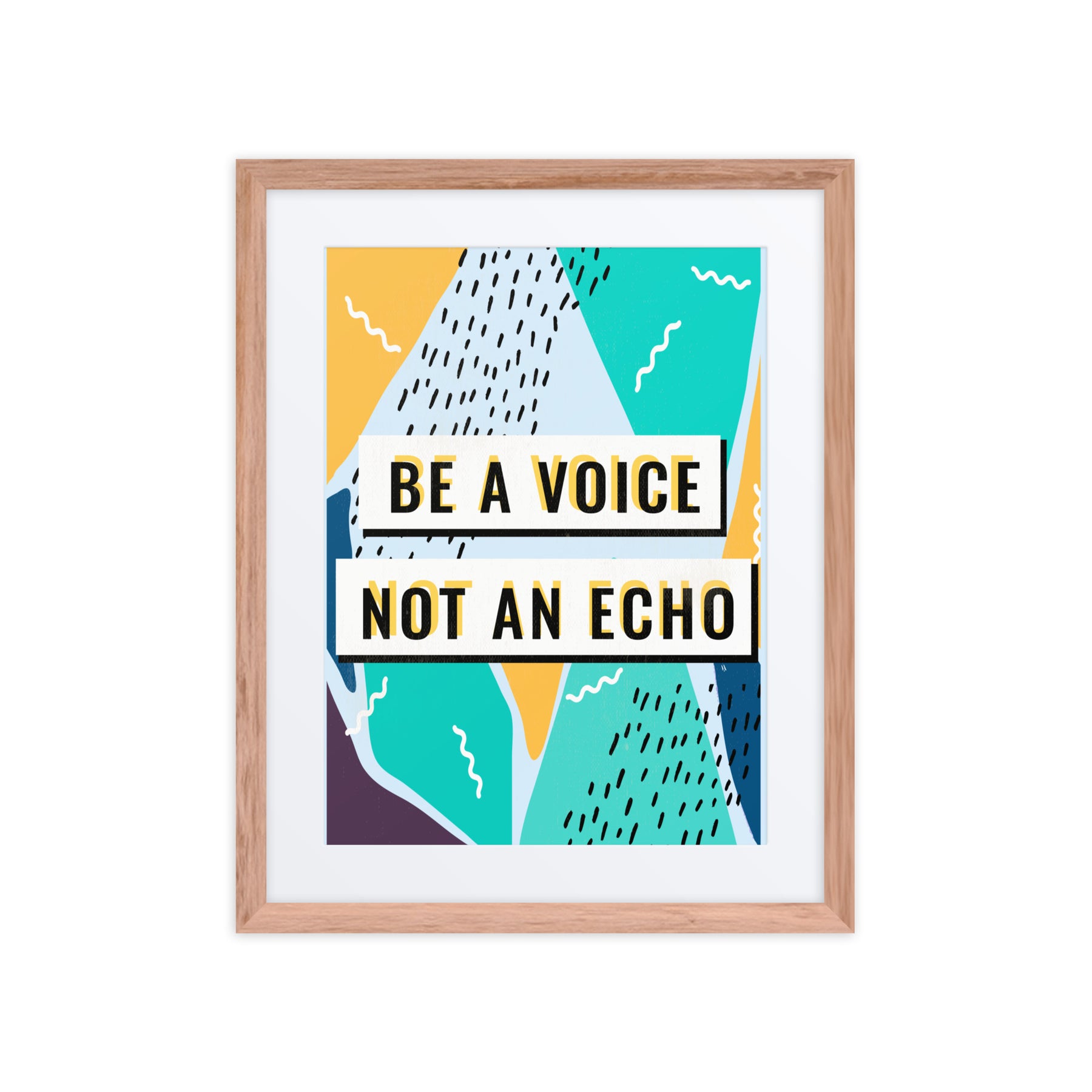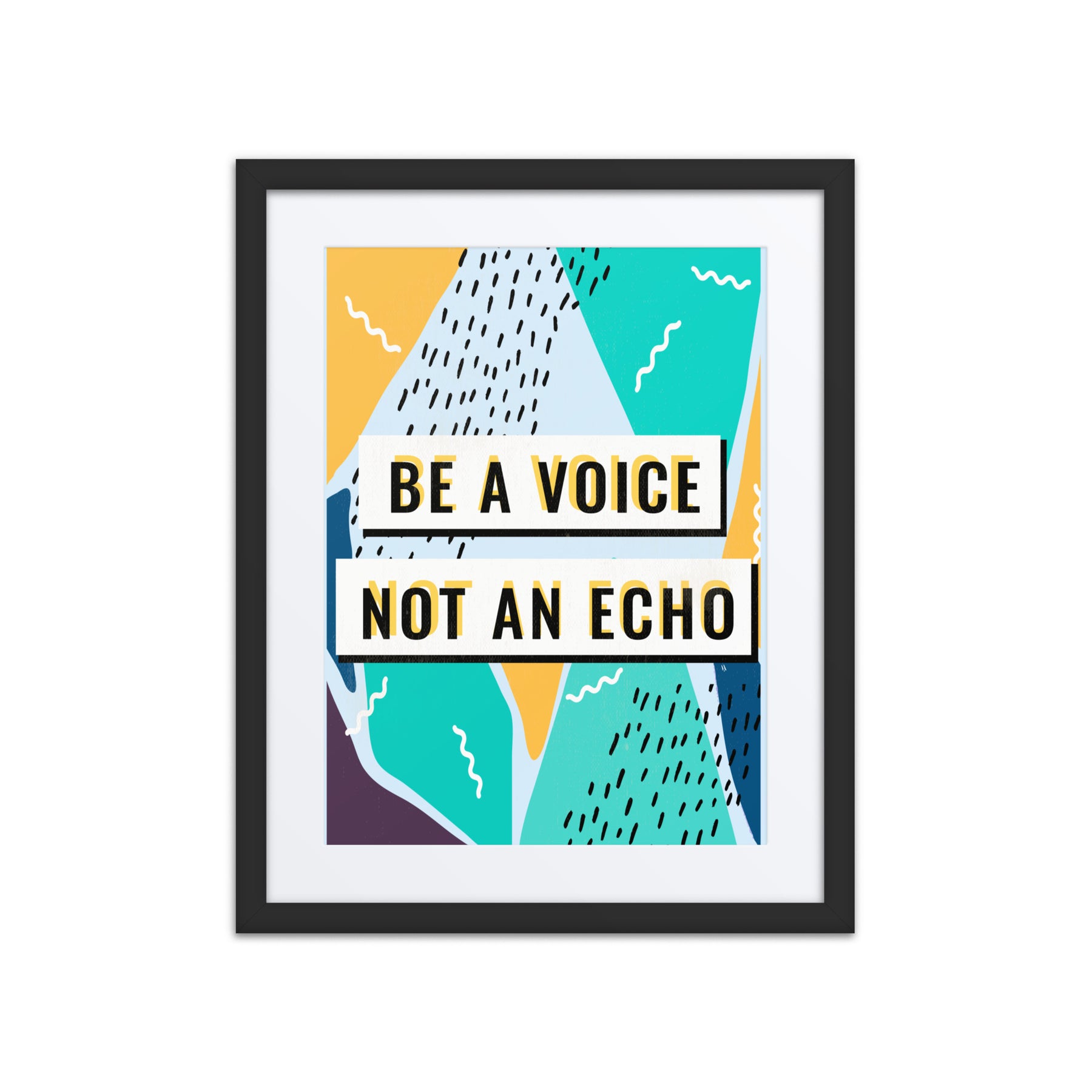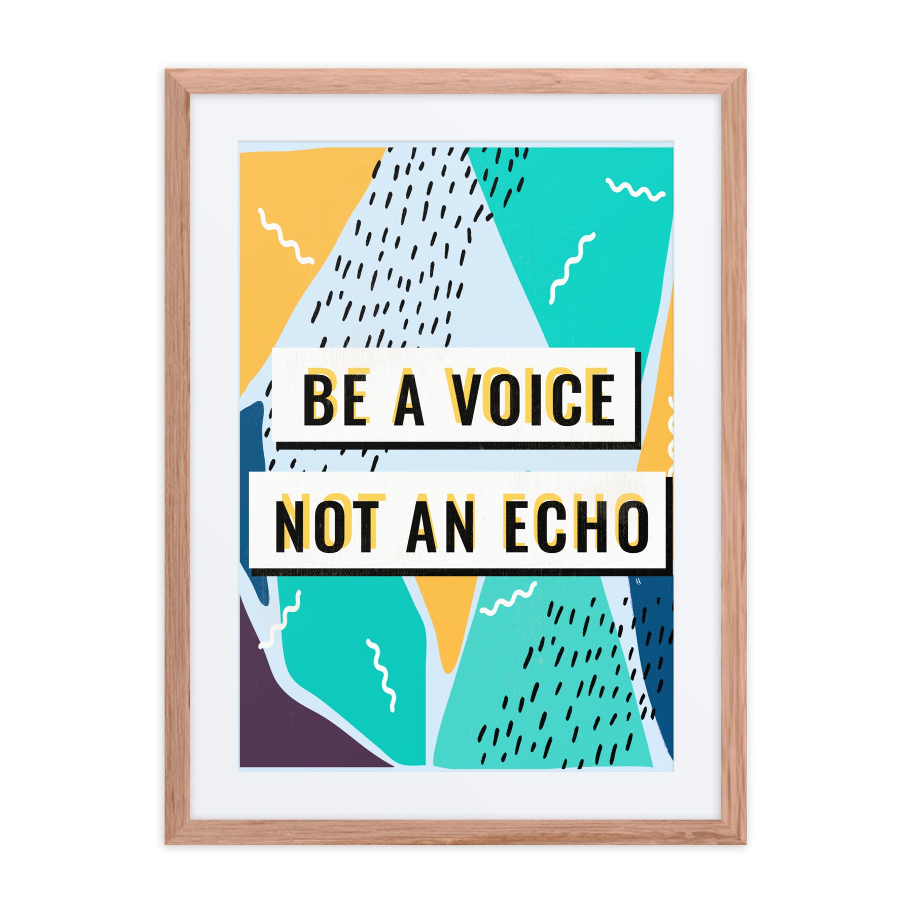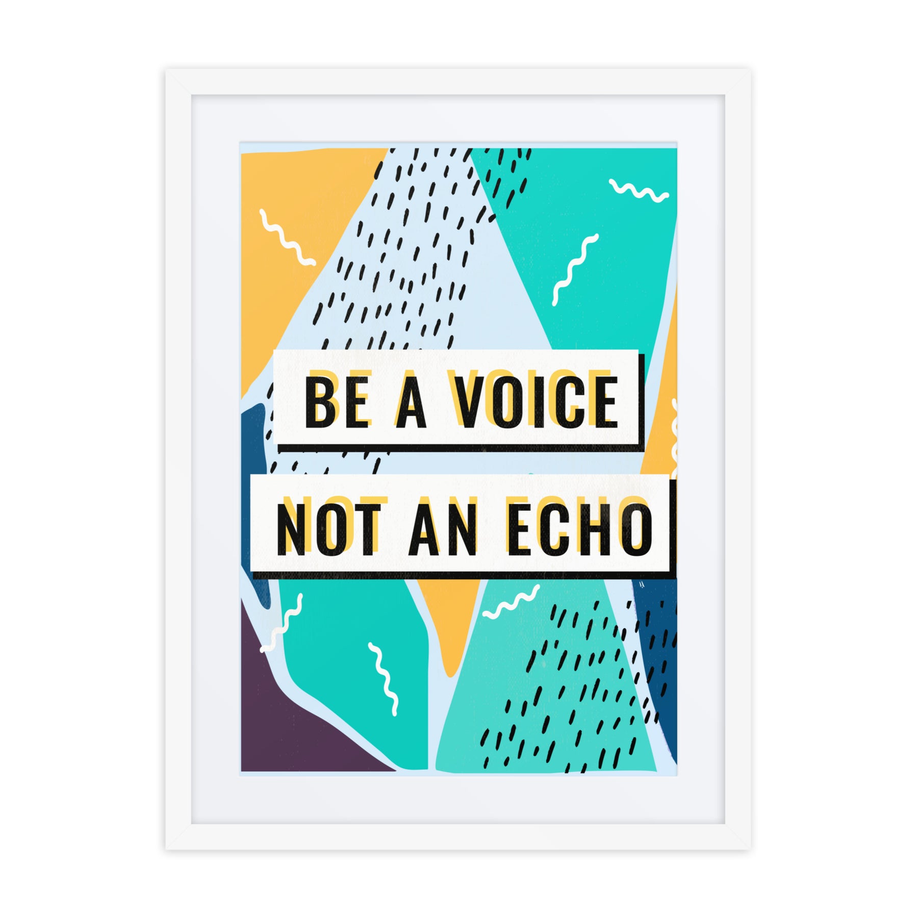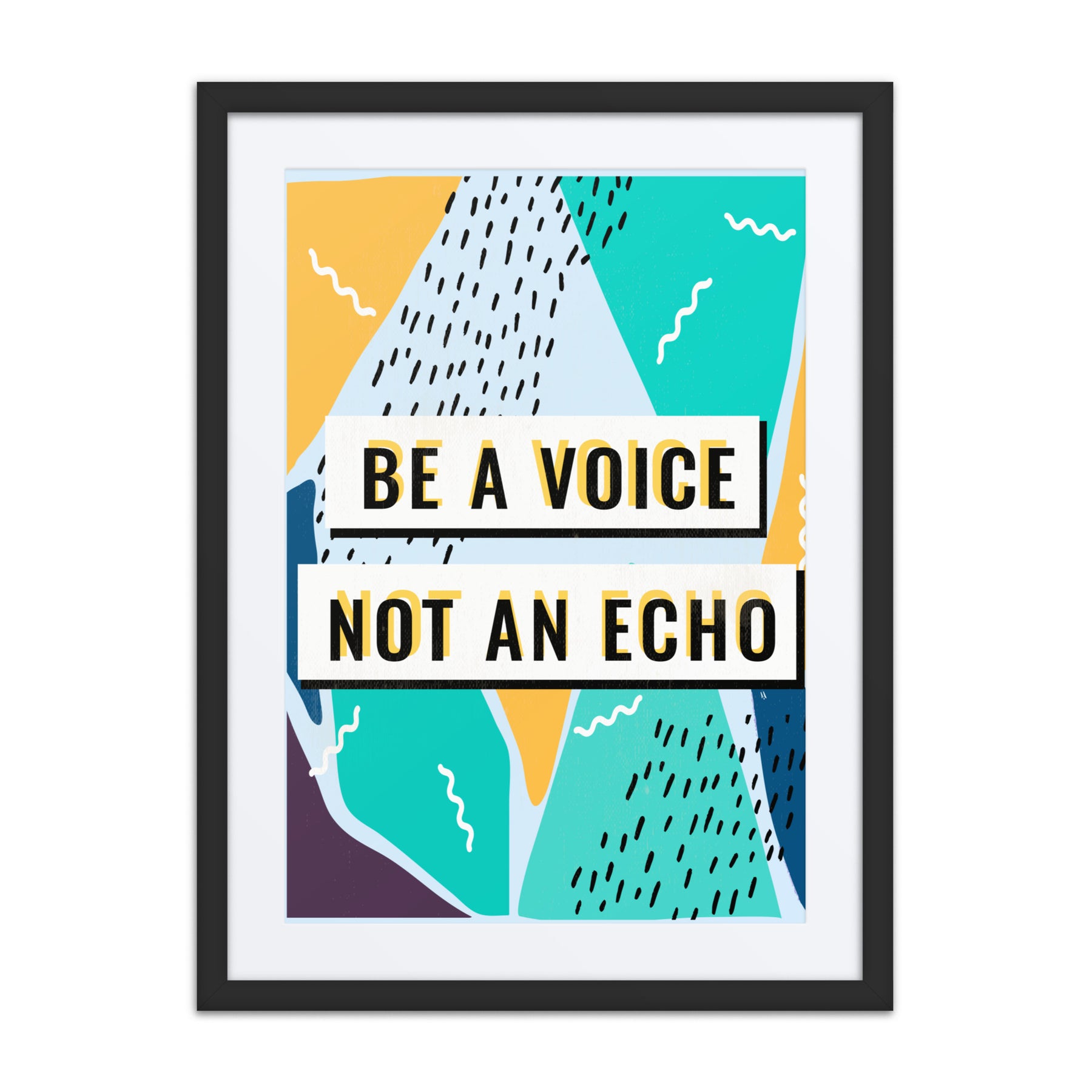 Make a statement with this vibrant "Be a Voice, Not an Echo" poster wall art! Bursting with color and energy, it encourages you to express your individuality and creativity . Ideal for any room, this piece transforms your walls into a canvas of inspiration . Bring your decor to life and let your true self shine through every corner of your space!