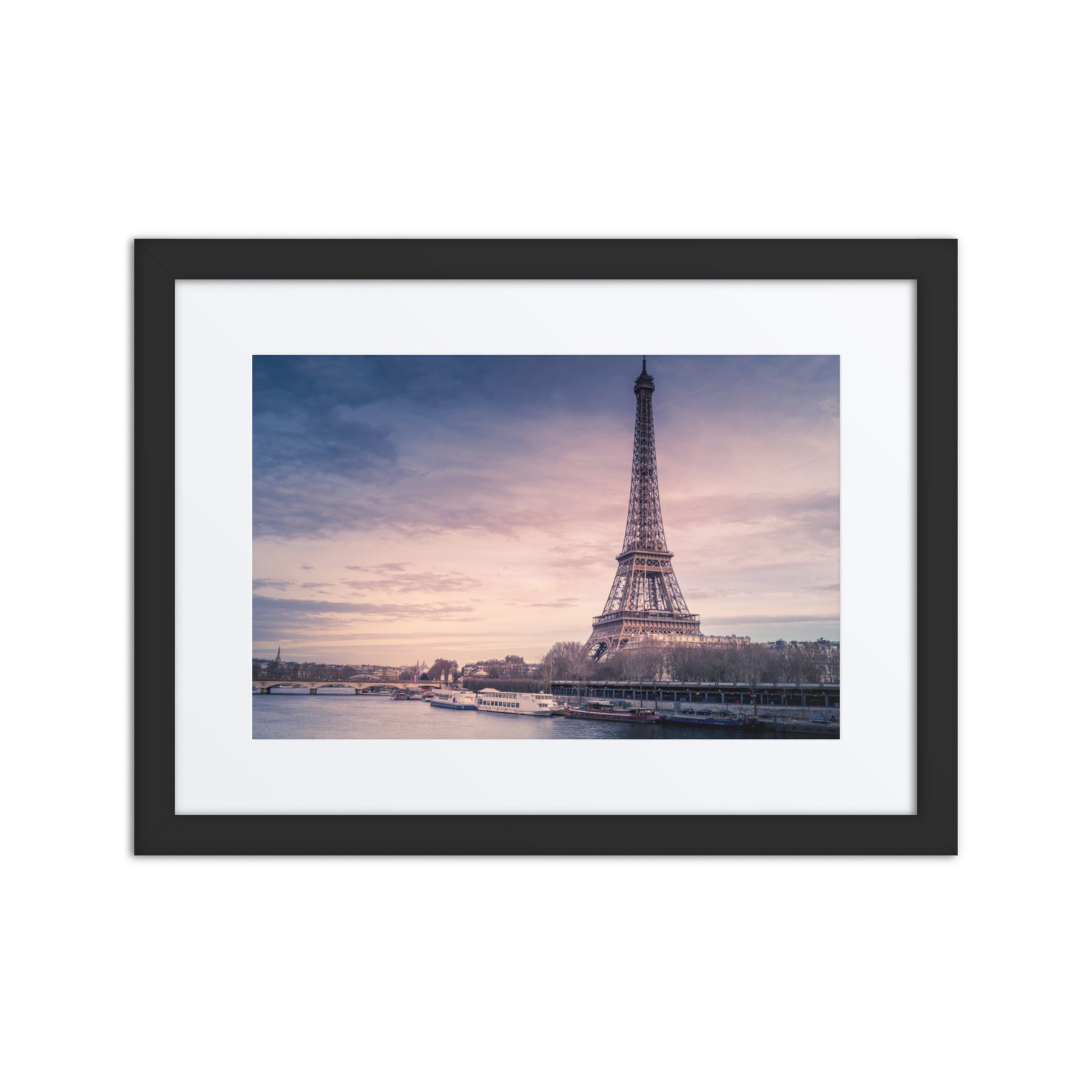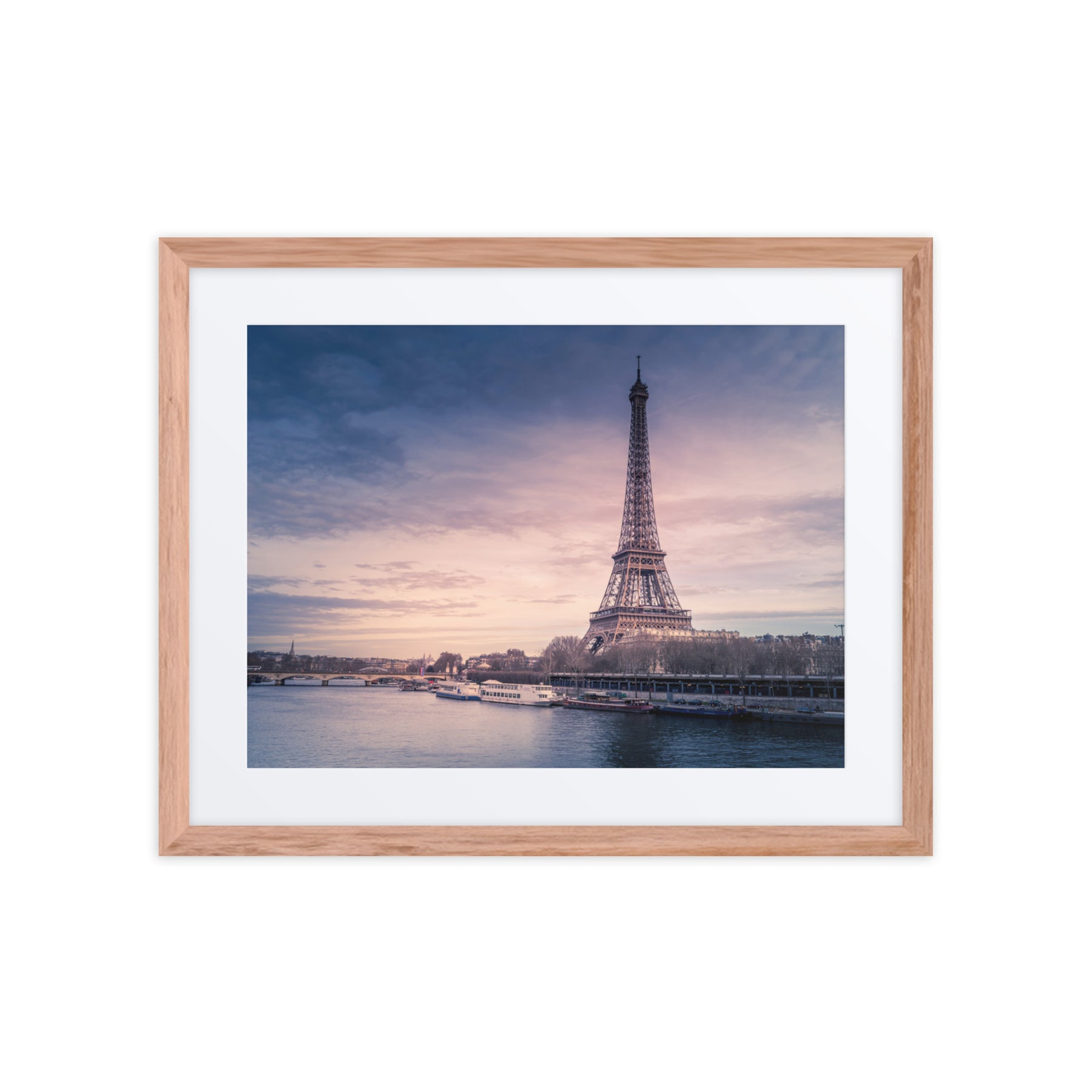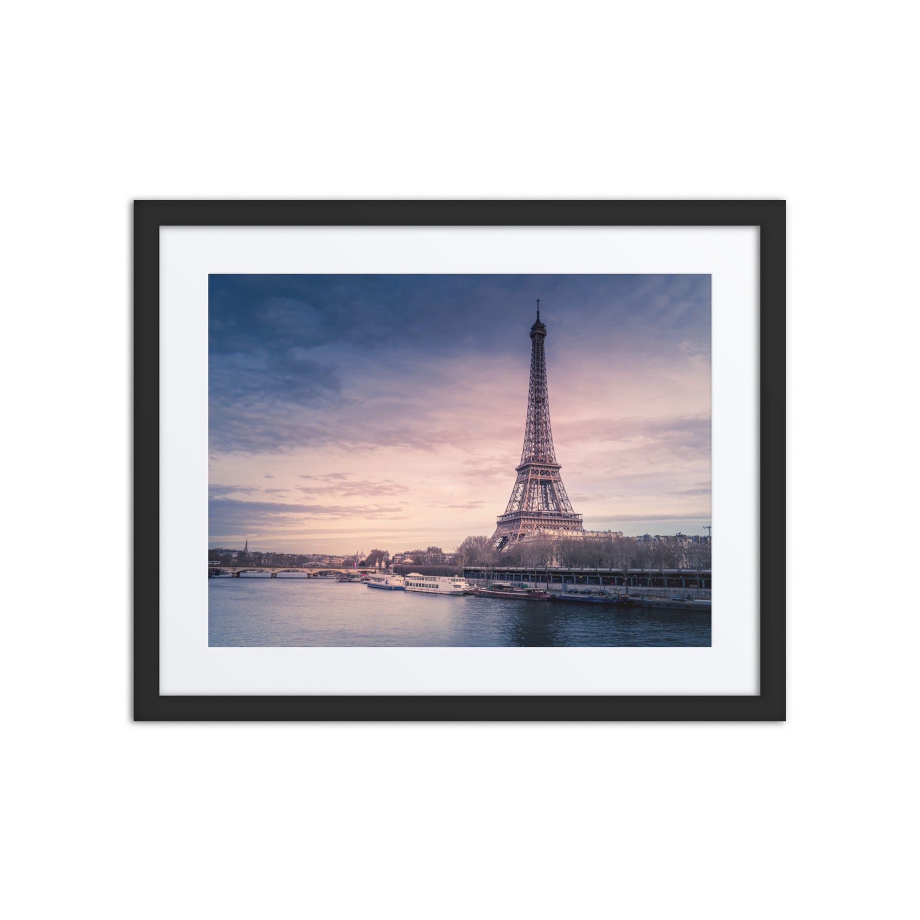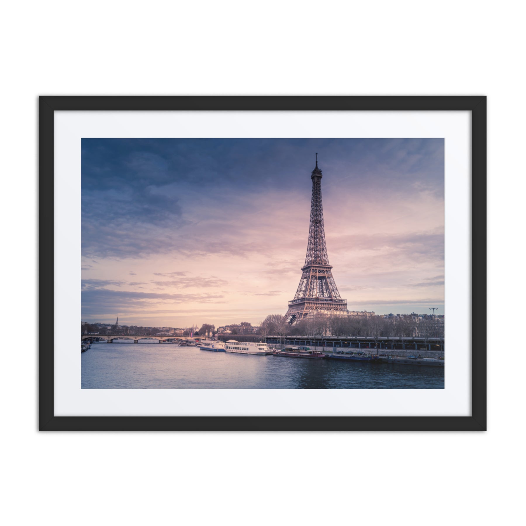 Experience the romance of Paris with this enchanting framed poster showcasing the Eiffel Tower at dusk. Its soft colors and iconic silhouette add elegance to any decor.