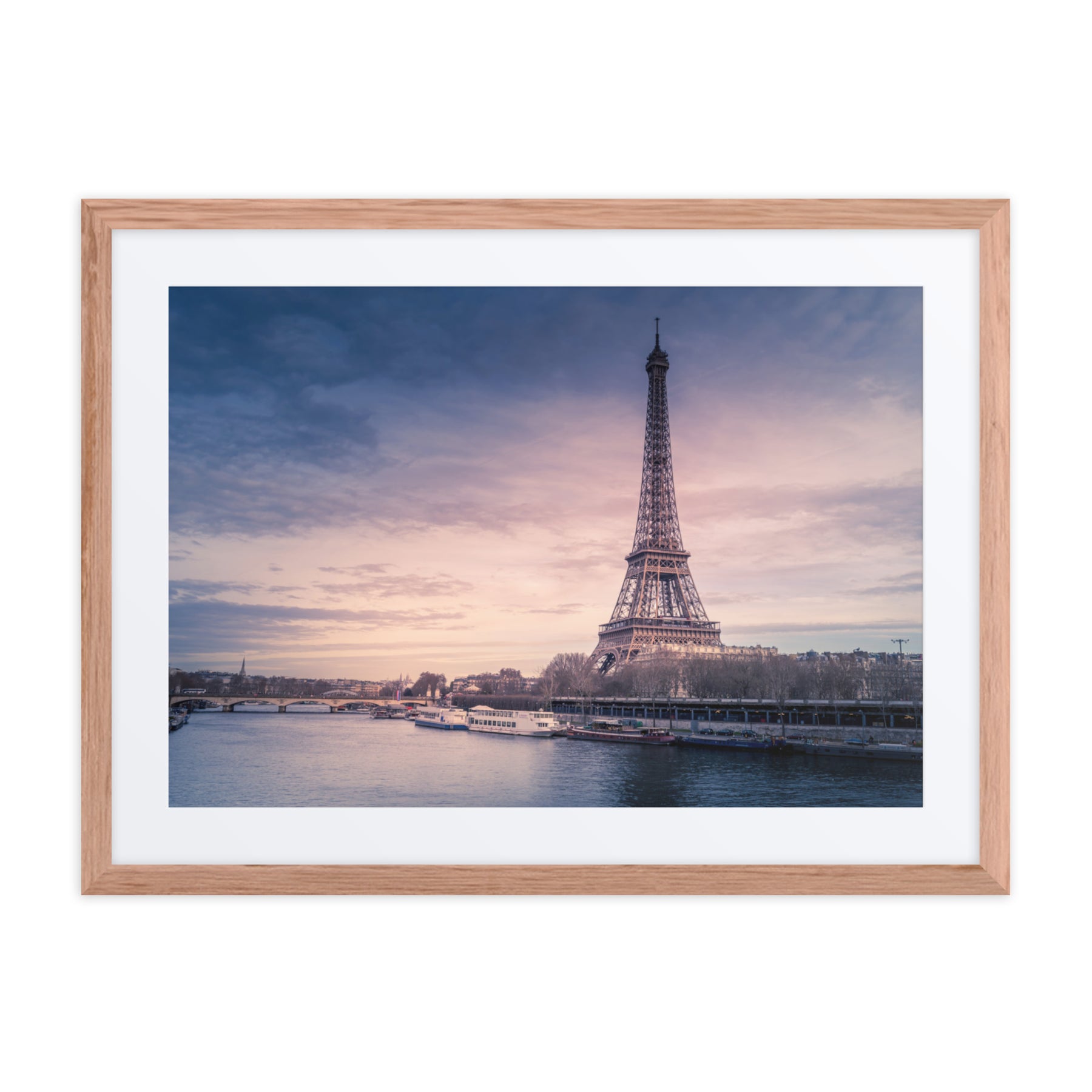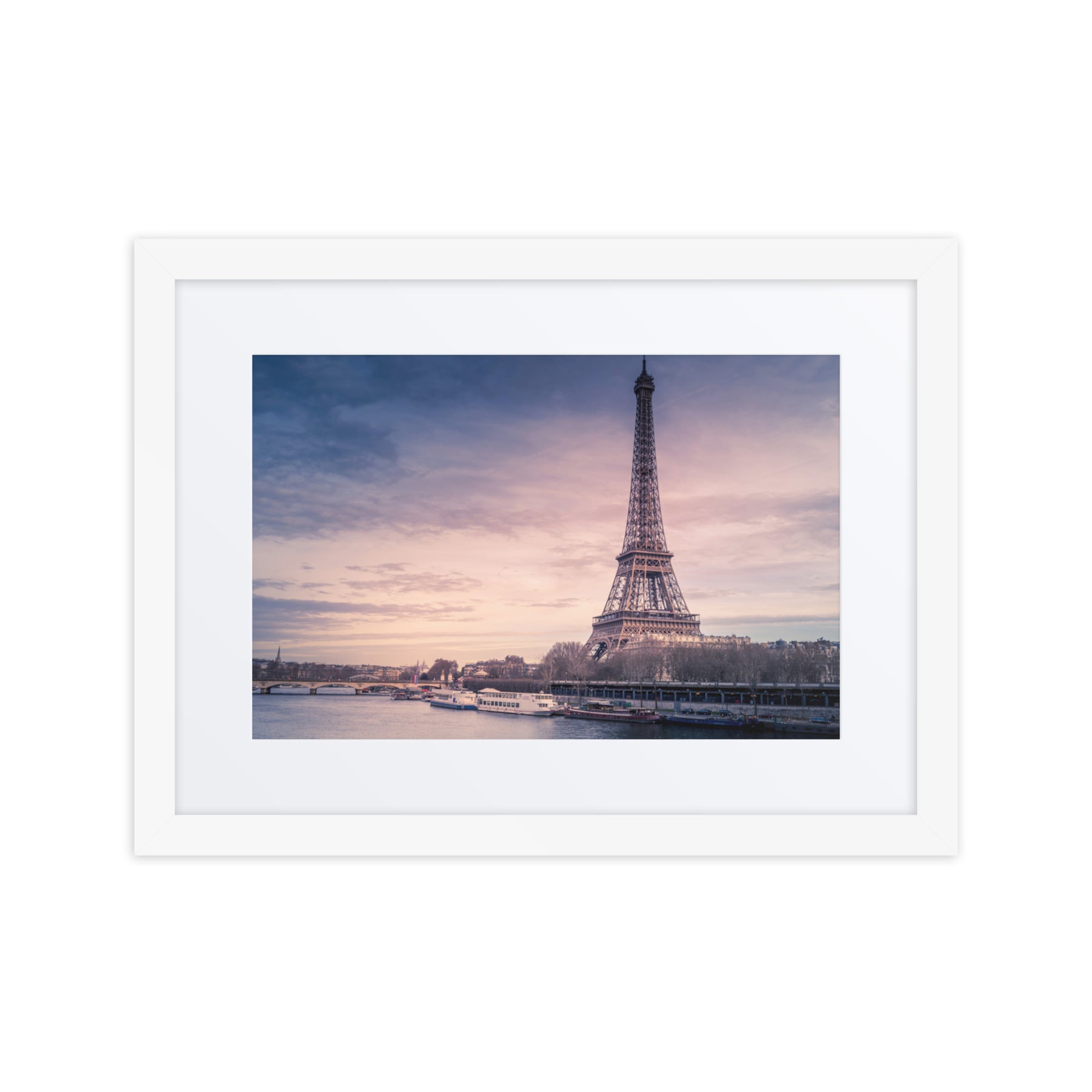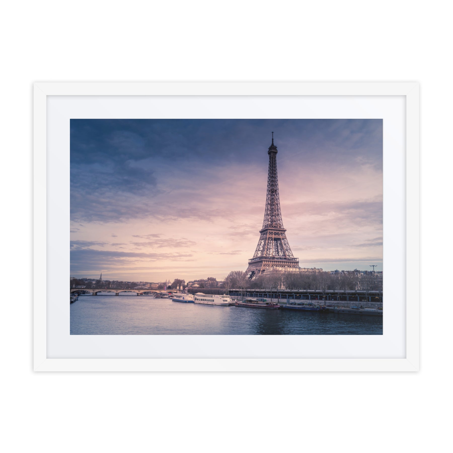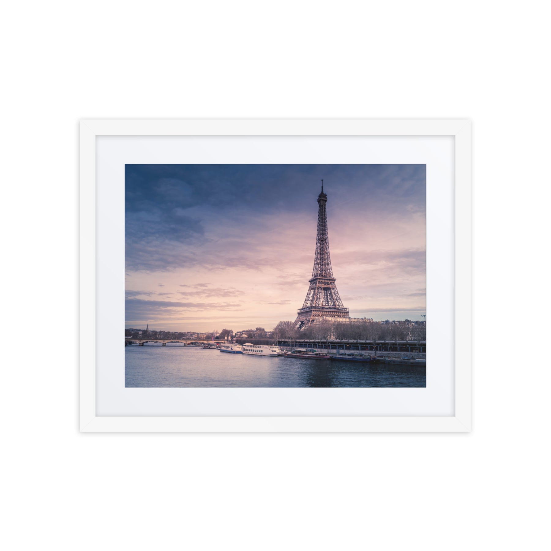 Experience the romance of Paris with this enchanting framed poster showcasing the Eiffel Tower at dusk. Its soft colors and iconic silhouette add elegance to any decor.