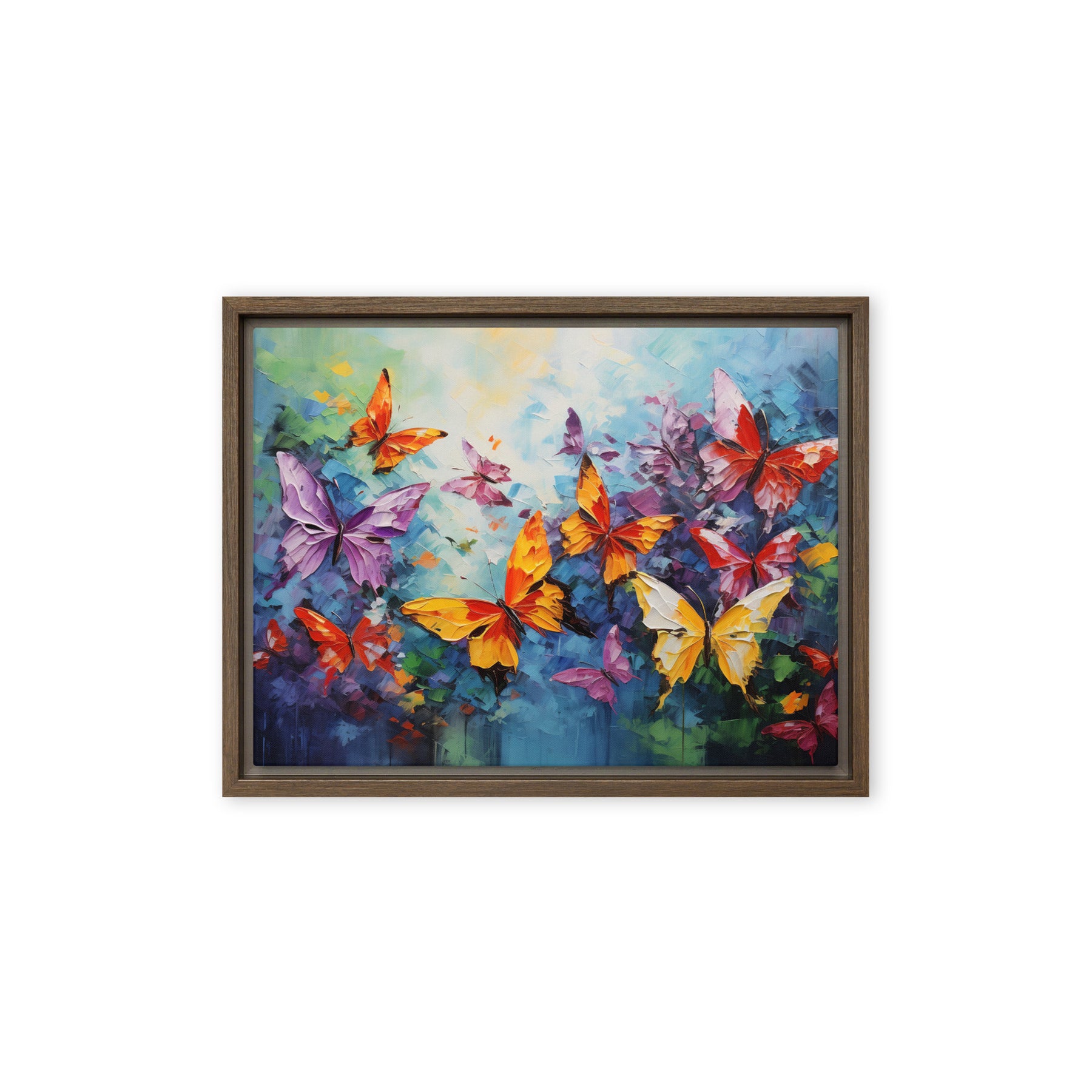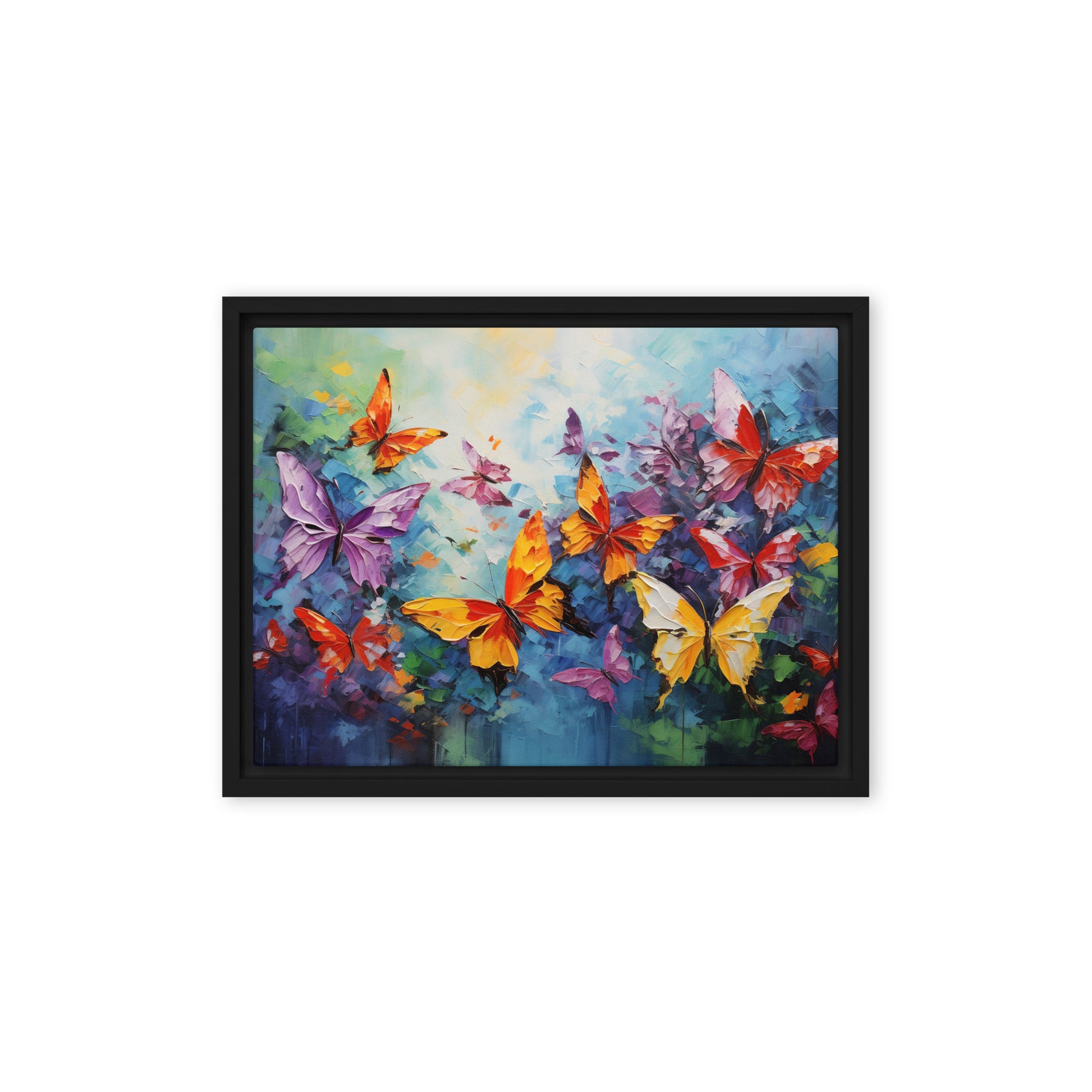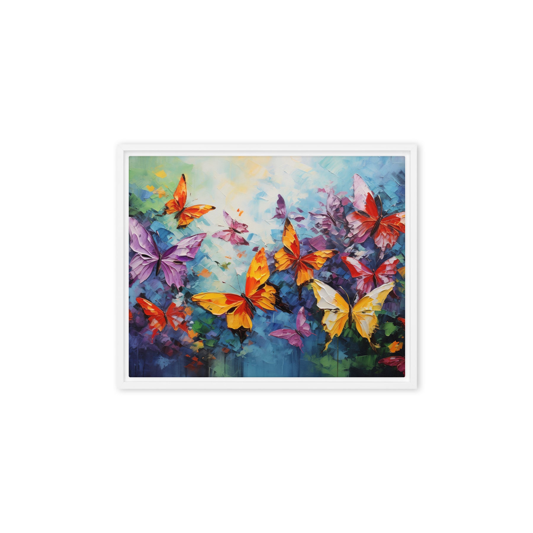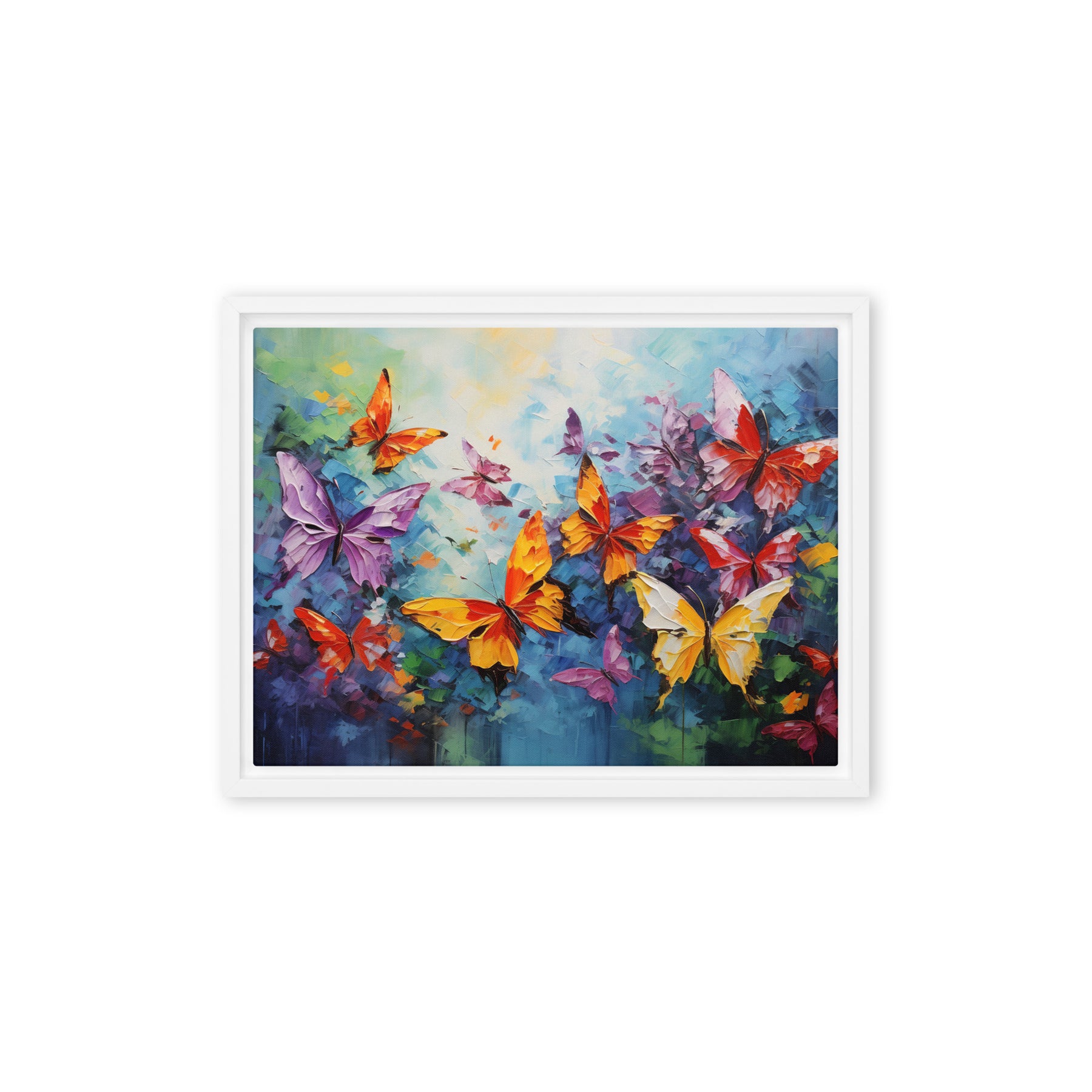 Transform your space into a vibrant sanctuary with this stunning canvas wall art featuring a kaleidoscope of butterflies. Each fluttering gem bursts with color, creating a lighthearted atmosphere perfect for living rooms or bedrooms. Embrace the beauty and joy of nature, making every day feel like spring! Perfect as a gift or a personal touch to your wall art decor – your home deserves a sprinkle of enchantment!