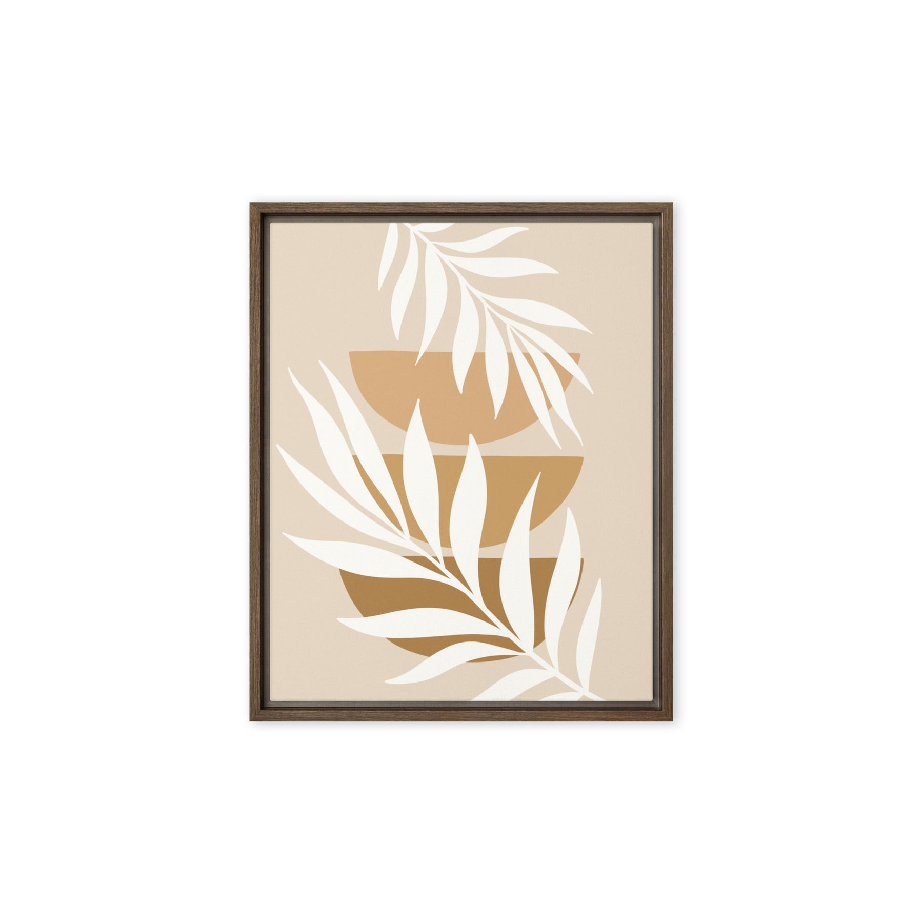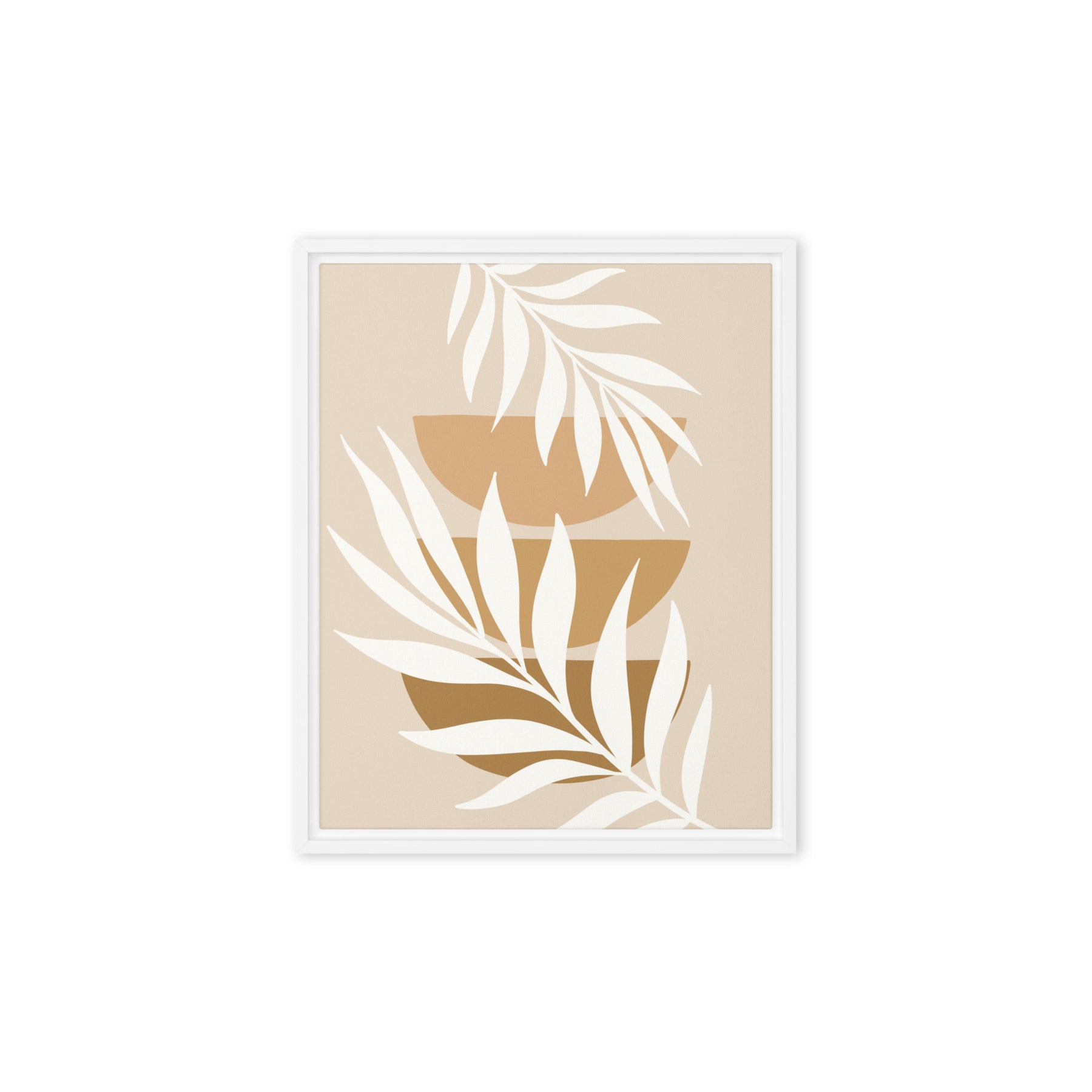 - The framed canvases with brown and black frames have a black inside around the canvas, and the canvases with white frames have a white inside around the canvas.