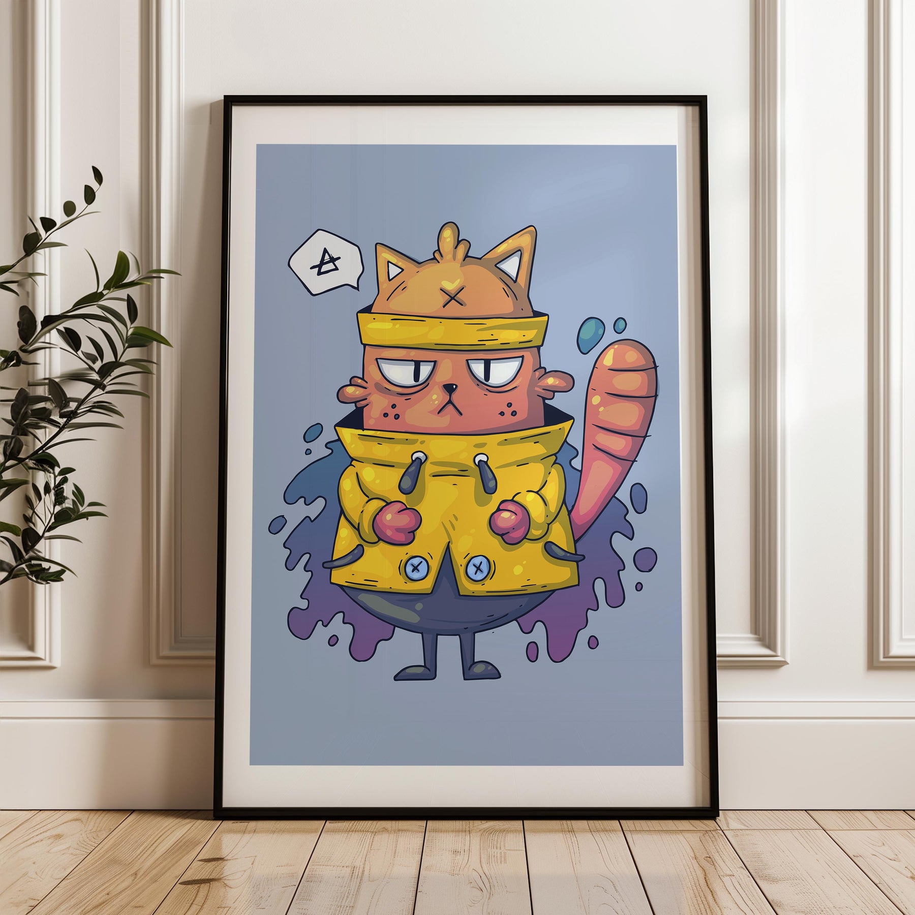 Unleash the charm of this playful feline in your space! With vibrant yellows and cartoonish expressions, this digital art print brings a lively touch to any living room or bedroom. Perfect for Gen Z renters and gift buyers, it's a quirky addition that screams personality. Transform your home decor into a whimsical wonderland with this standout poster wall art, a must-have for any digital art gallery online.