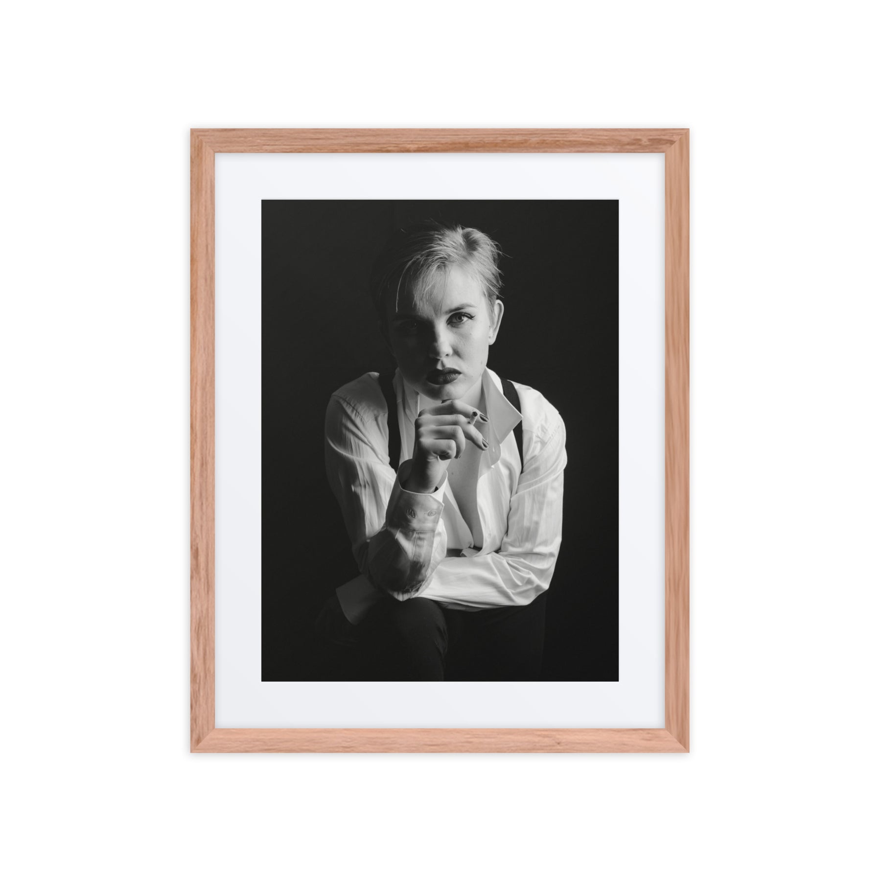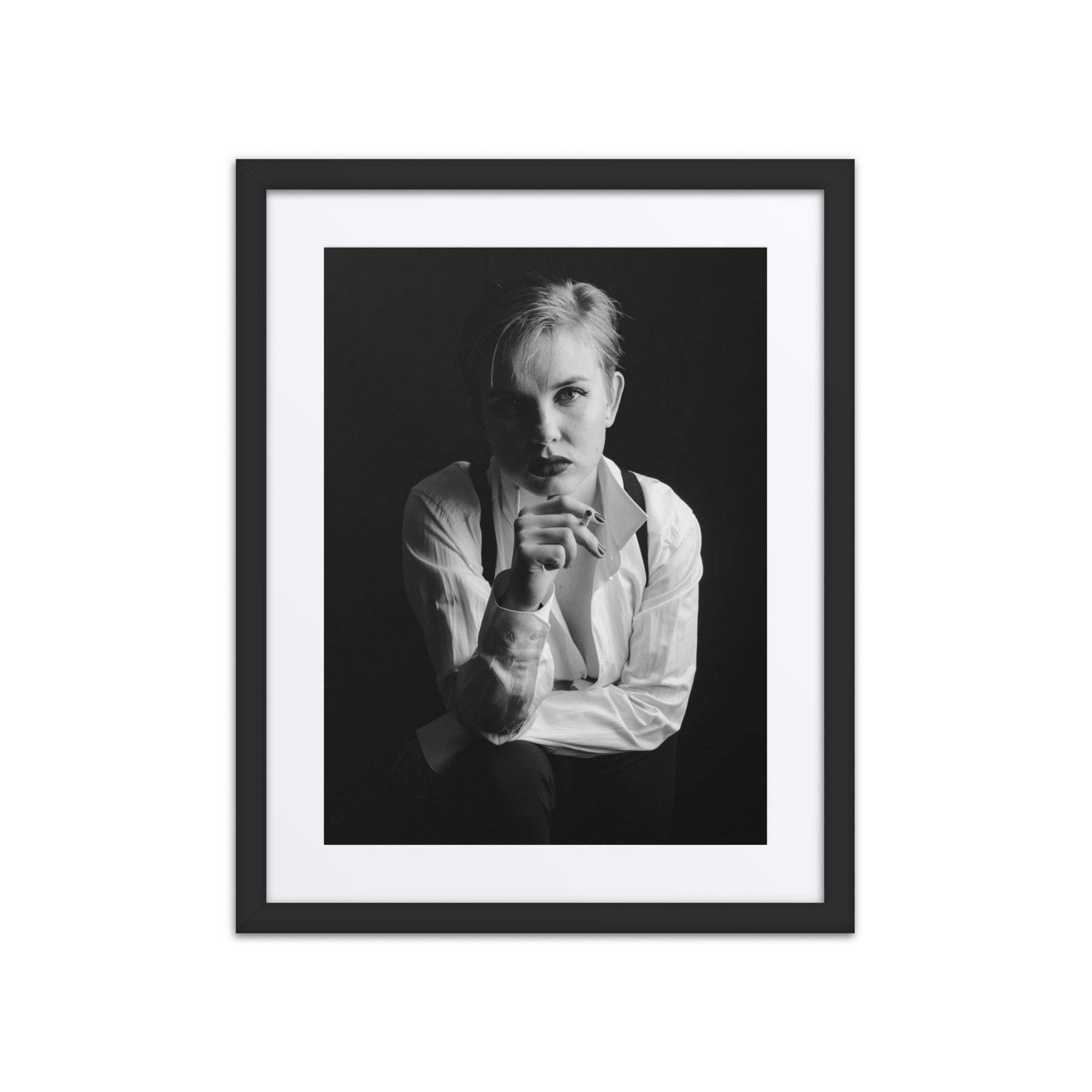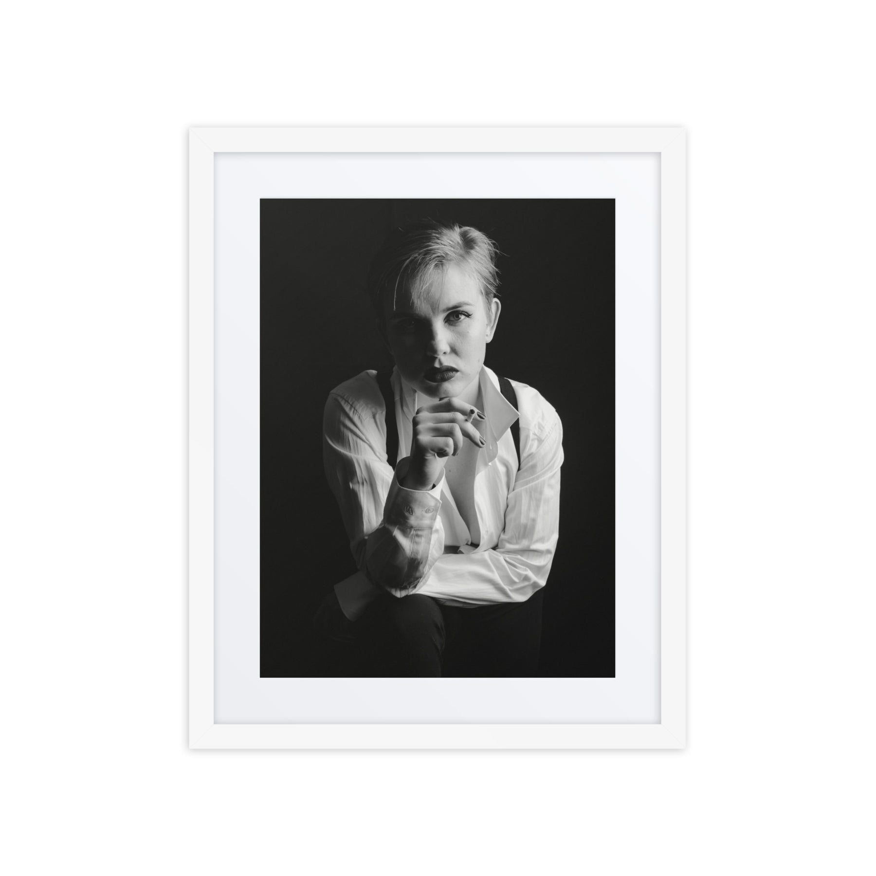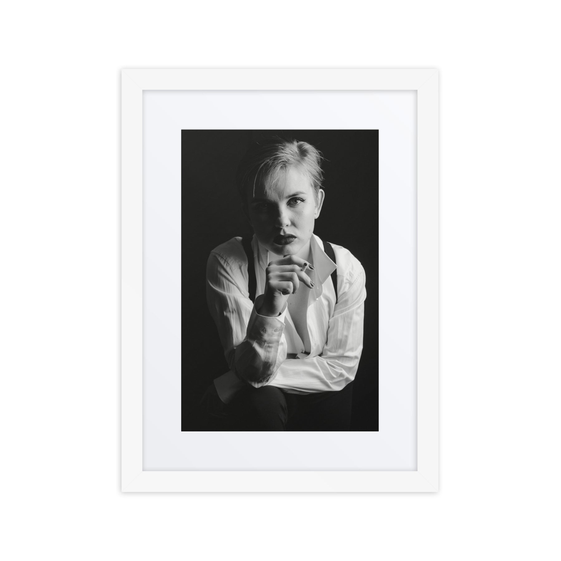 Invite timeless introspection with "Classic Contemplation." This sophisticated black and white framed poster offers a glimpse into thoughtful elegance, perfect for living rooms or creative spaces. A captivating digital art print for interior aficionados and anyone seeking art that speaks beyond the surface.
