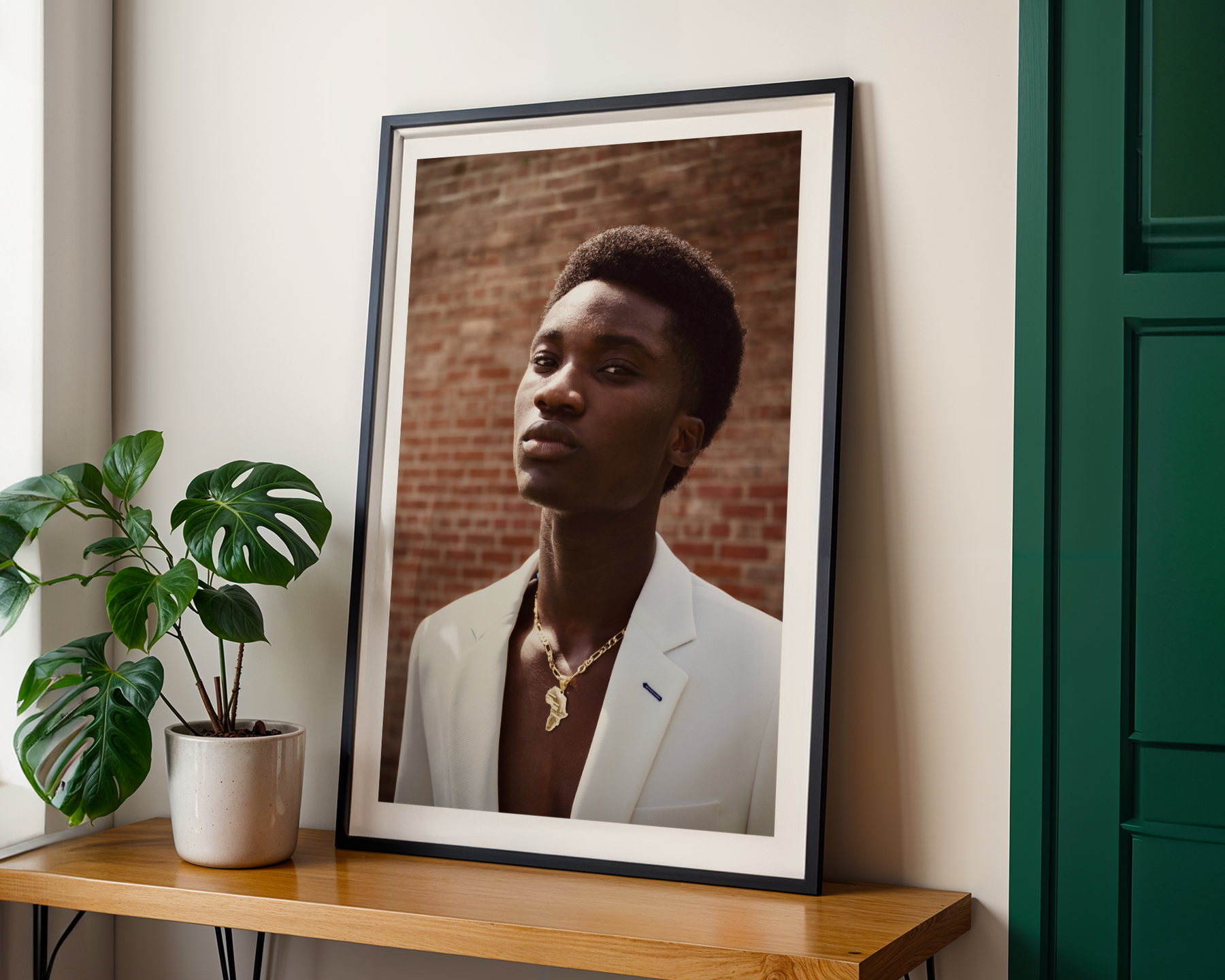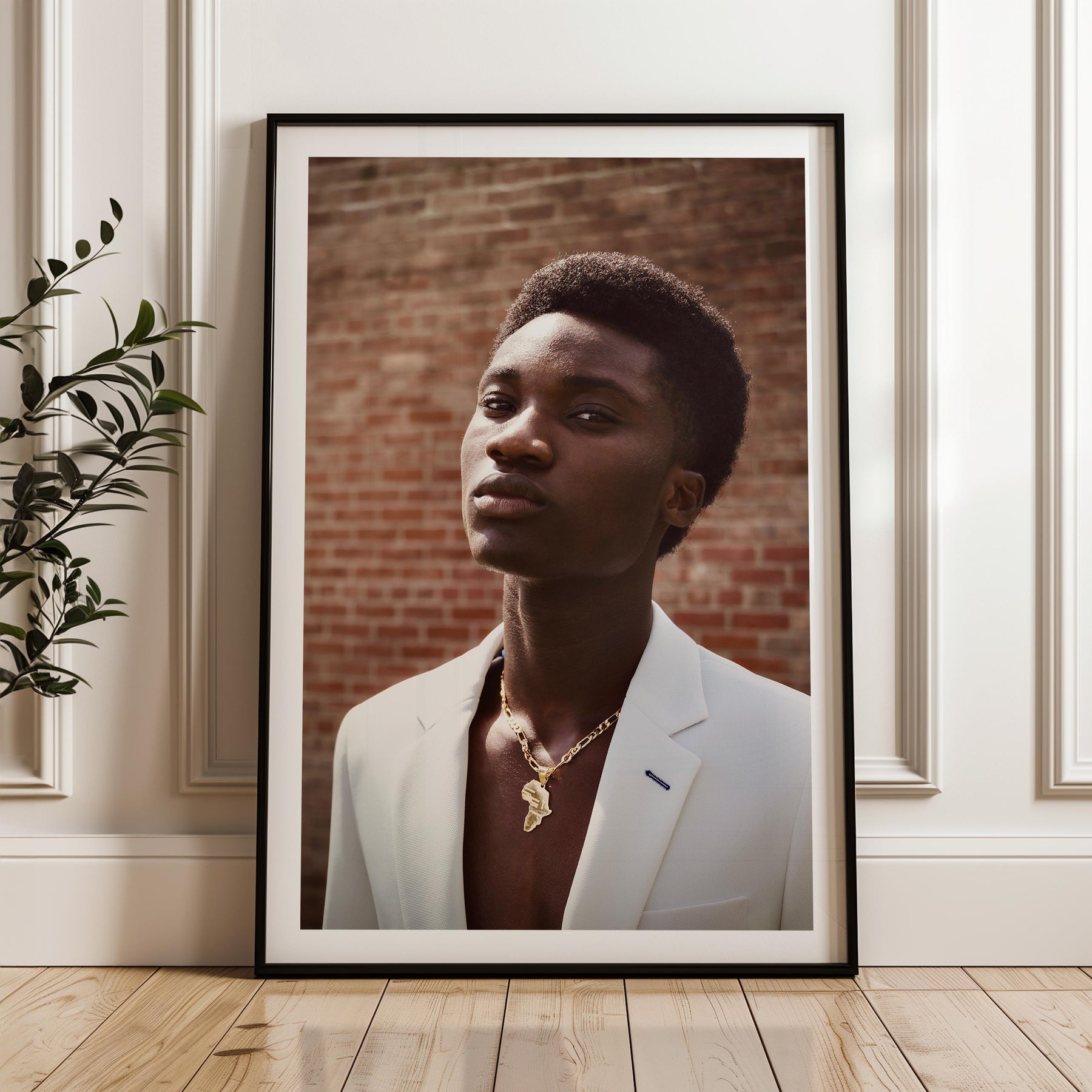 Channel sophistication with "Confident Charm," a refined framed poster art piece featuring a striking portrait of a stylish young man. This captivating artwork adds a touch of modern elegance to your living room or office, perfect for Gen Z renters seeking to express their unique style. Elevate your wall art decor with this standout piece! Check out our digital gallery online for more inspiring digital art prints for home decor!