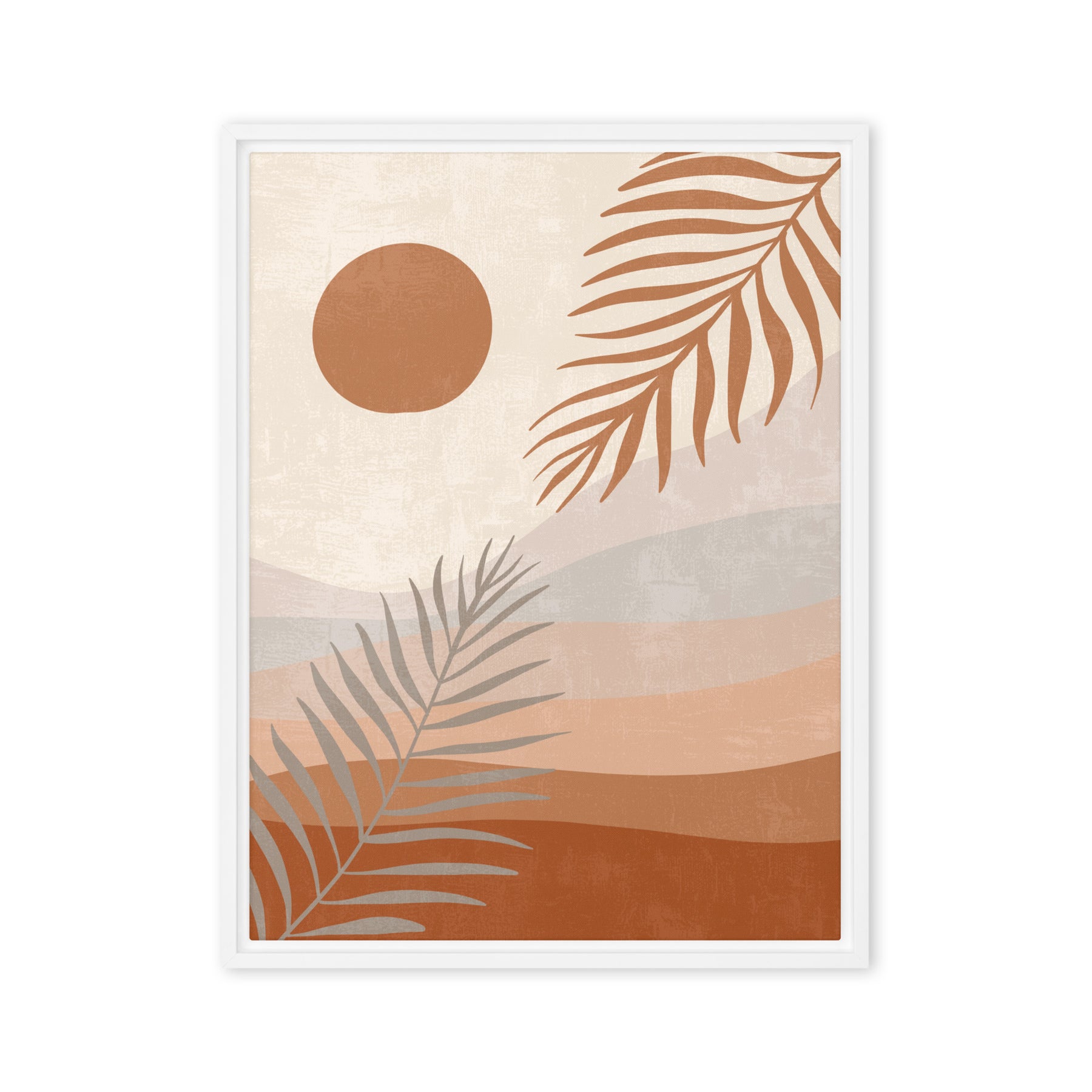 Escape to tranquility with "Desert Oasis," a stunning digital art print that brings the warmth of nature indoors! Featuring soothing terracotta tones and elegant palm fronds, this framed wall art transforms any living room or bedroom into a serene retreat. Perfect for Gen Z renters and gift buyers looking for unique decor, it adds a touch of bohemian charm. Discover more inspiring digital art prints for home decor in our online gallery and elevate your space!