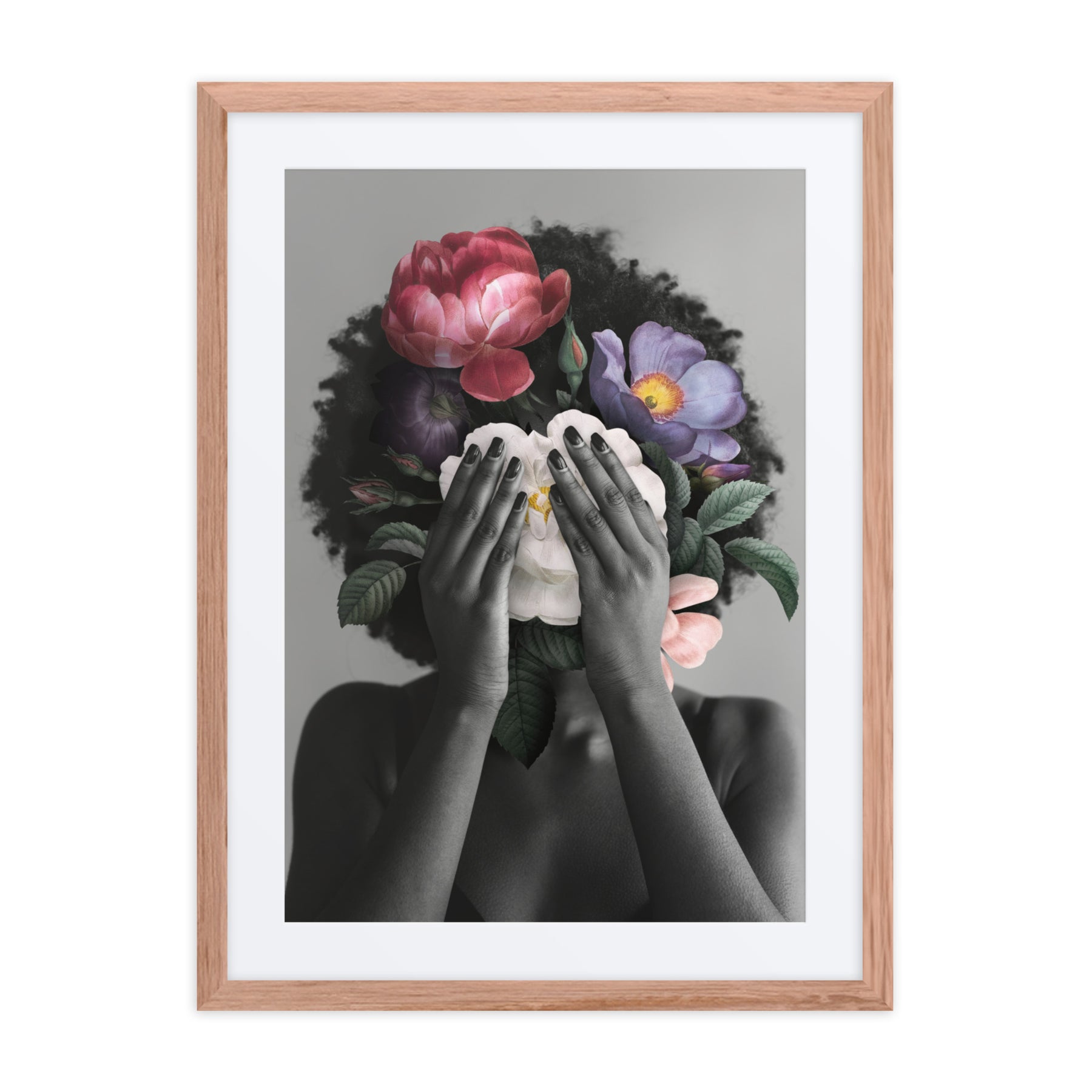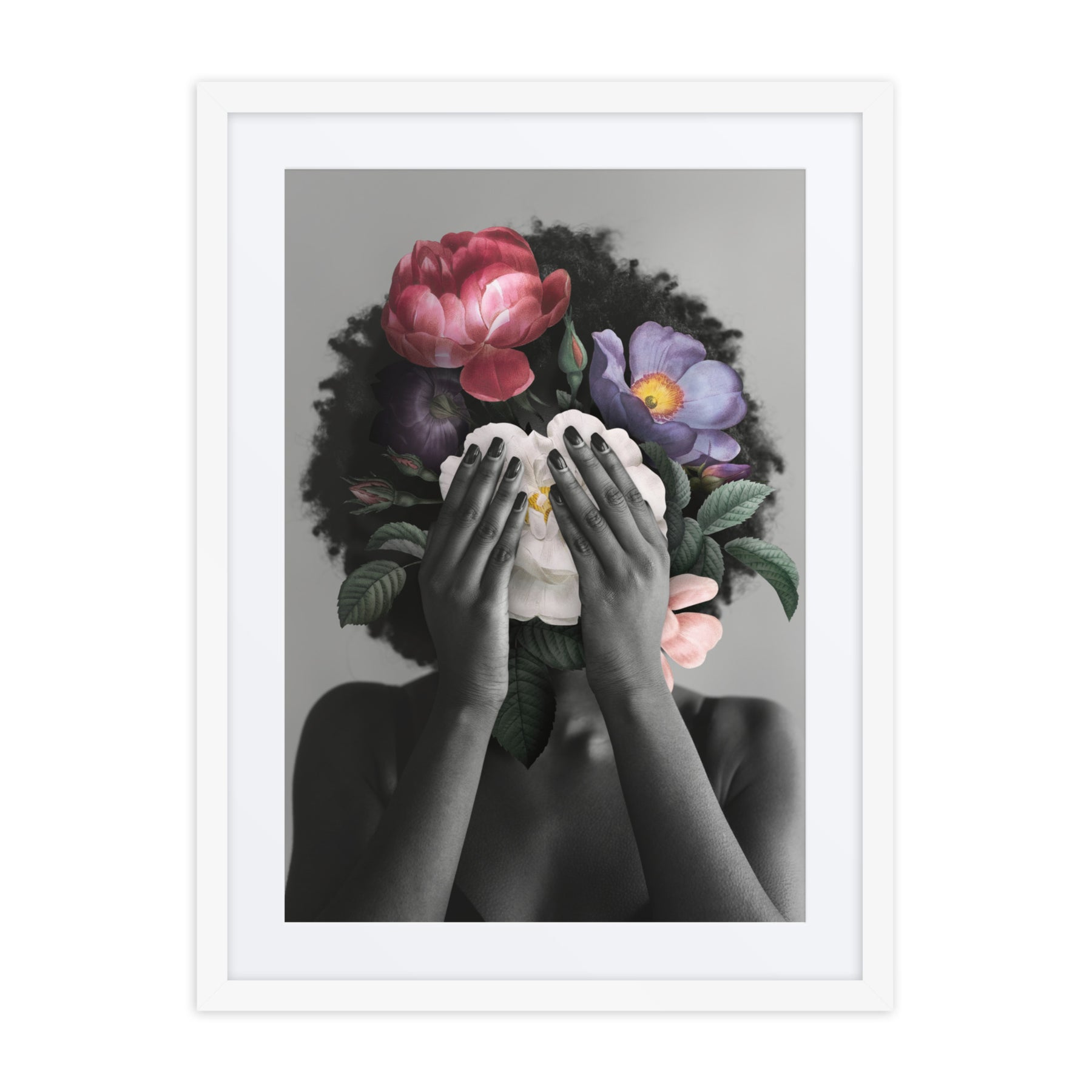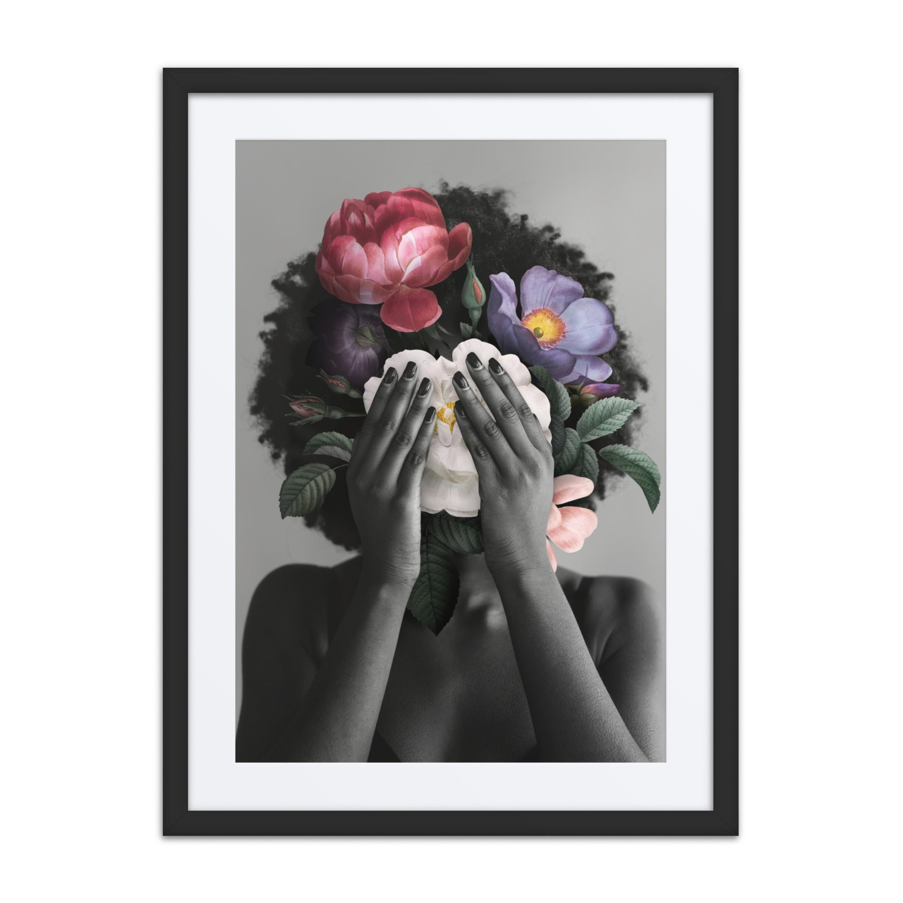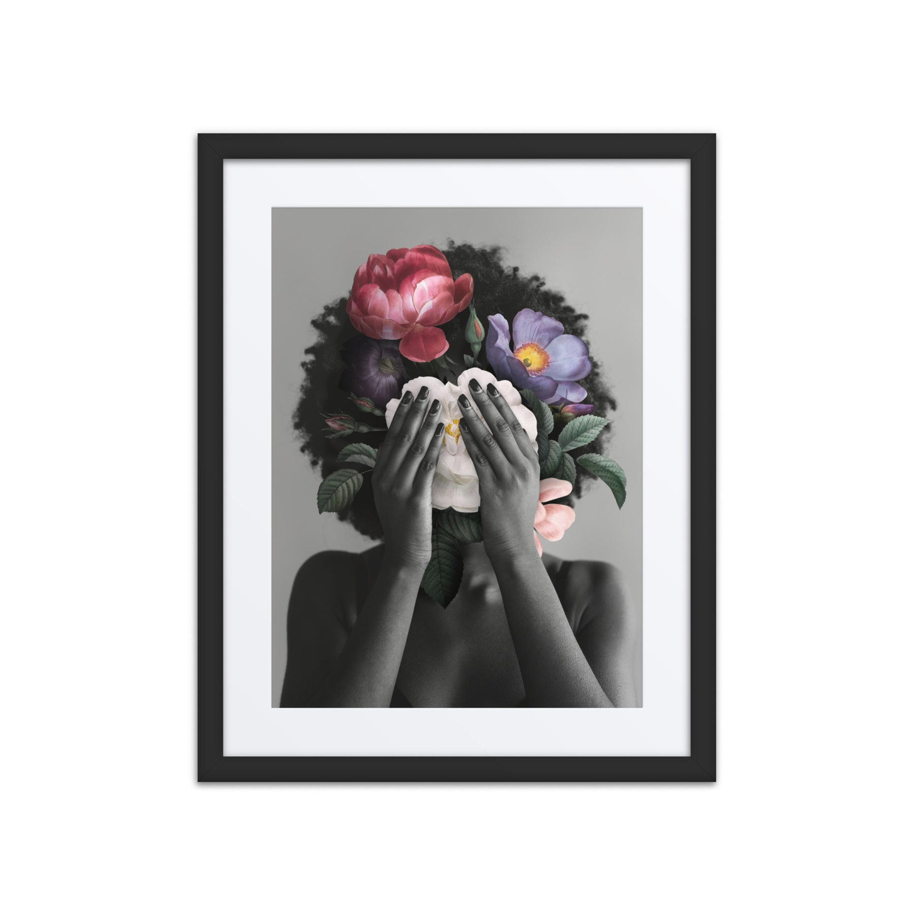 Celebrate individuality with "Floral Embrace," a captivating framed poster art piece showcasing a striking portrait intertwined with beautiful blooms. This exquisite wall art decor makes a bold statement, perfect for any bedroom, living room, or office. Ideal for Gen Z renters and thoughtful gift-givers, let this unique artwork transform your space! Discover more enchanting digital art prints for home decor in our online gallery!