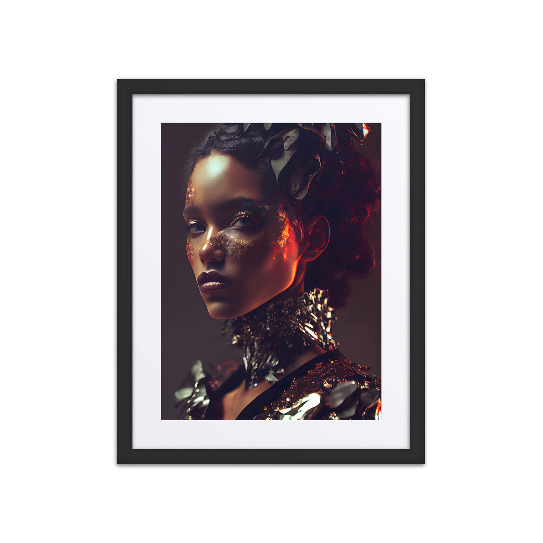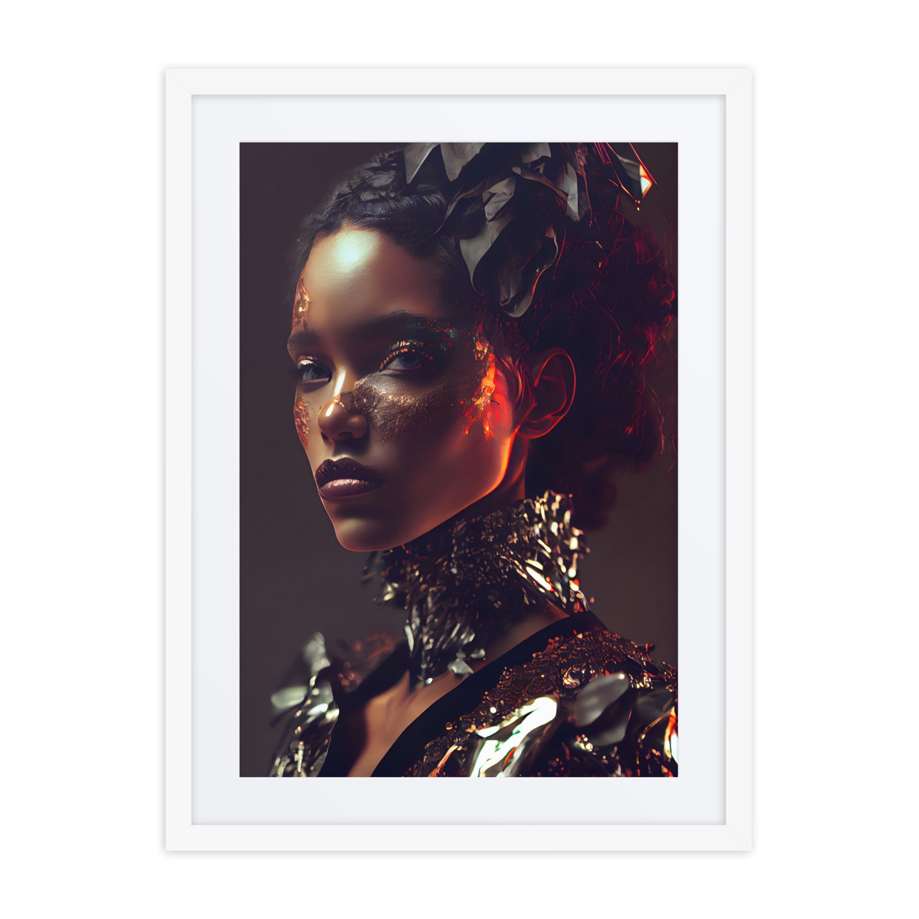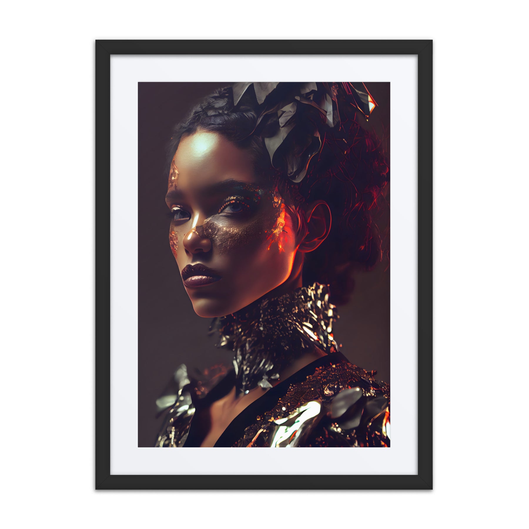 Step into the future with "Futuristic Flair." This mesmerizing framed poster, featuring a strikingly styled figure, infuses your space with modern elegance and edge. Perfect for living rooms and fashion-forward areas, it’s a coveted piece for art lovers curating a cutting-edge digital art gallery online.