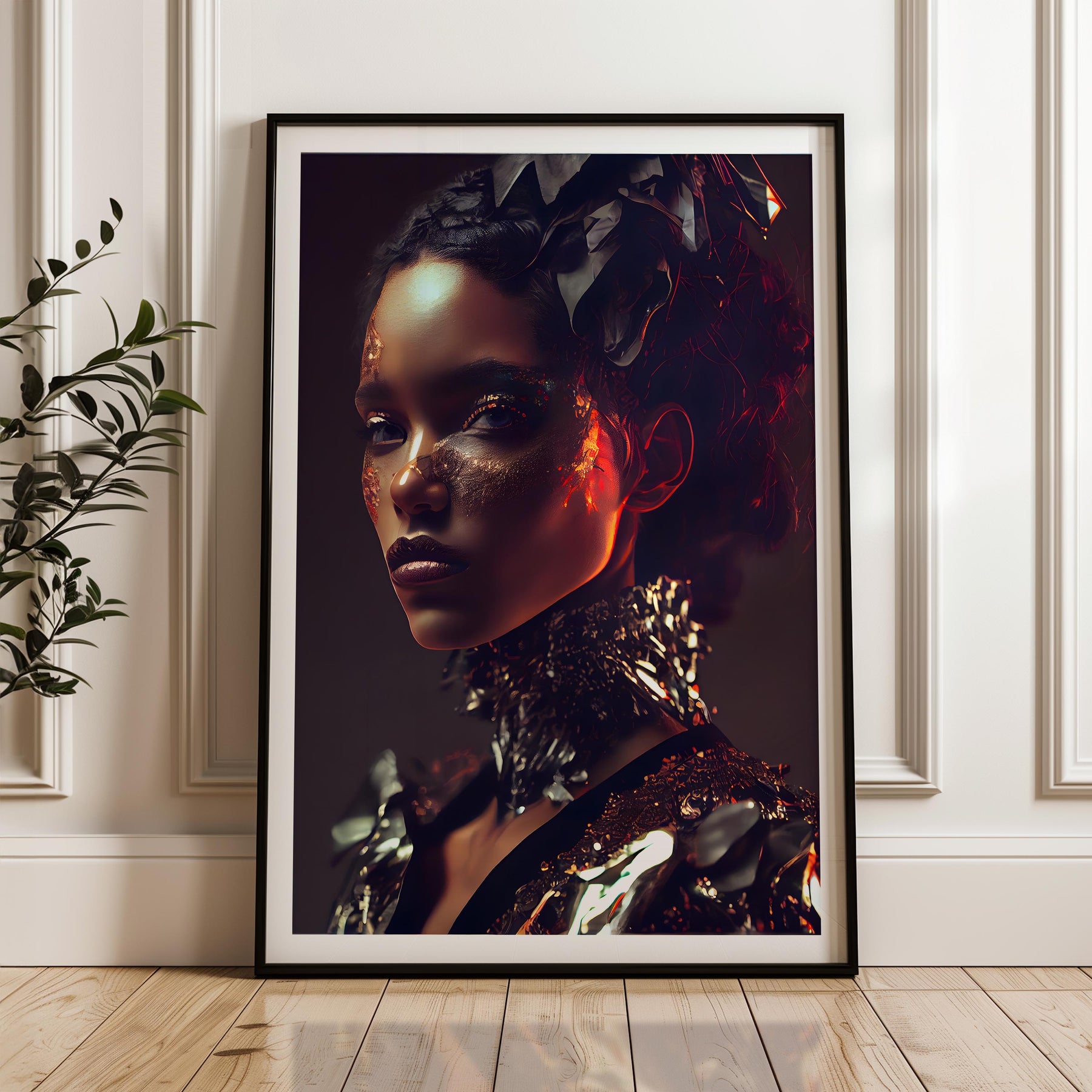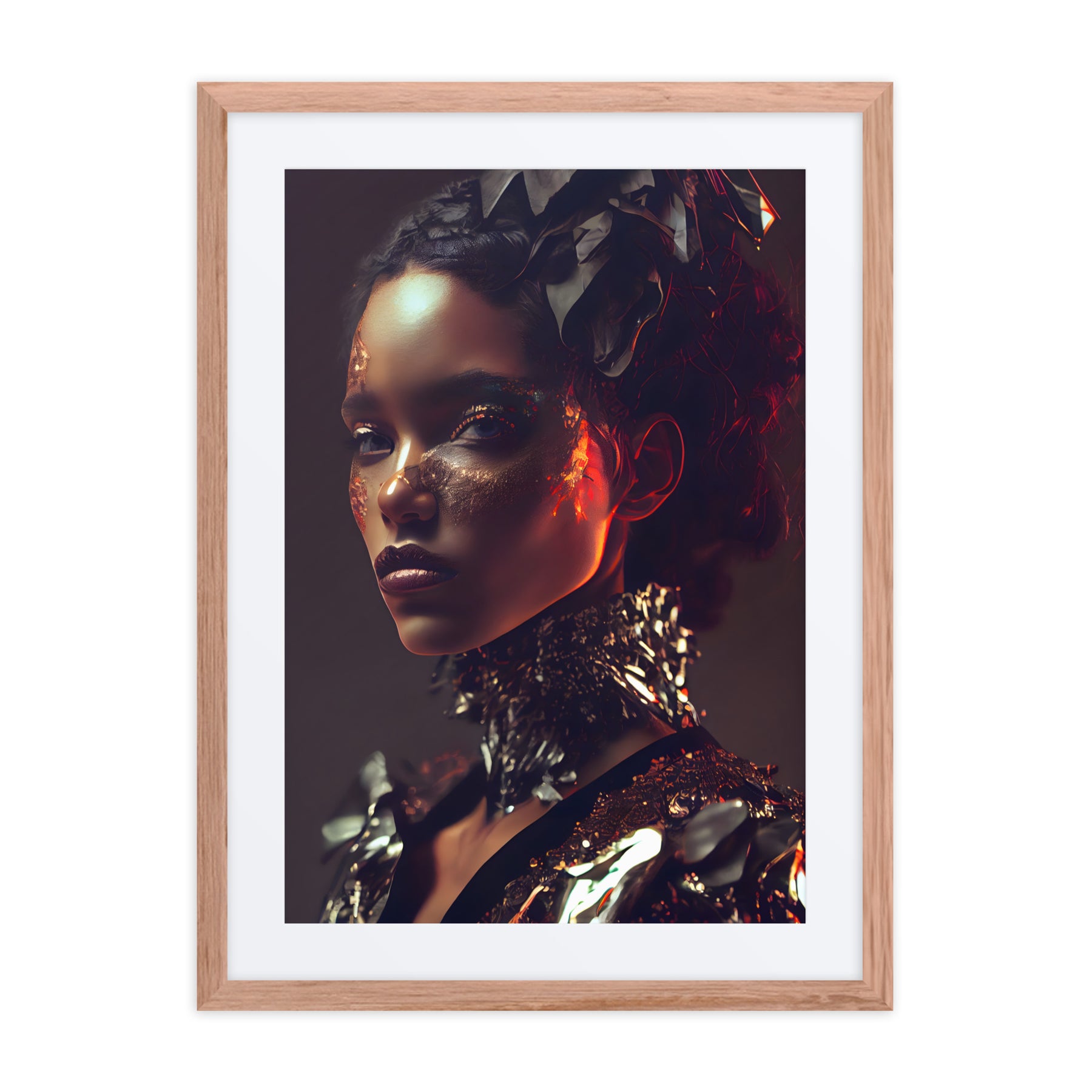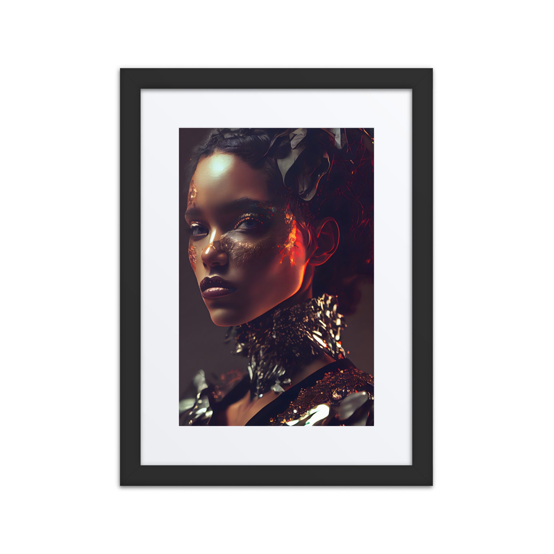 Step into the future with "Futuristic Flair." This mesmerizing framed poster, featuring a strikingly styled figure, infuses your space with modern elegance and edge. Perfect for living rooms and fashion-forward areas, it’s a coveted piece for art lovers curating a cutting-edge digital art gallery online.