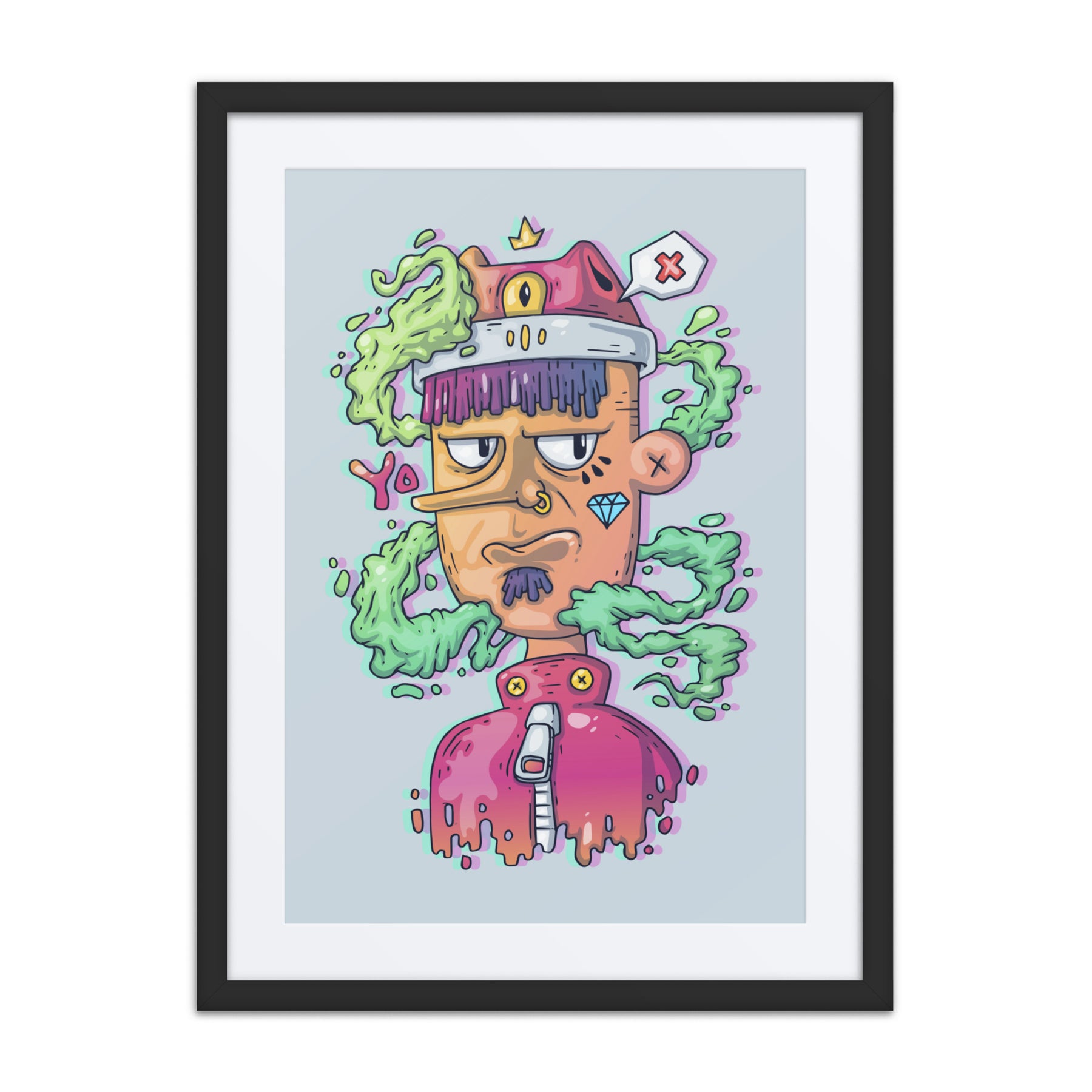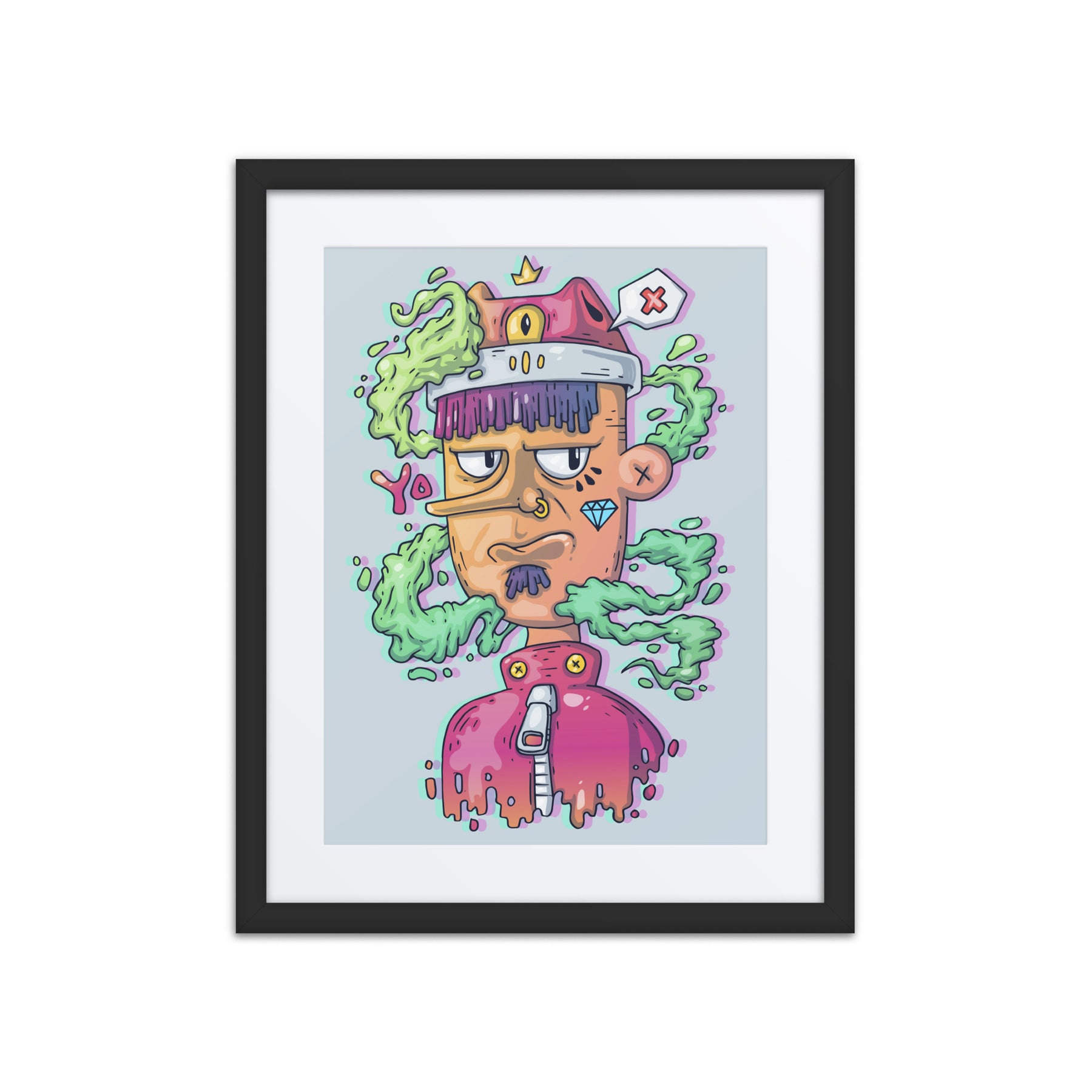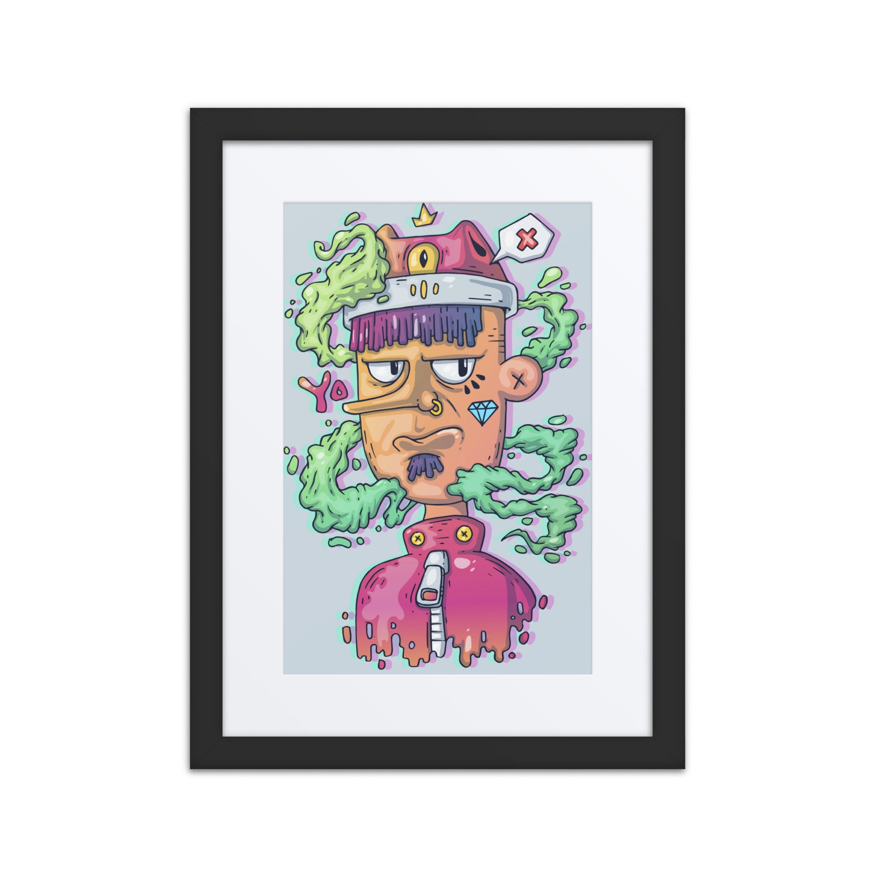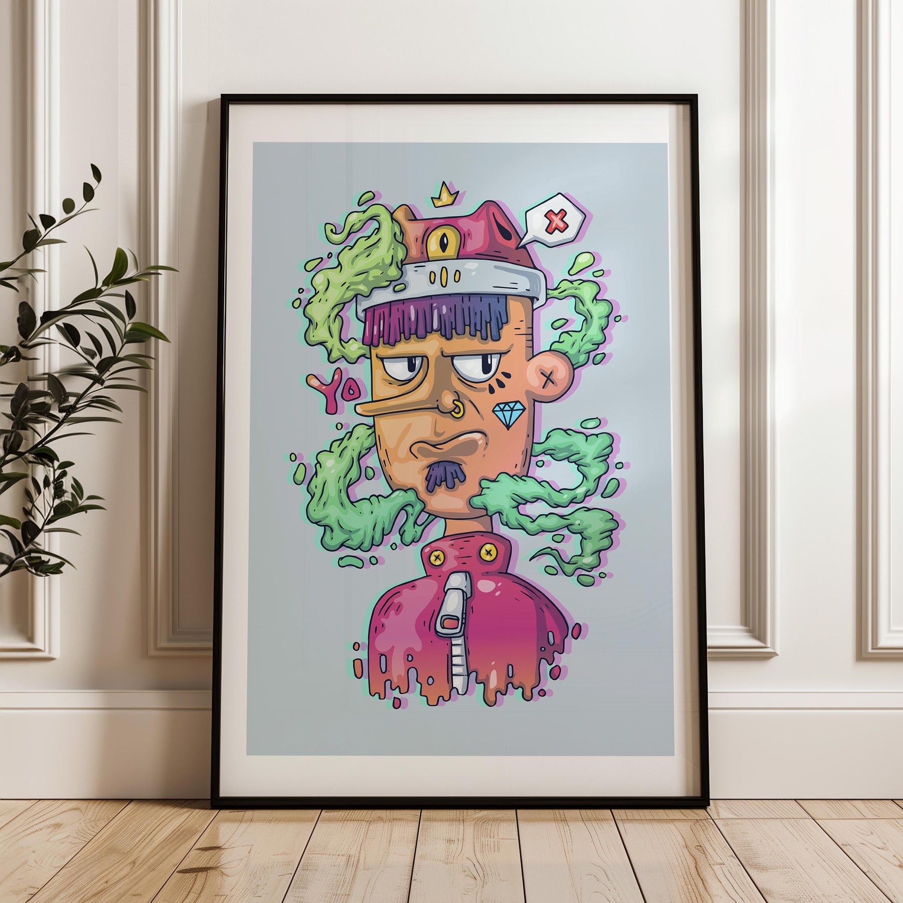 Elevate your decor with this quirky character, exuding charm and personality. Ideal for Gen Z renters and gift buyers, this framed wall art is pure fun and energy. It’s the perfect piece for your home office or living room, adding a splash of creativity and individuality that captures the essence of unique digital art gallery offerings.