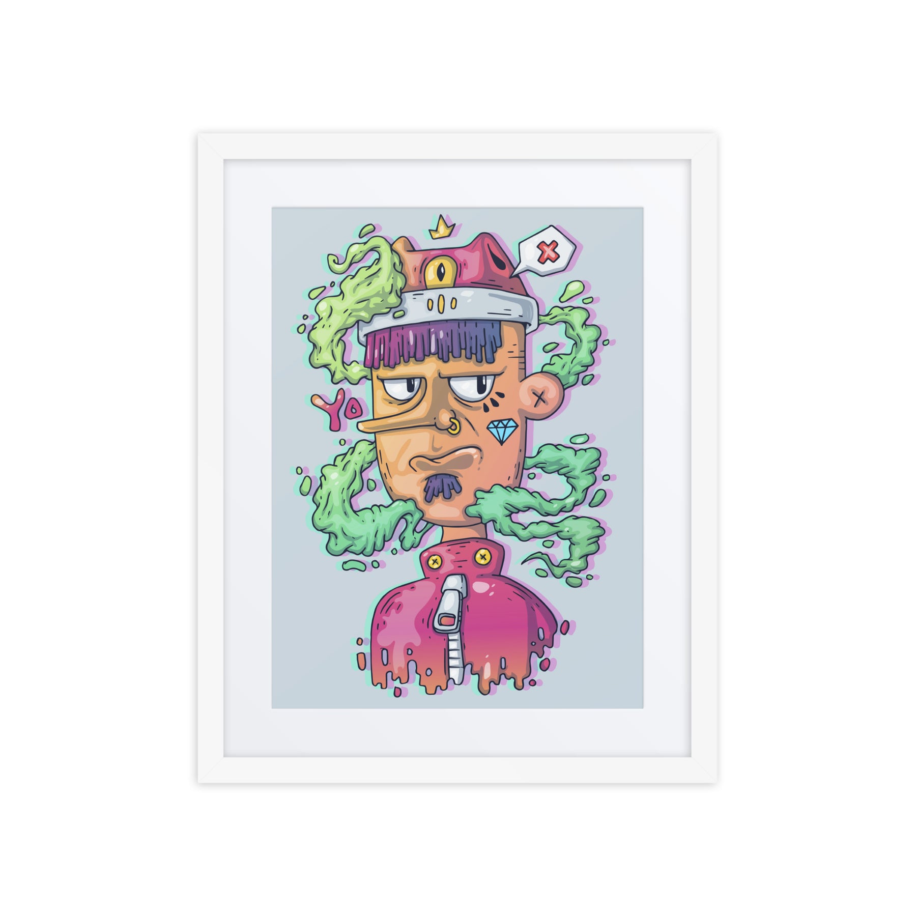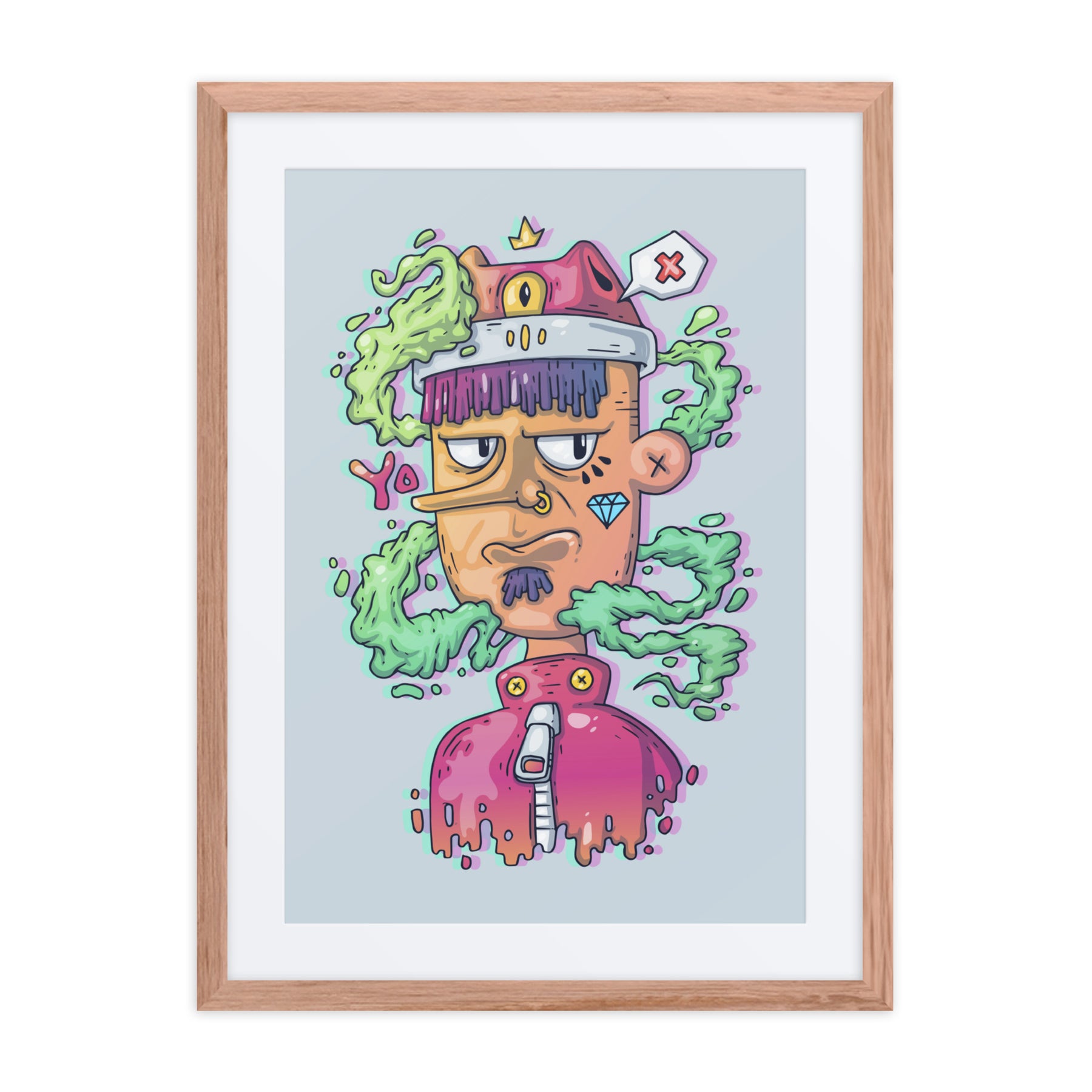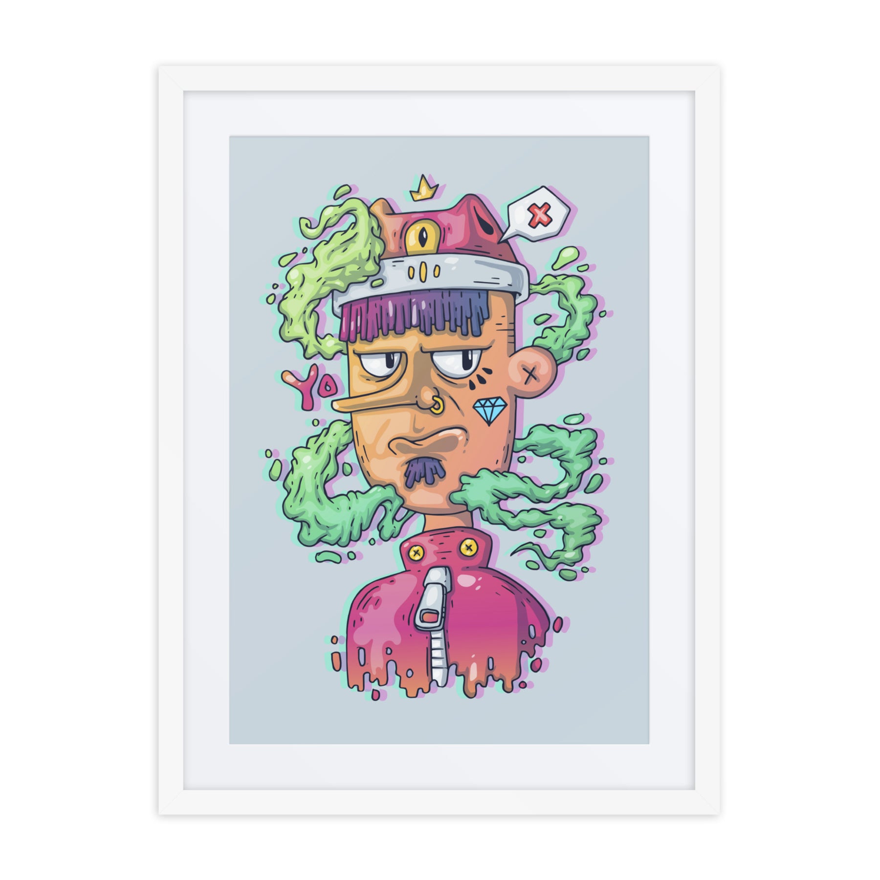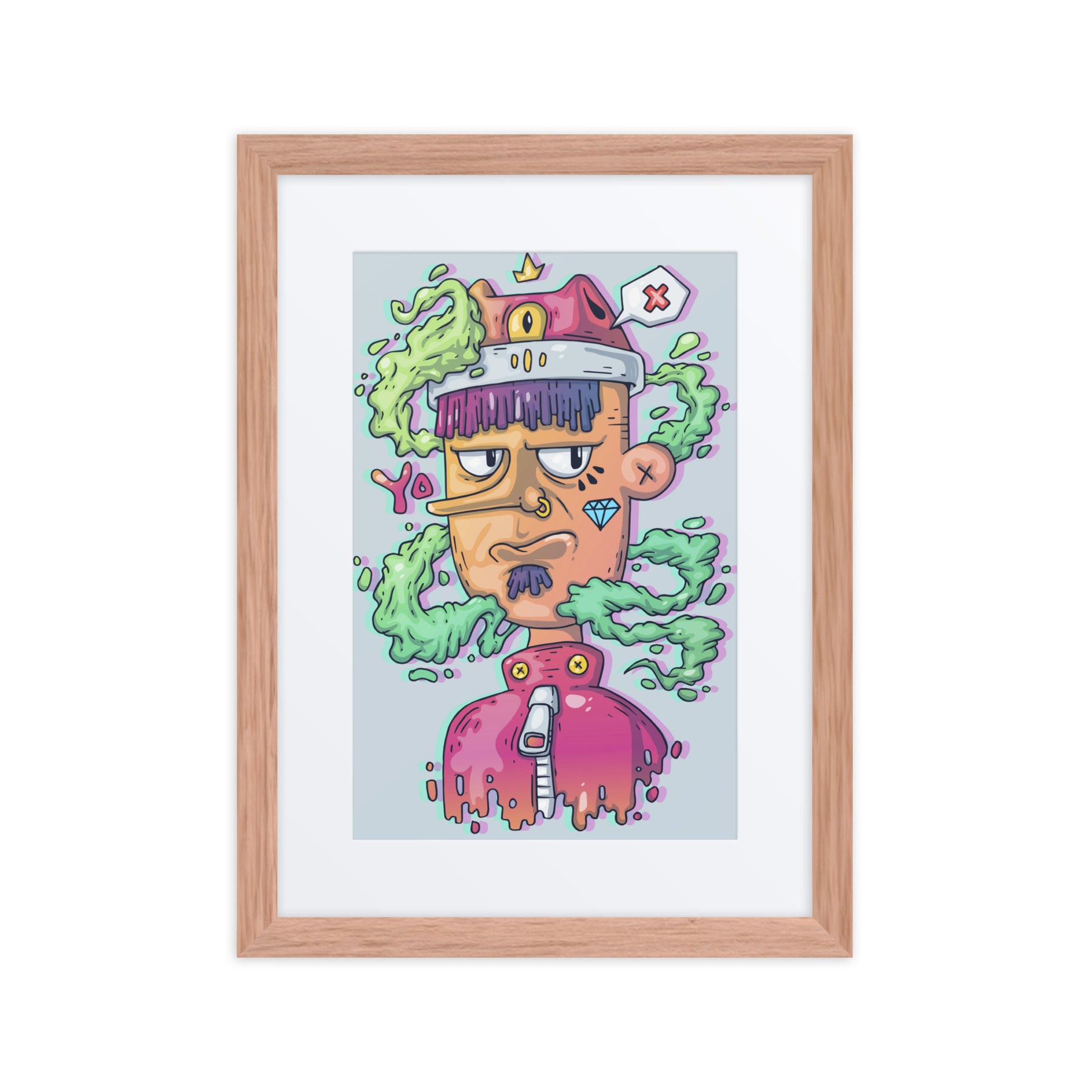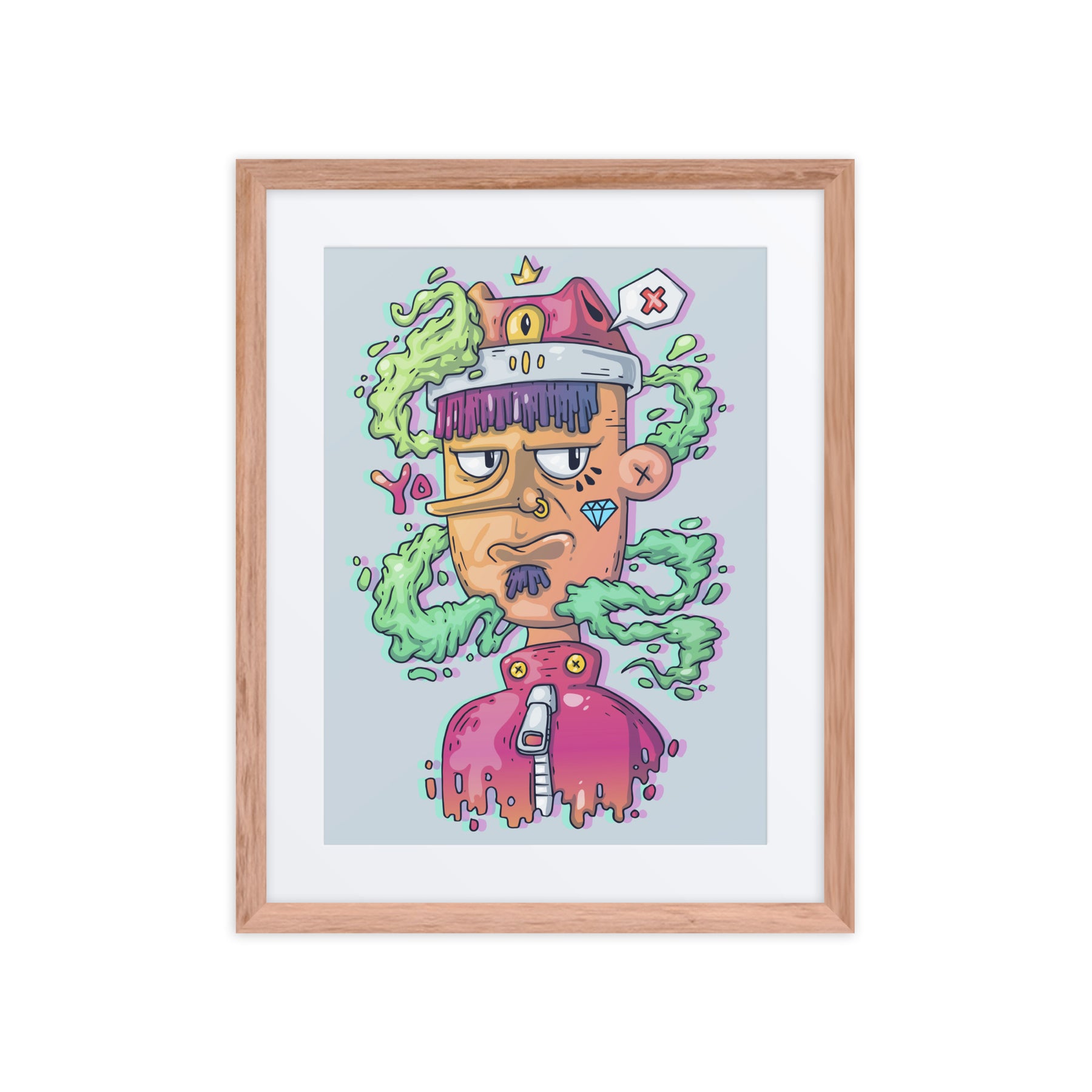 Elevate your decor with this quirky character, exuding charm and personality. Ideal for Gen Z renters and gift buyers, this framed wall art is pure fun and energy. It’s the perfect piece for your home office or living room, adding a splash of creativity and individuality that captures the essence of unique digital art gallery offerings.