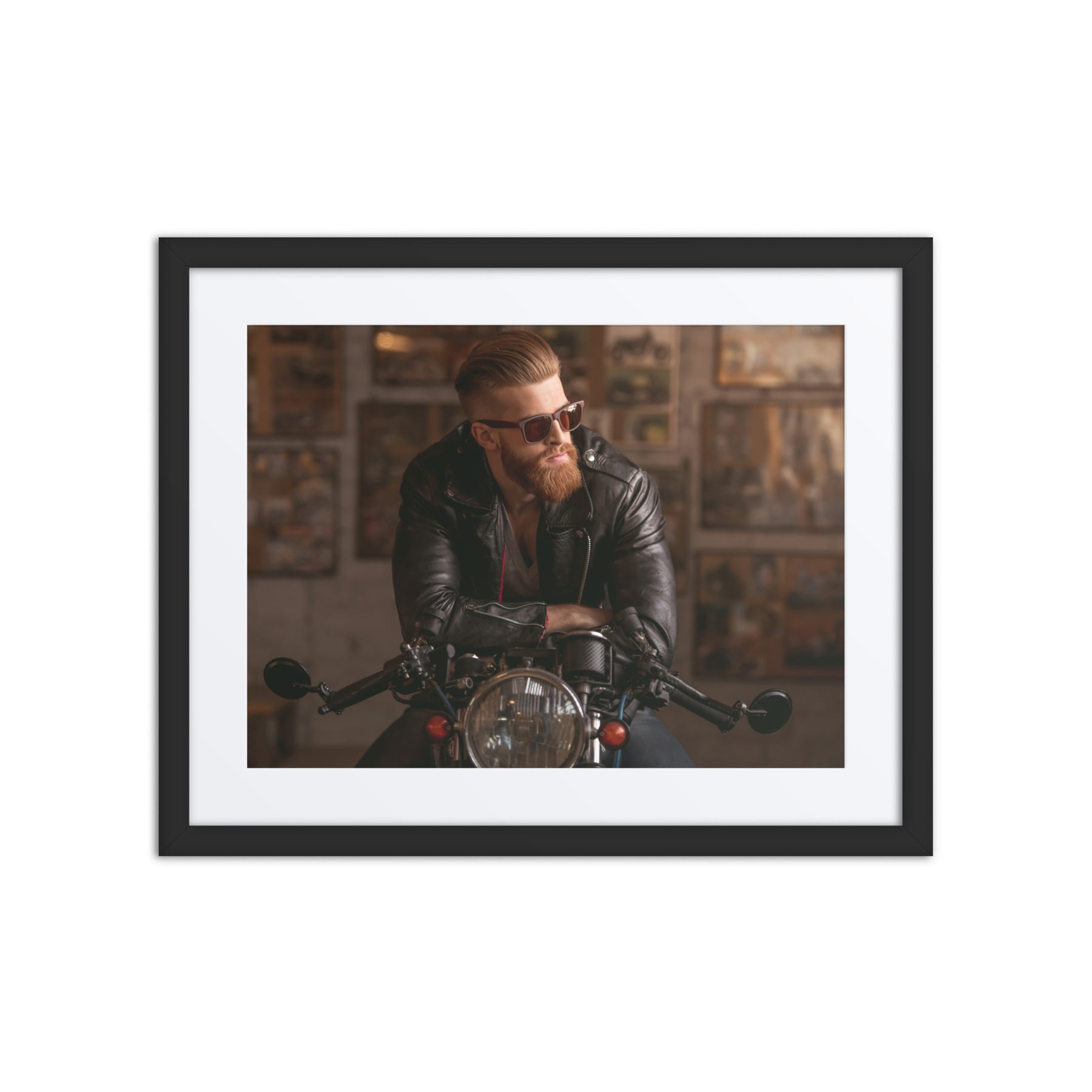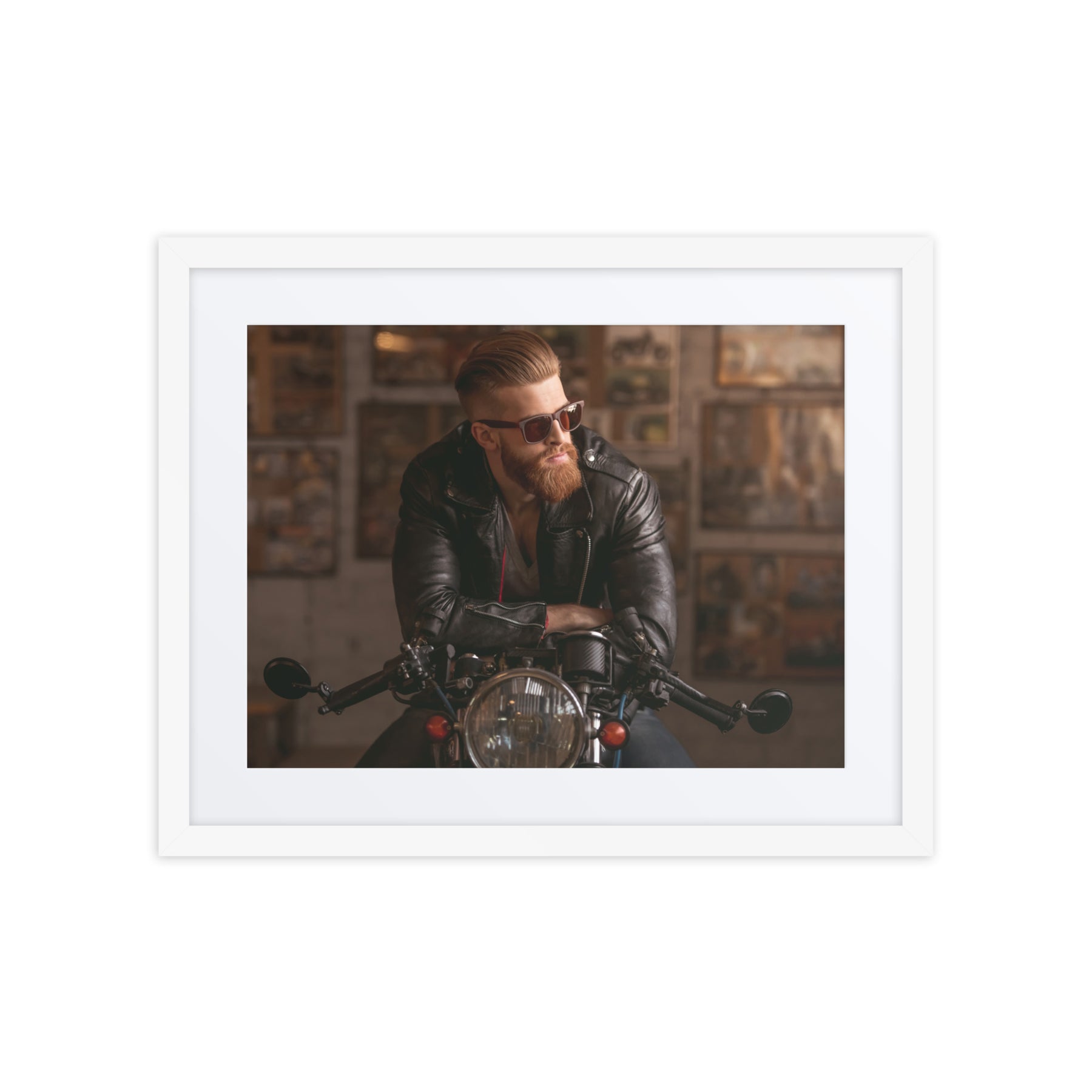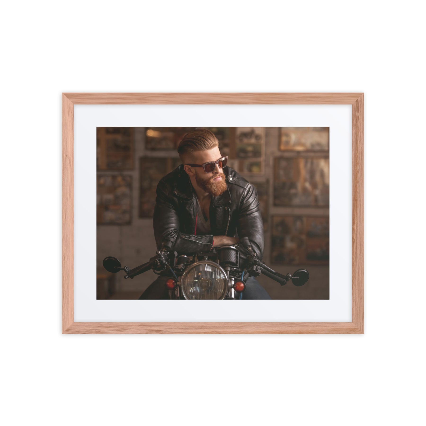 Channel your inner rebel with "Rebel Ride." This edgy framed poster showcases a cool biker aesthetic, ideal for adding a rugged touch to living rooms or garages. Perfect for gift buyers and those seeking unique digital art prints for home decor, it’s a standout piece that fuels adventure and individuality.