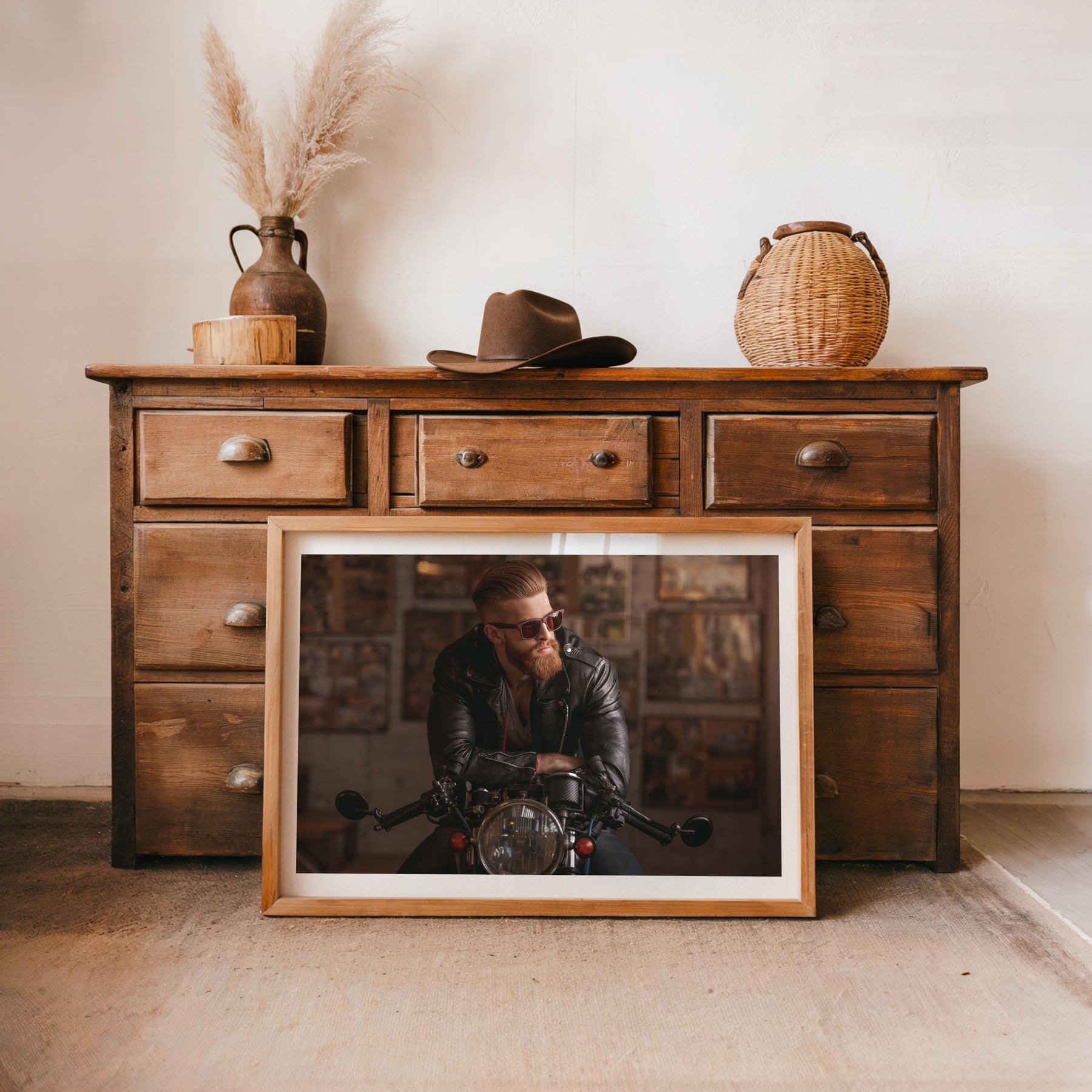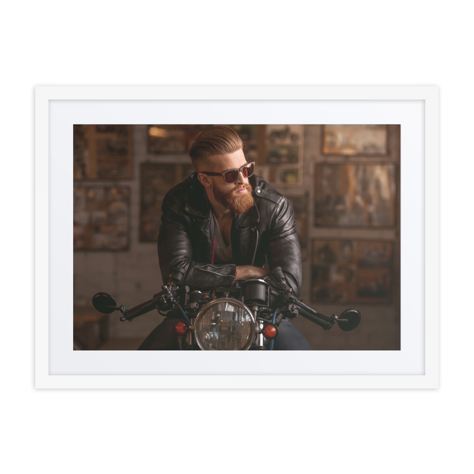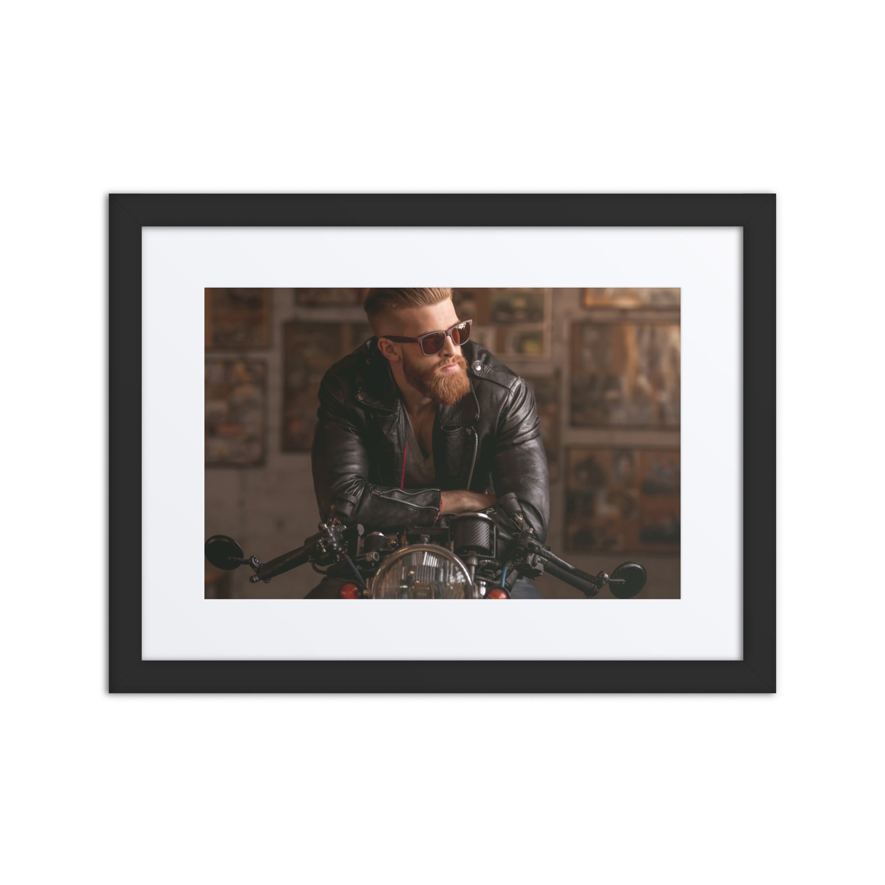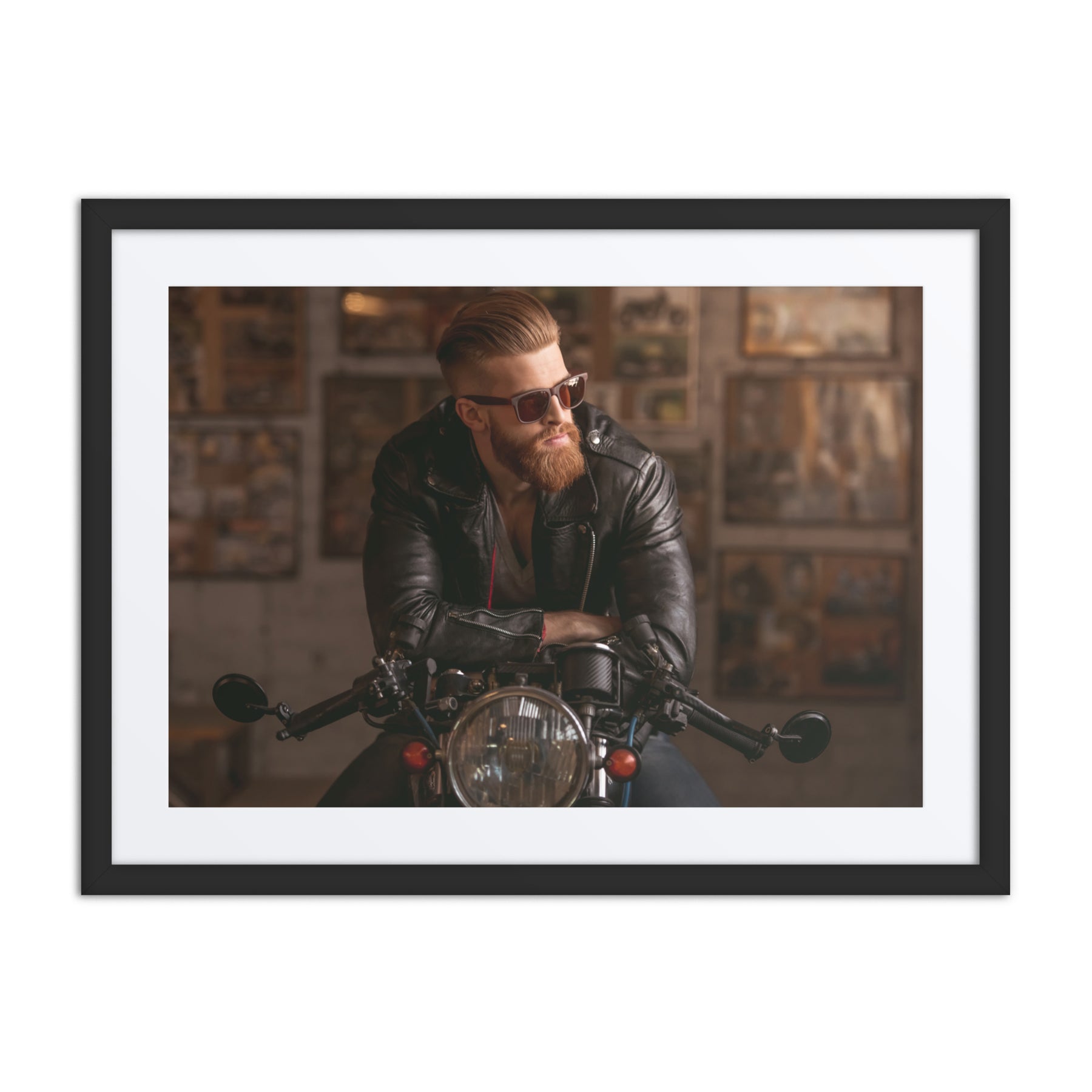 Channel your inner rebel with "Rebel Ride." This edgy framed poster showcases a cool biker aesthetic, ideal for adding a rugged touch to living rooms or garages. Perfect for gift buyers and those seeking unique digital art prints for home decor, it’s a standout piece that fuels adventure and individuality.
