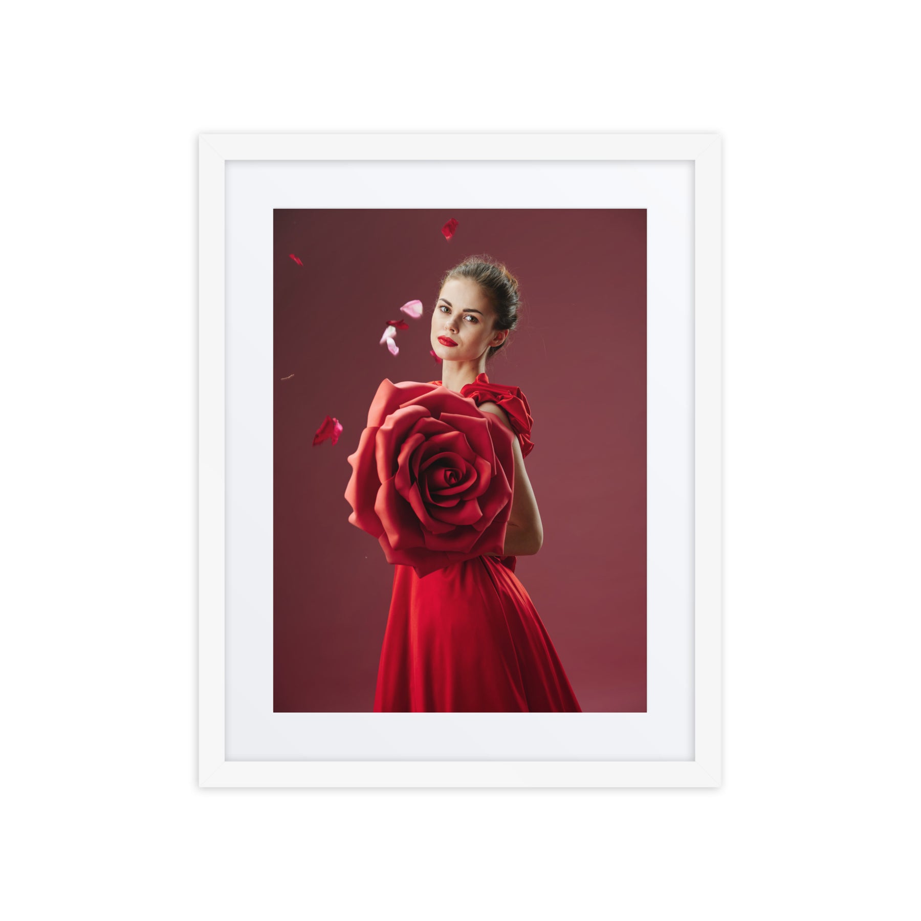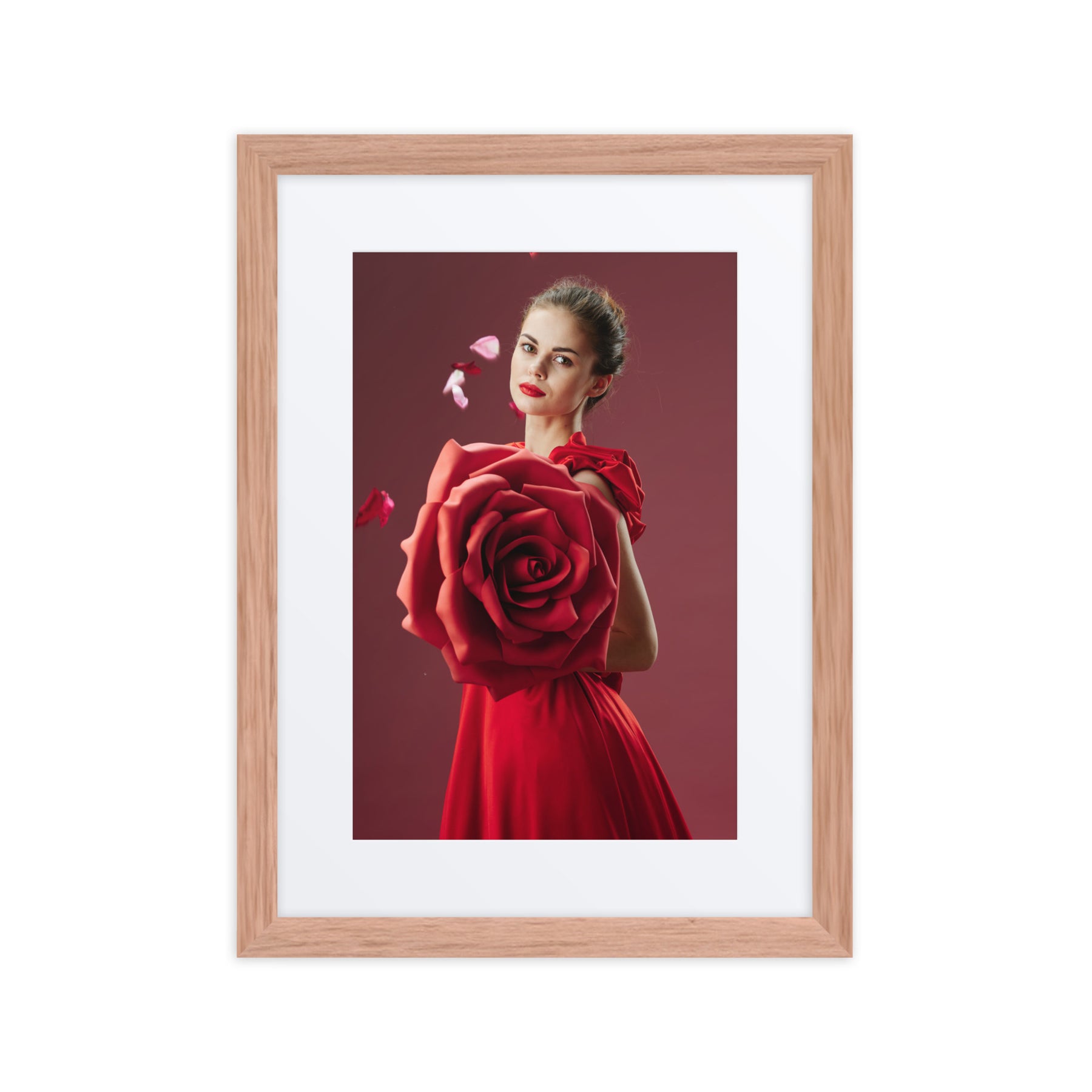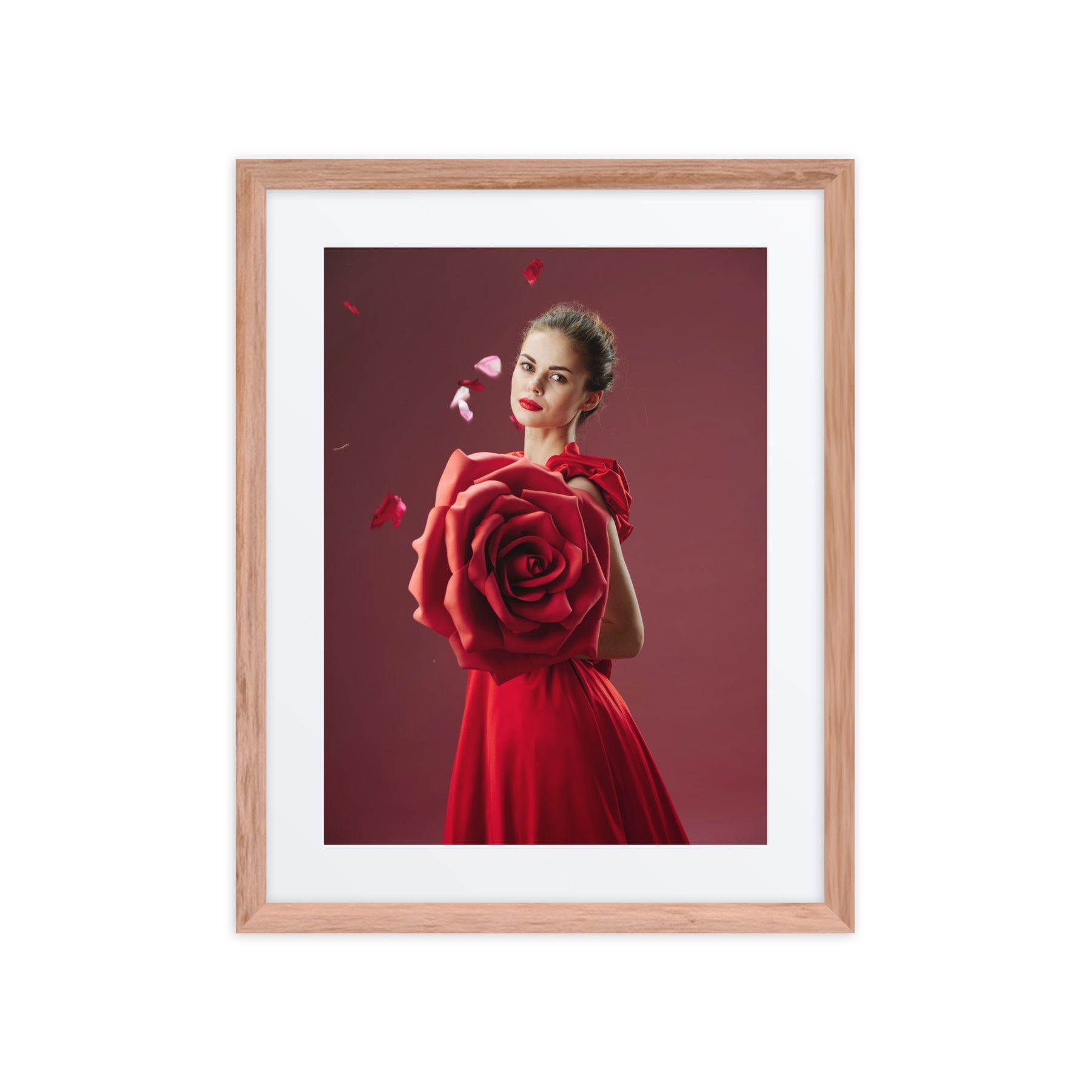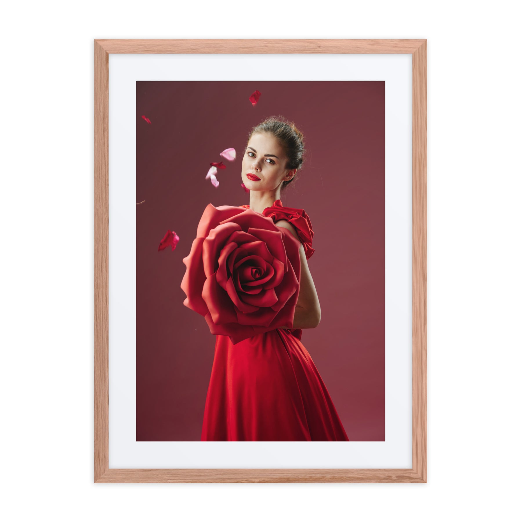 Immerse your space in romance with "Rose of Elegance," a stunning framed poster art piece portraying a woman holding a giant rose. This artwork brings beauty and drama into any living room, bedroom, or creative workspace, making it ideal for Gen Z renters and romantic gift buyers alike. Transform your wall art decor with this eye-catching piece! Explore our digital gallery online for more captivating digital art prints for home decor!