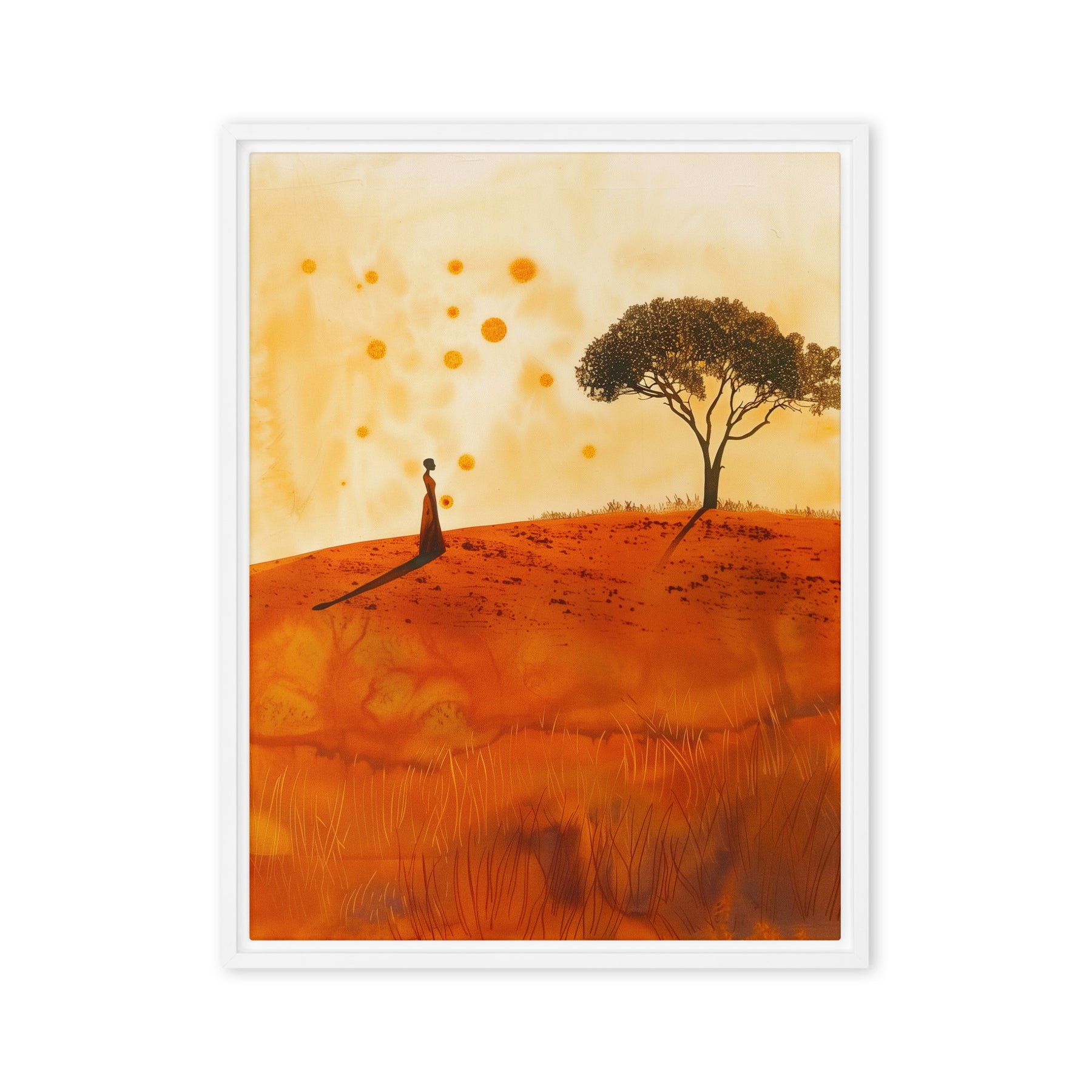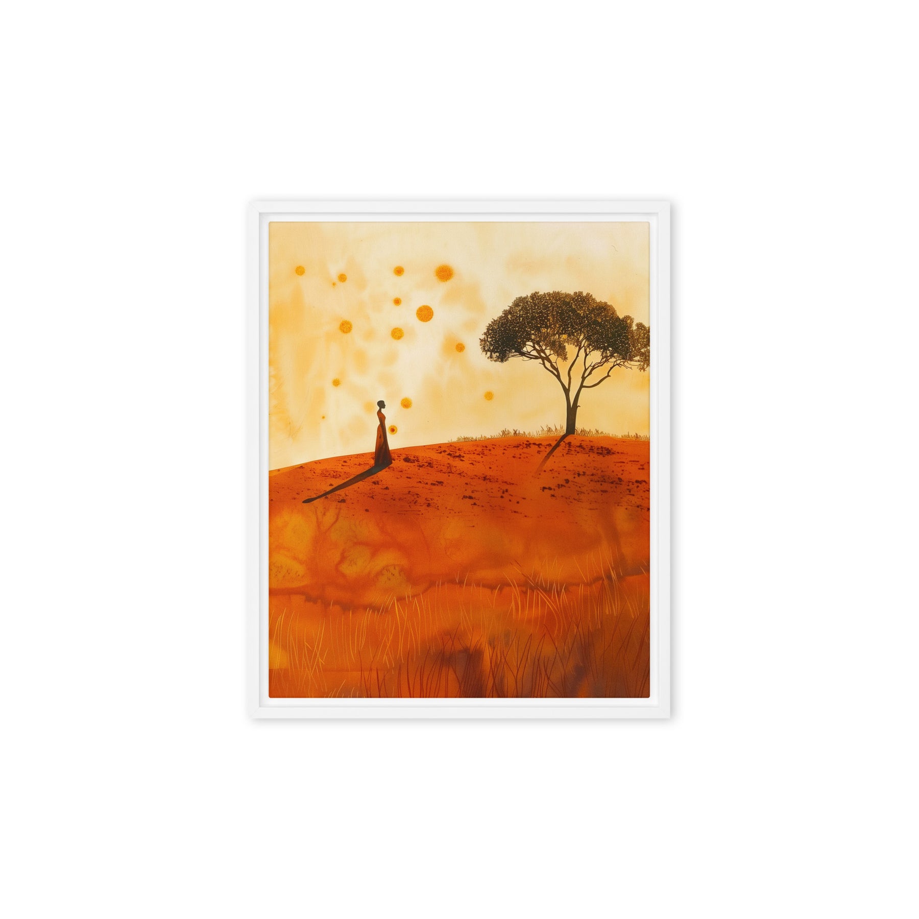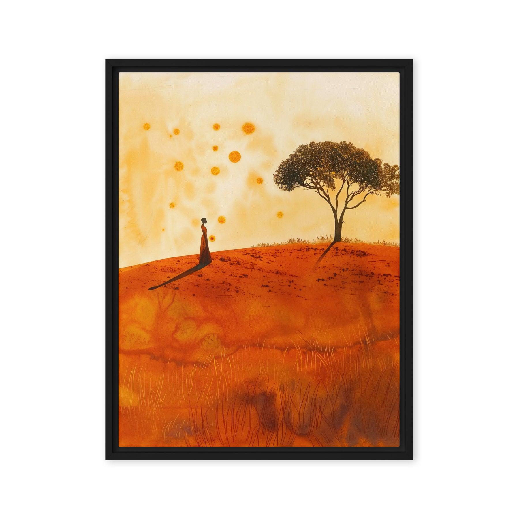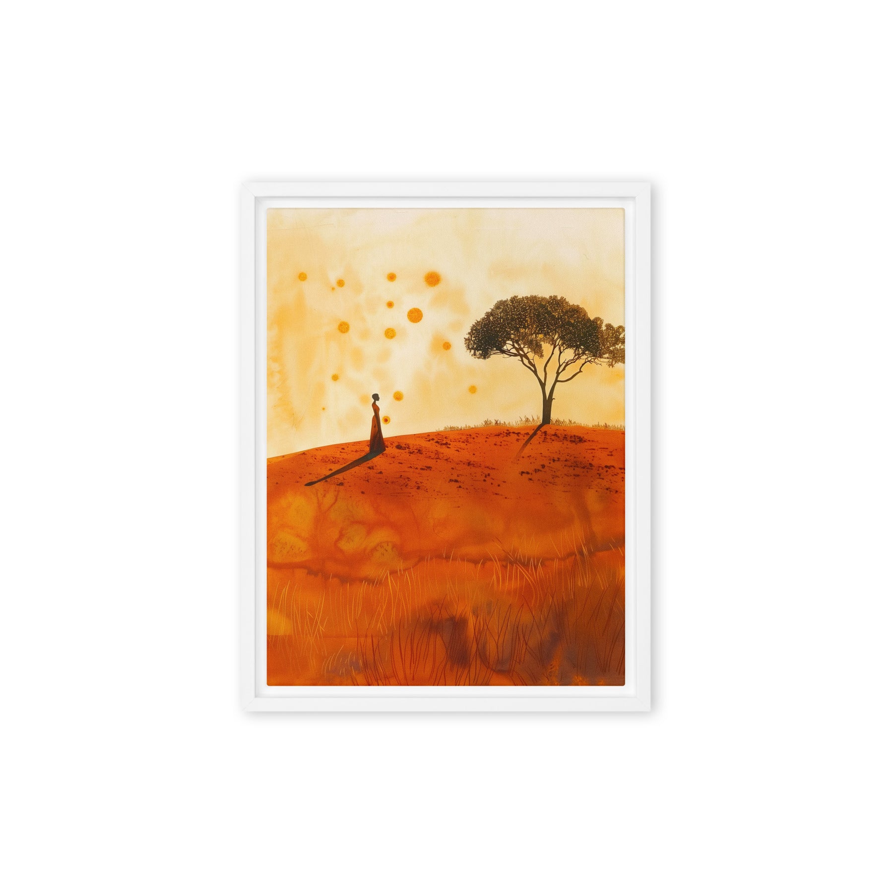 Embrace the serene beauty of a warm landscape with this evocative scene. Perfect for bedrooms and contemplative spaces, this framed wall art inspires peace and reflection. A great addition for art enthusiasts and digital art prints collectors seeking to enrich their home environment with natural elegance.