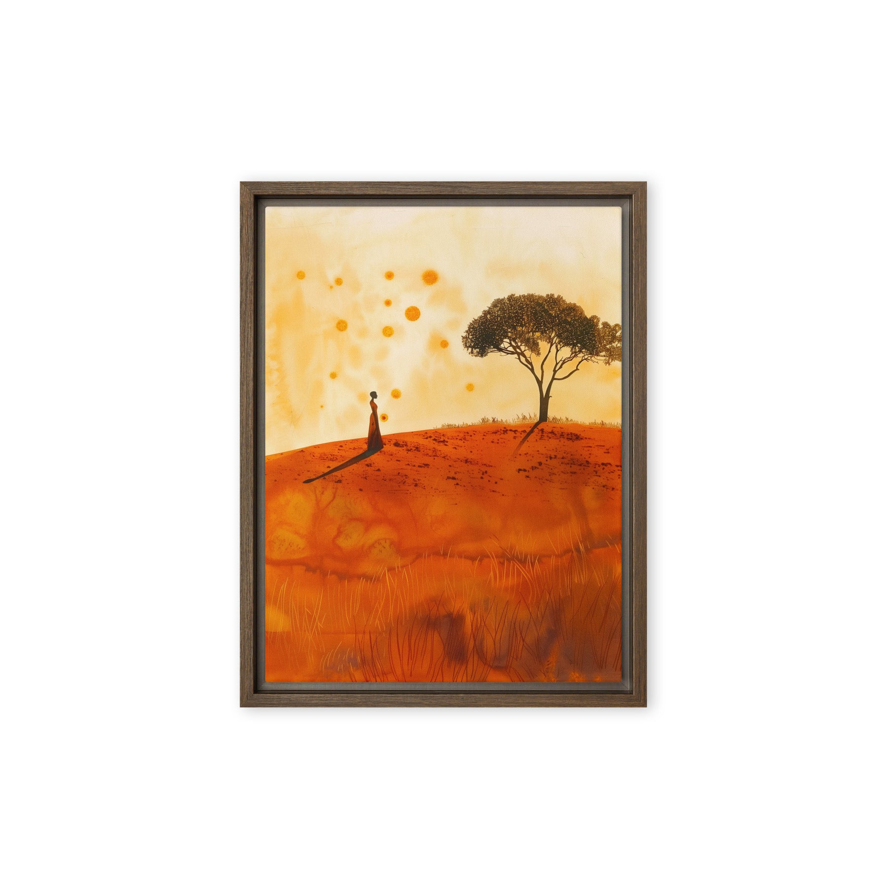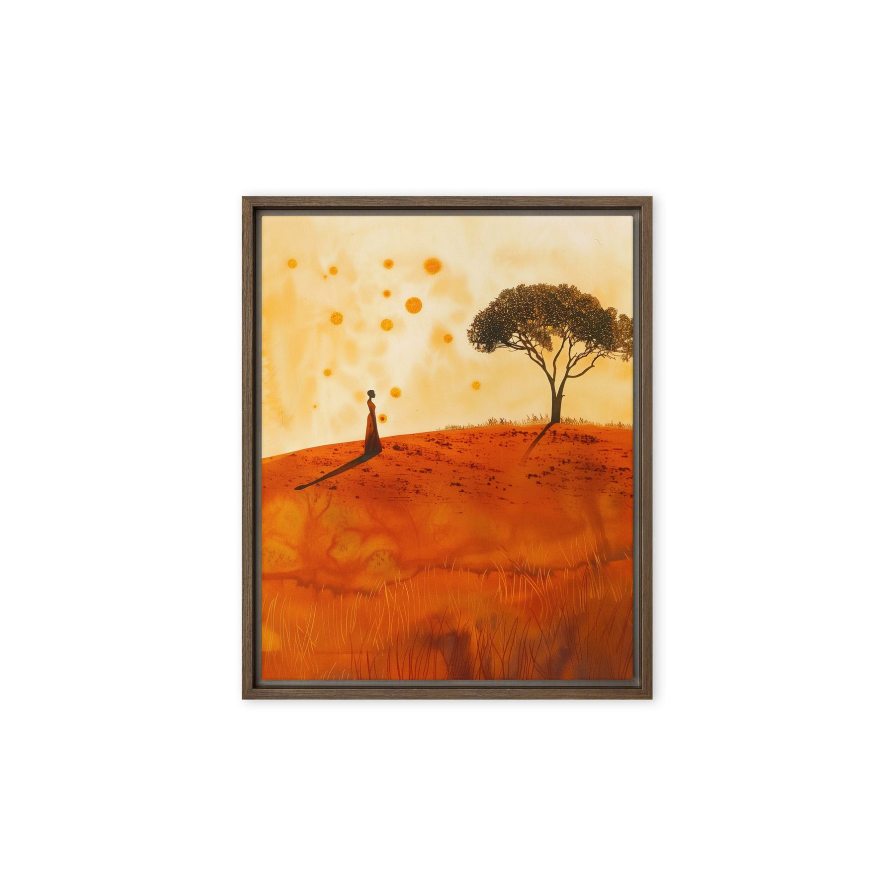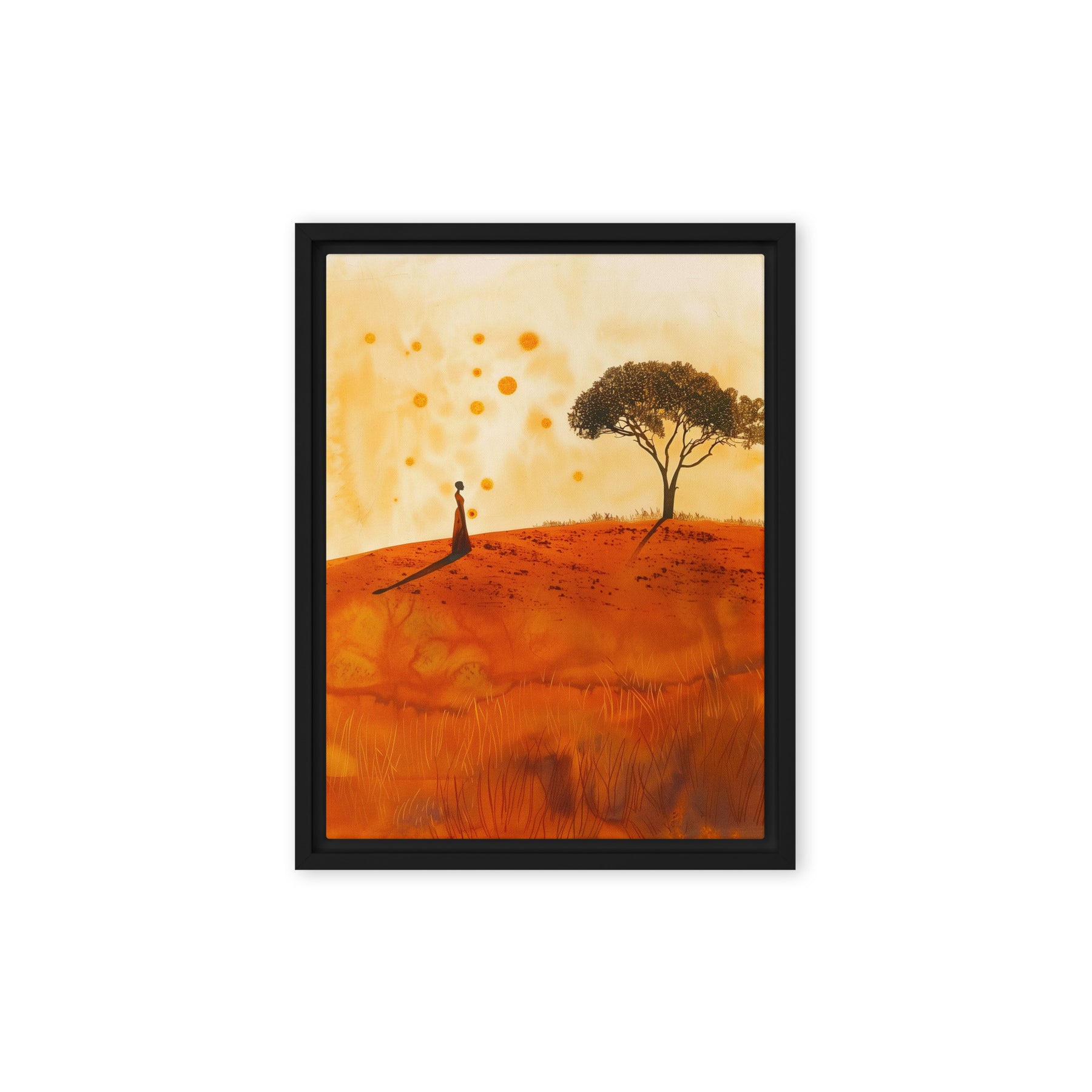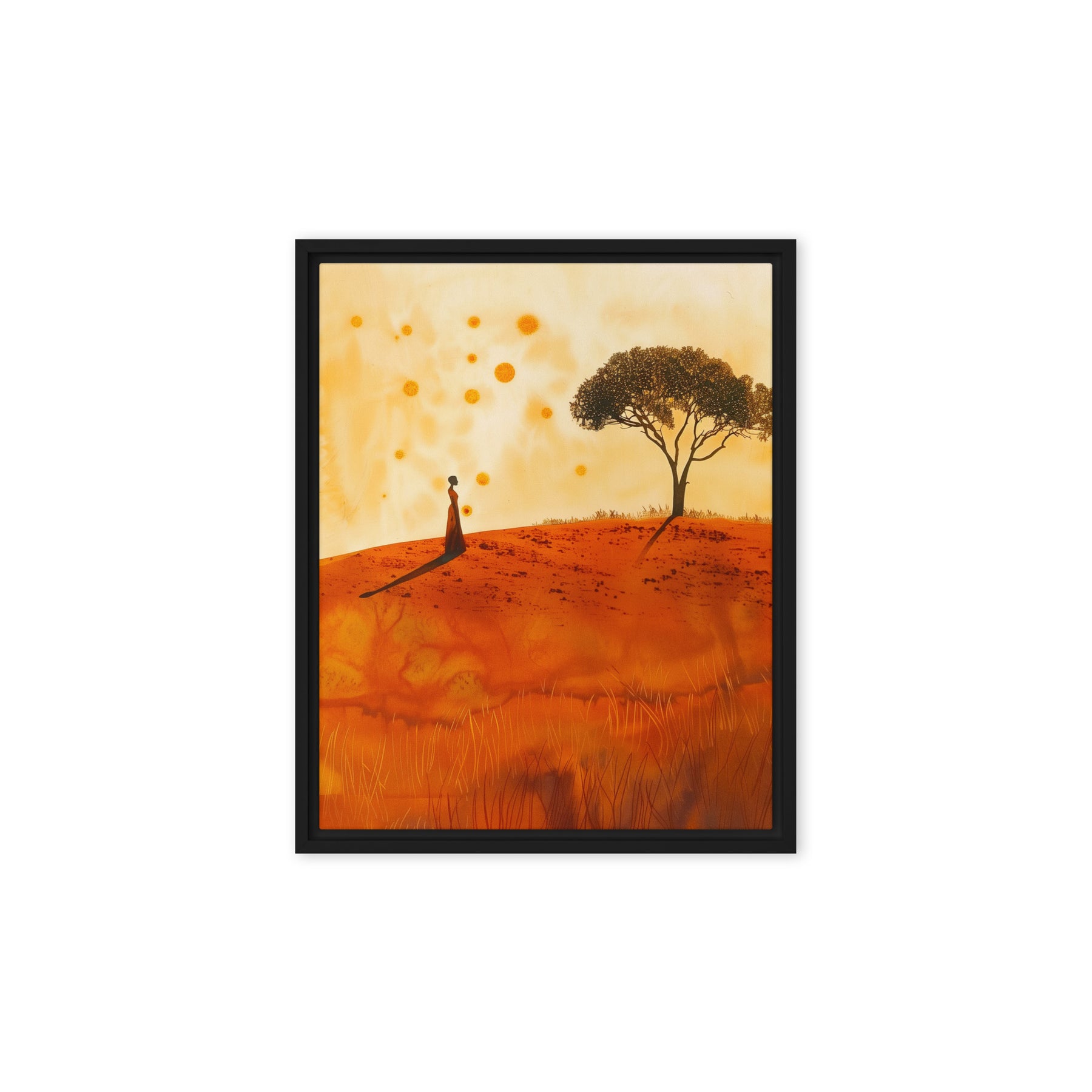 Embrace the serene beauty of a warm landscape with this evocative scene. Perfect for bedrooms and contemplative spaces, this framed wall art inspires peace and reflection. A great addition for art enthusiasts and digital art prints collectors seeking to enrich their home environment with natural elegance.