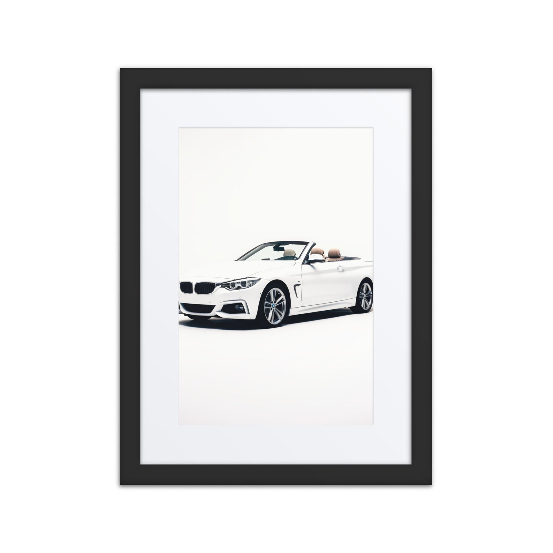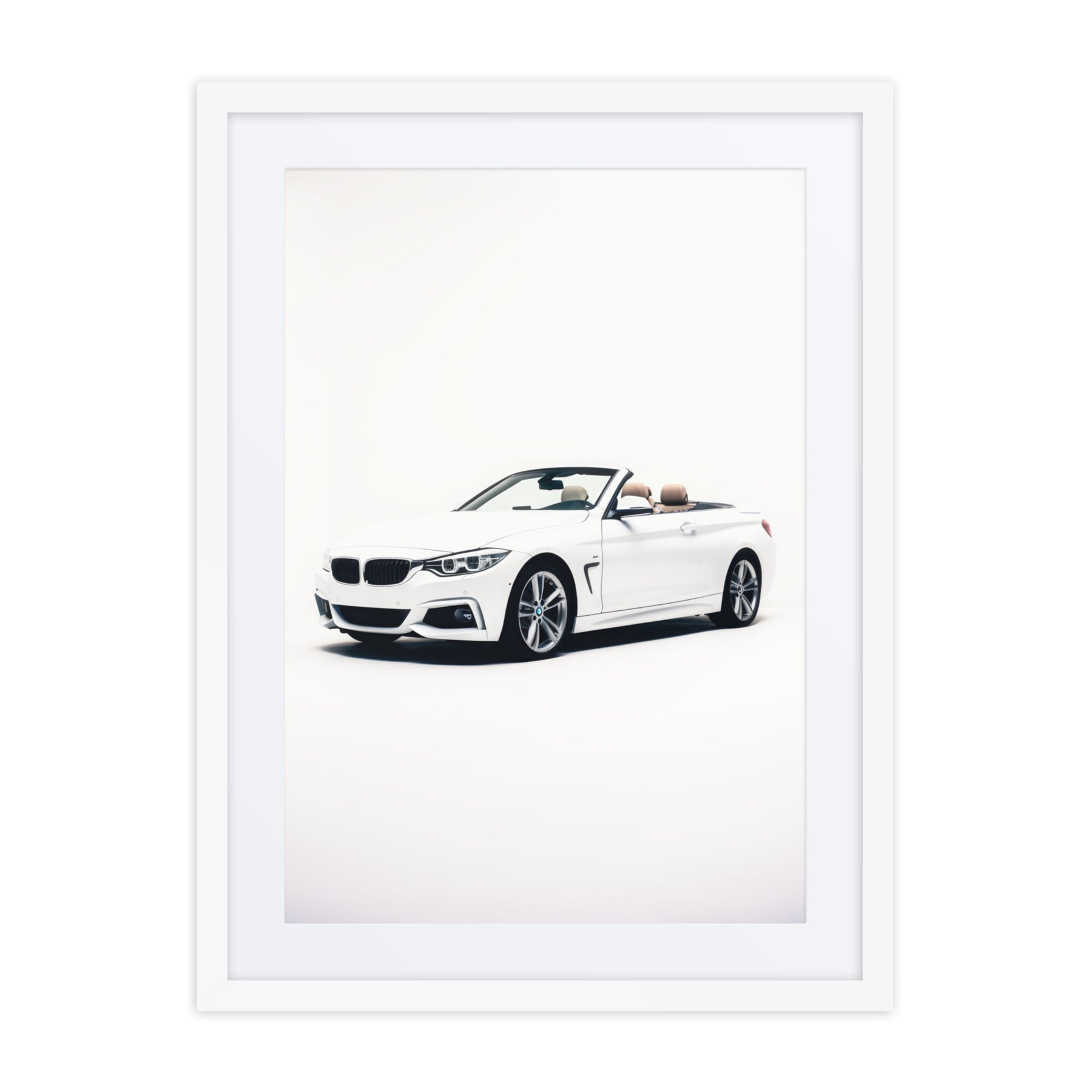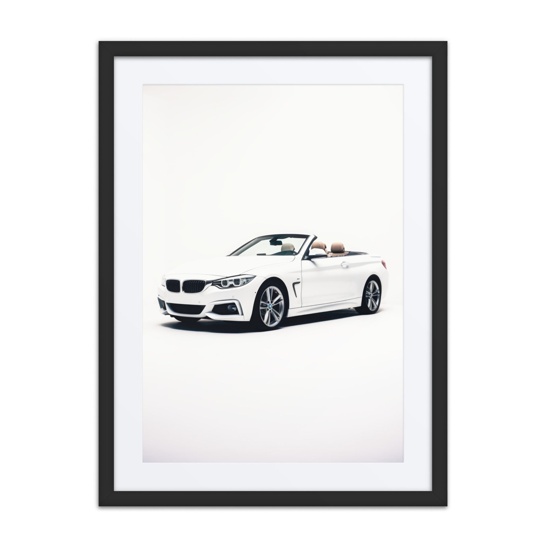 Experience sophistication with "Iconic Elegance, " featuring a pristine white BMW convertible against a clean backdrop . This chic framed poster art effortlessly enhances any bedroom or office decor, inspiring dreams of open roads and sunny days. Embrace luxury and style in your wall art while creating a serene, stylish atmosphere !