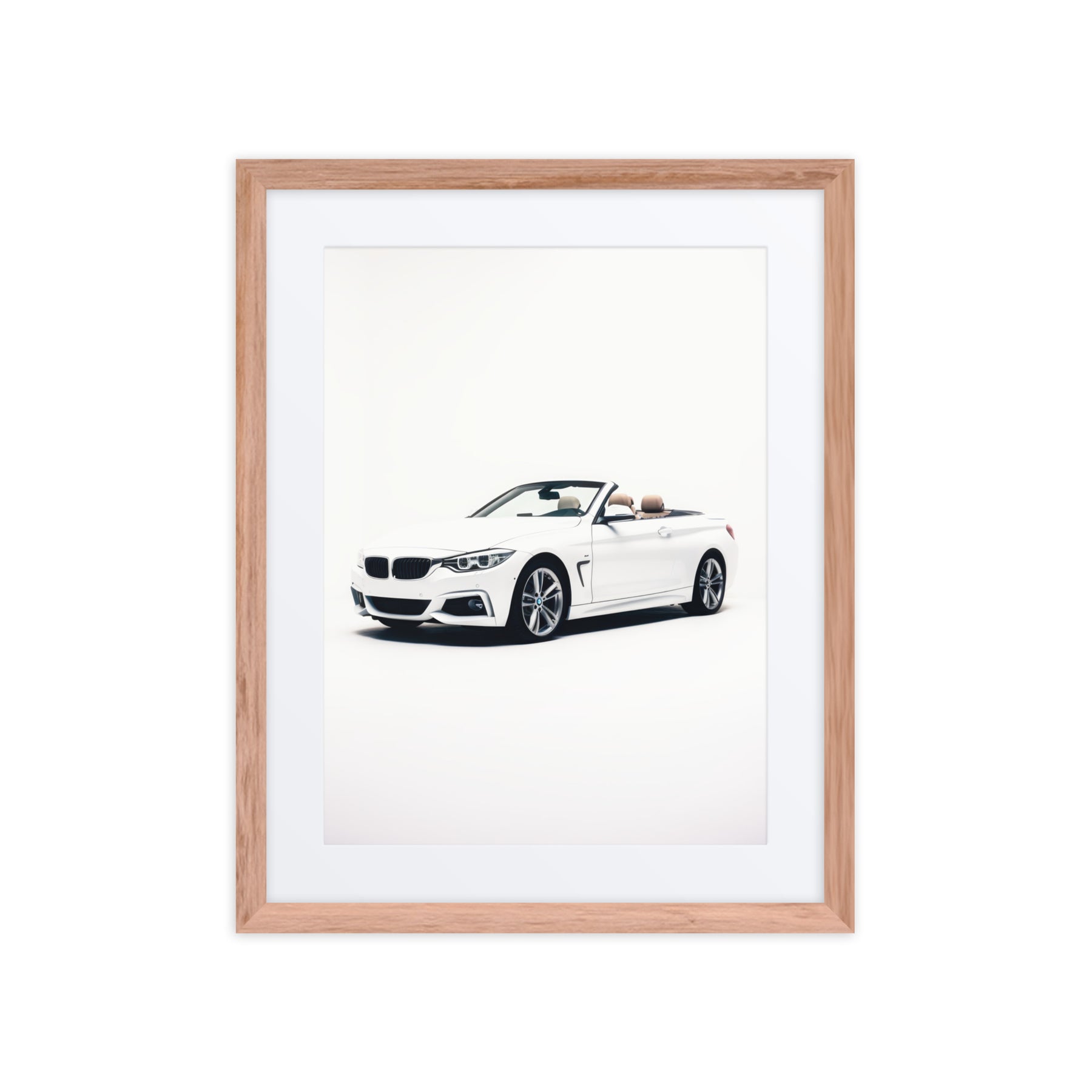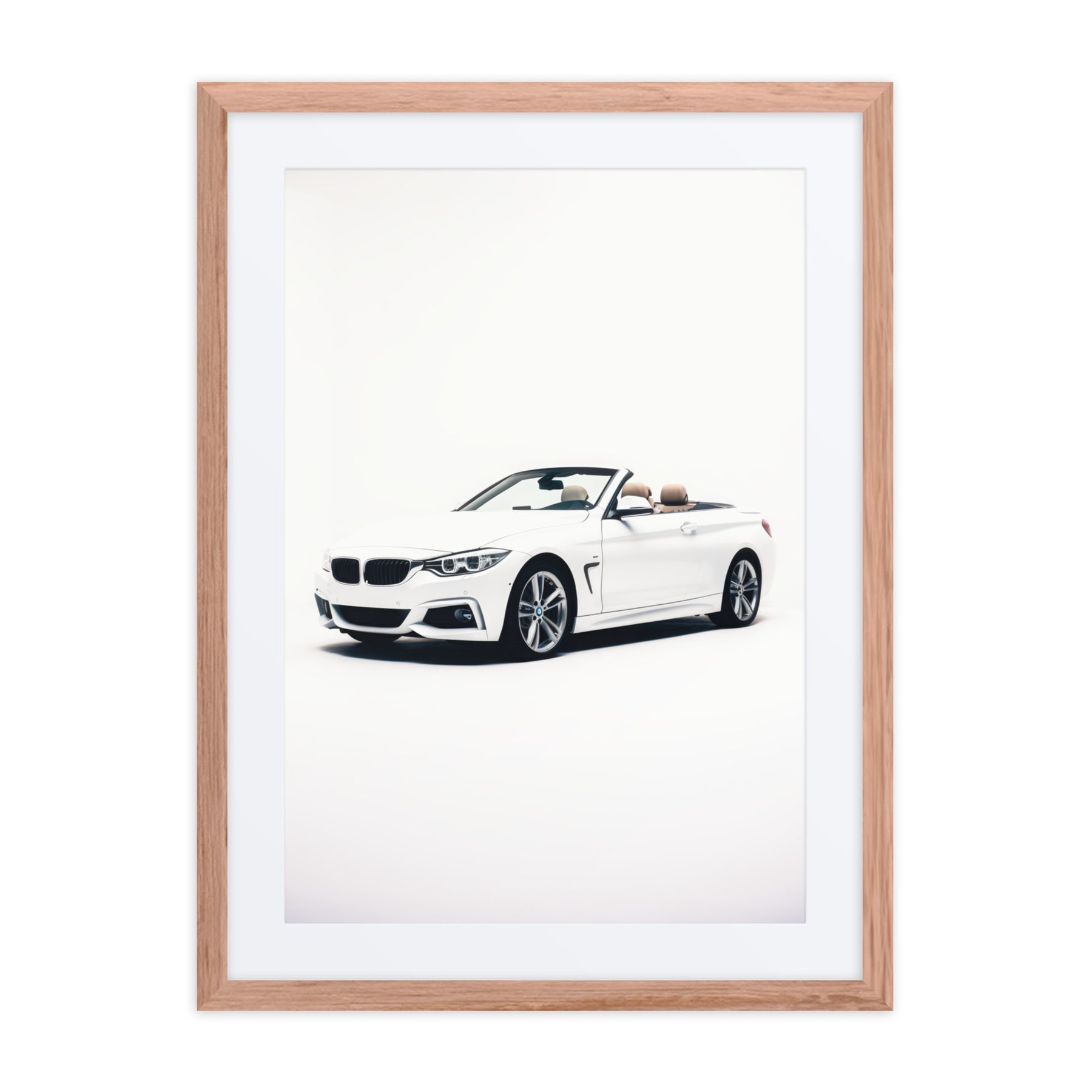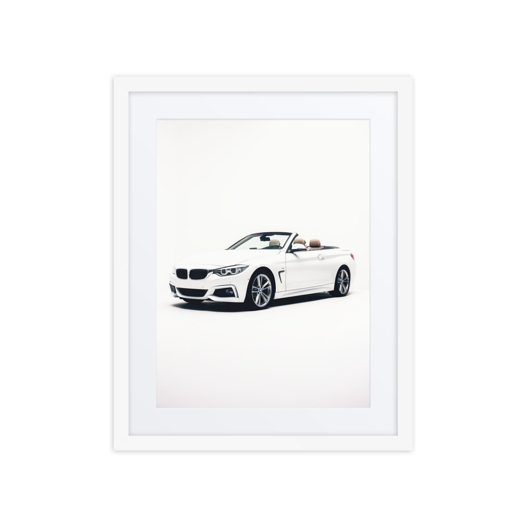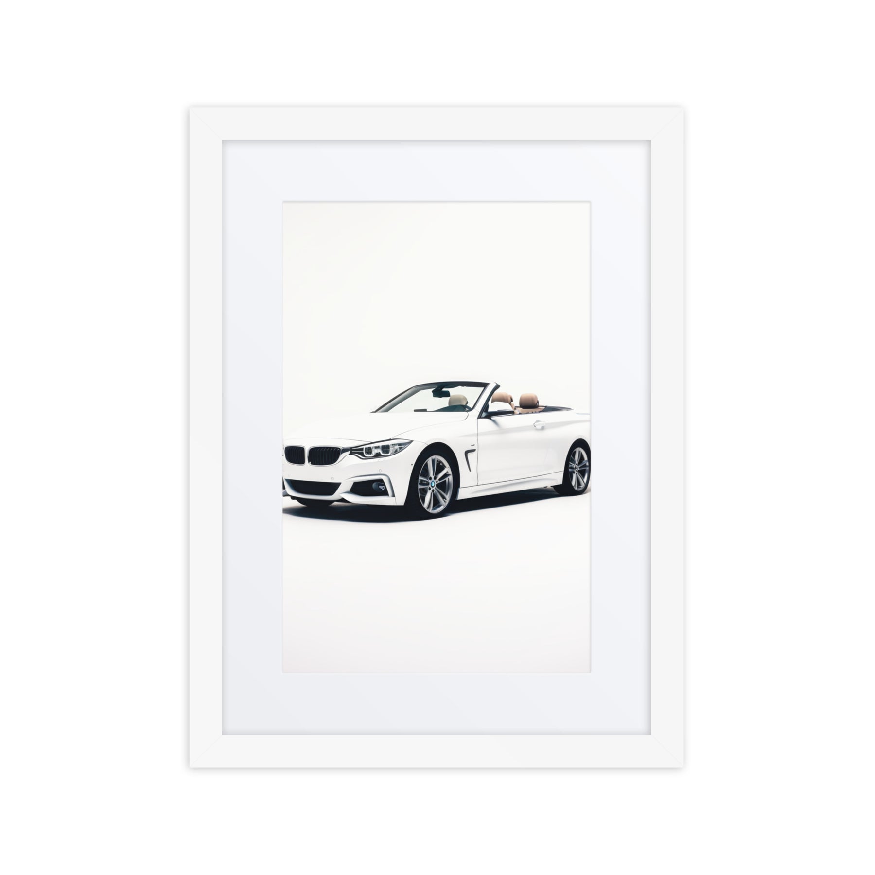 Experience sophistication with "Iconic Elegance, " featuring a pristine white BMW convertible against a clean backdrop . This chic framed poster art effortlessly enhances any bedroom or office decor, inspiring dreams of open roads and sunny days. Embrace luxury and style in your wall art while creating a serene, stylish atmosphere !