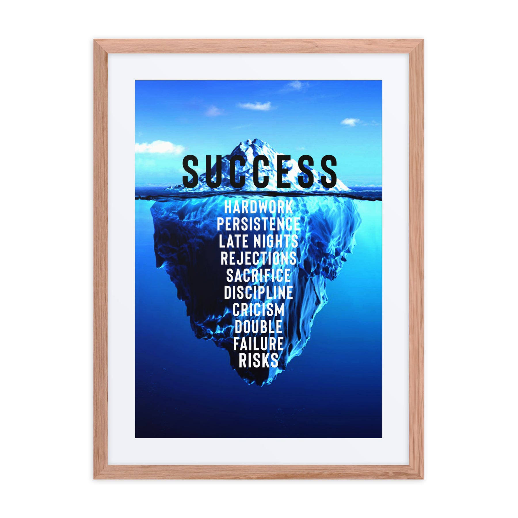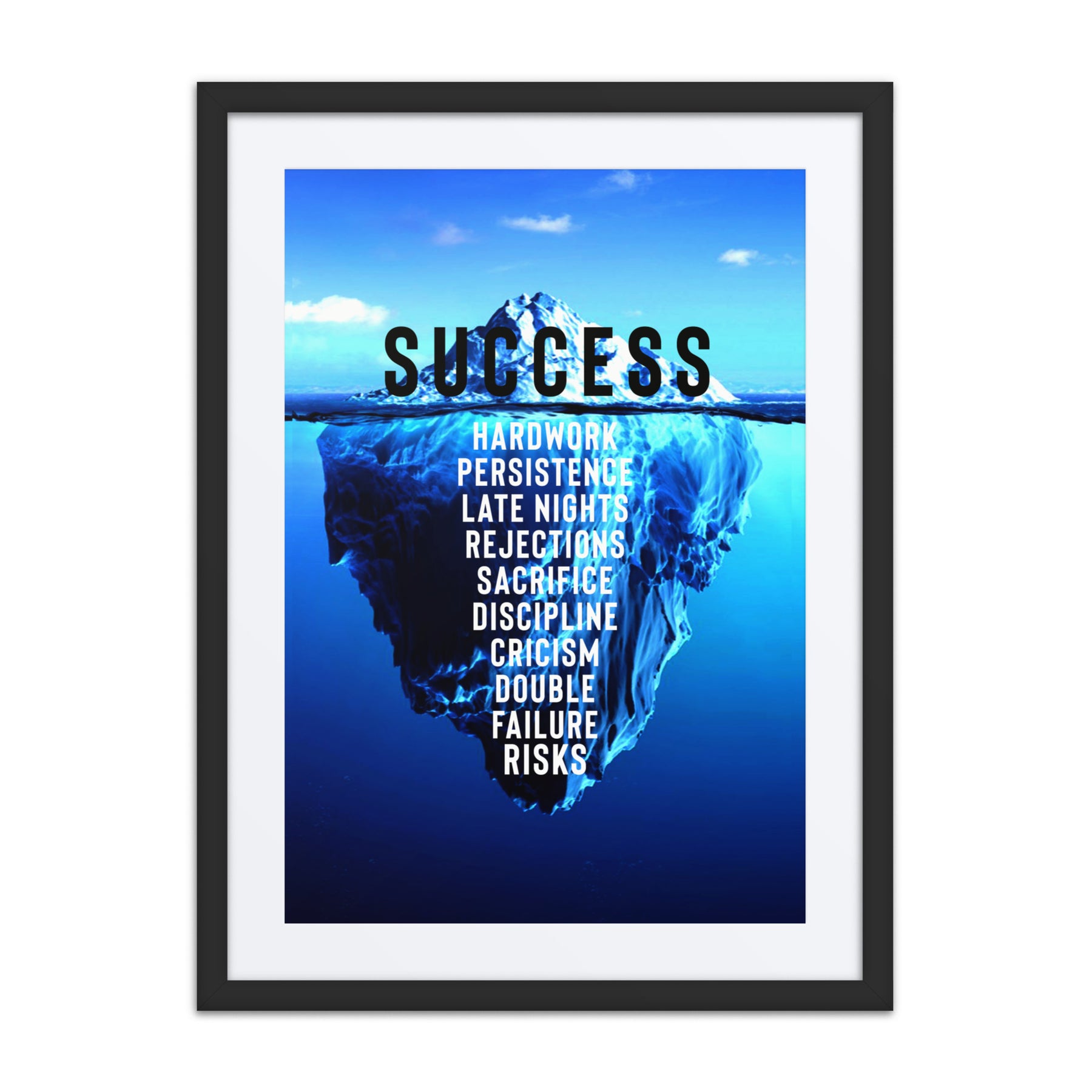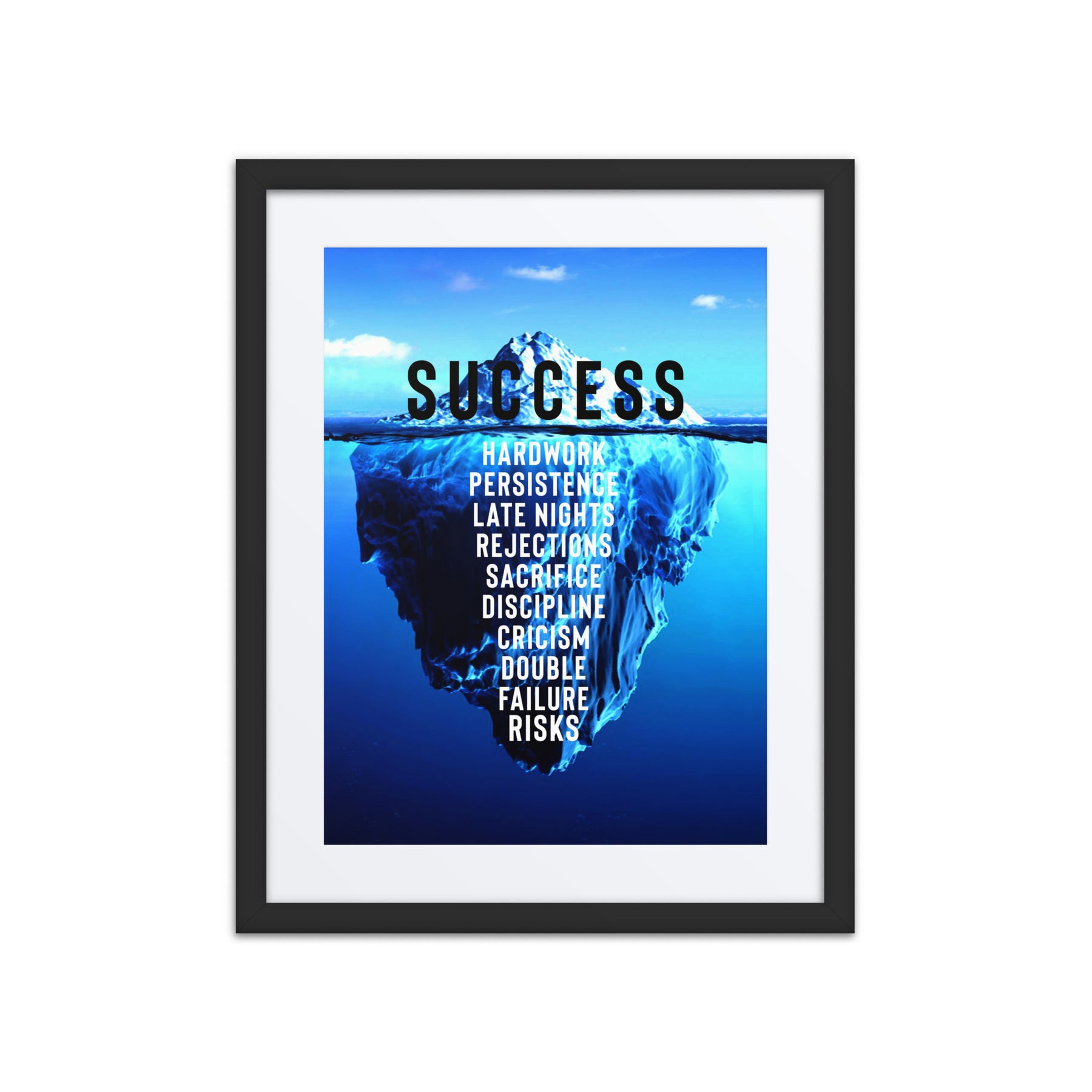 Dive deeper into the journey of achievement with this striking "Success" framed poster ! Featuring an iceberg graphic , this art reveals the unseen effort that lies beneath the surface —hard work, persistence , and sacrifice . Perfect for office decor, it serves as a powerful motivator to navigate challenges with grit . Transform your space into a hub of inspiration and