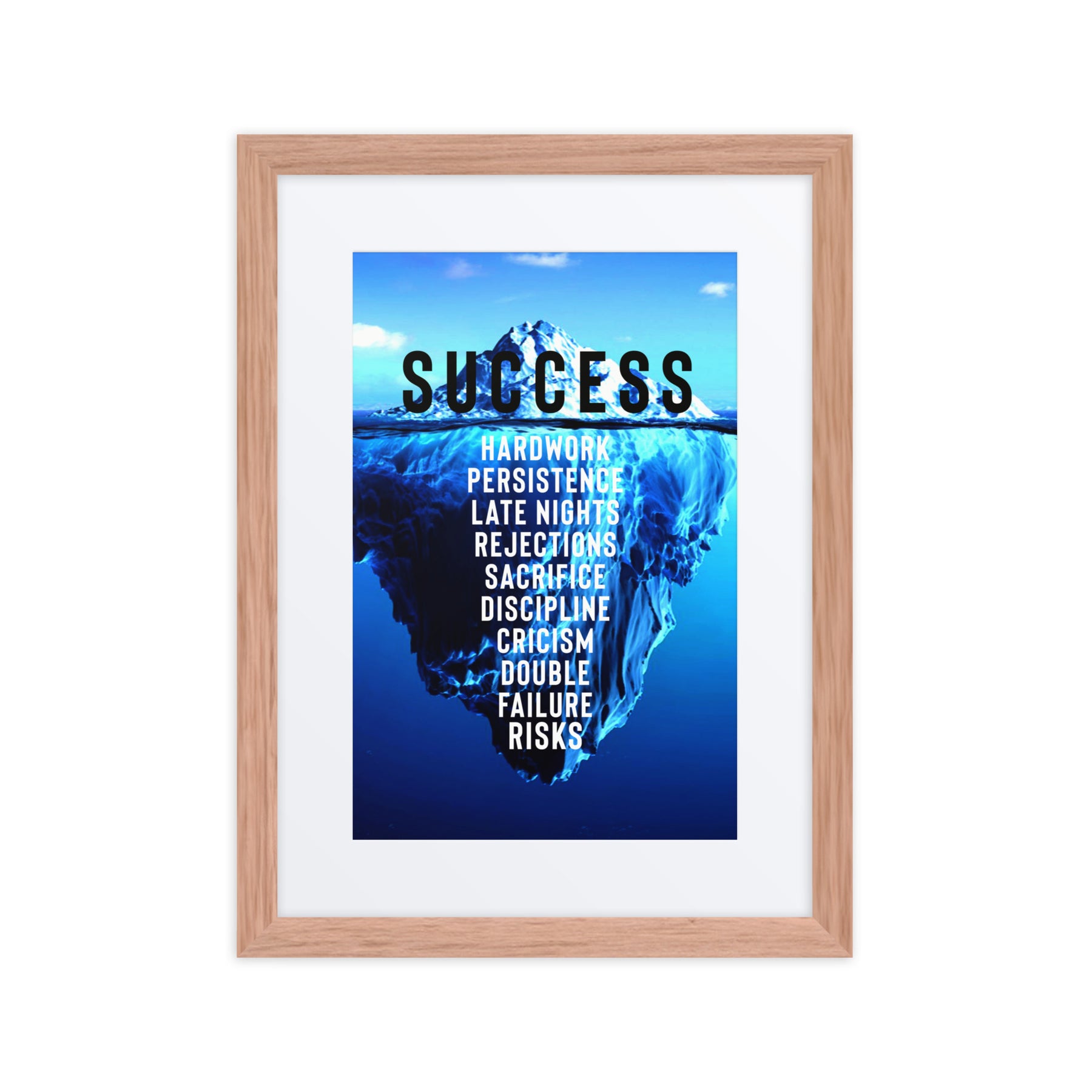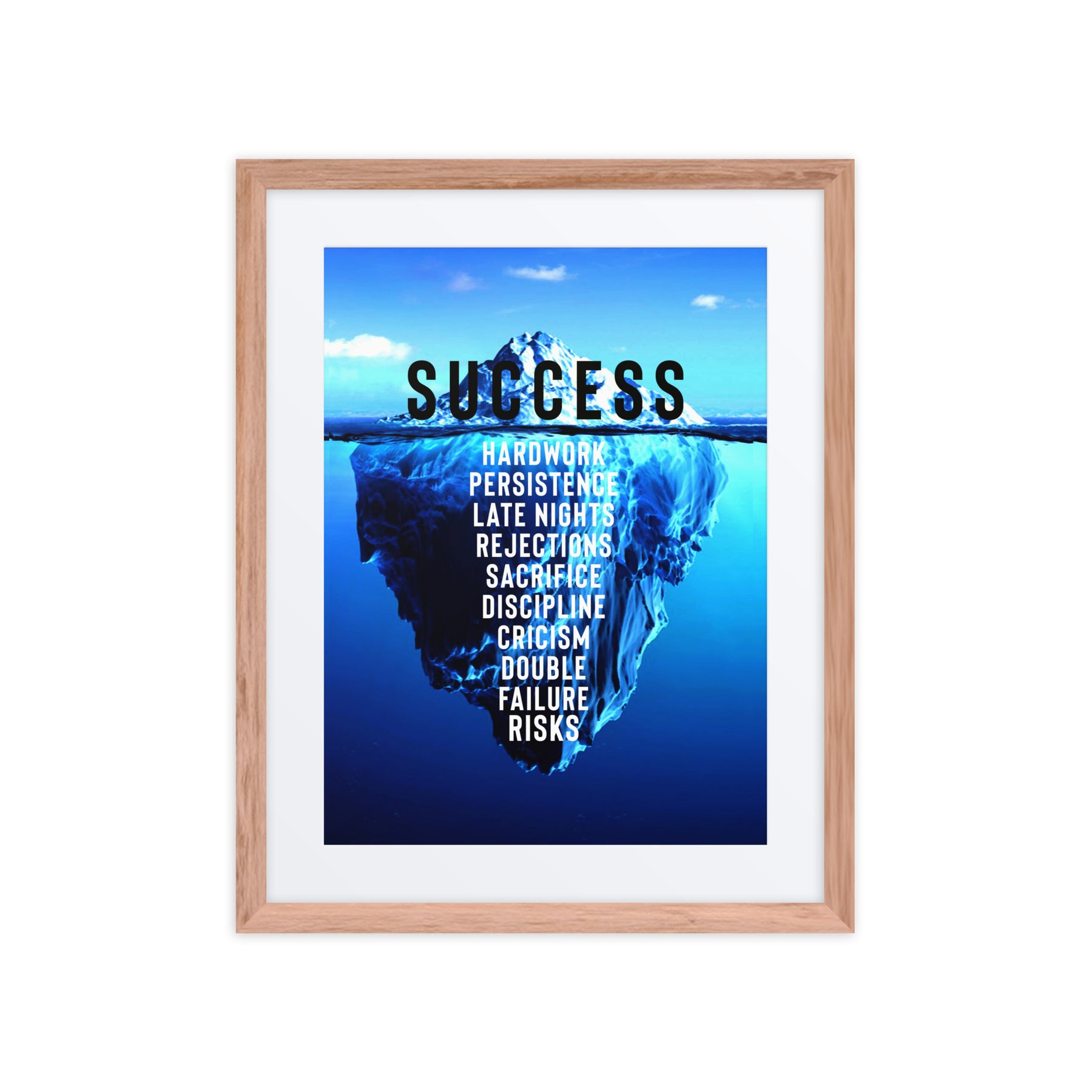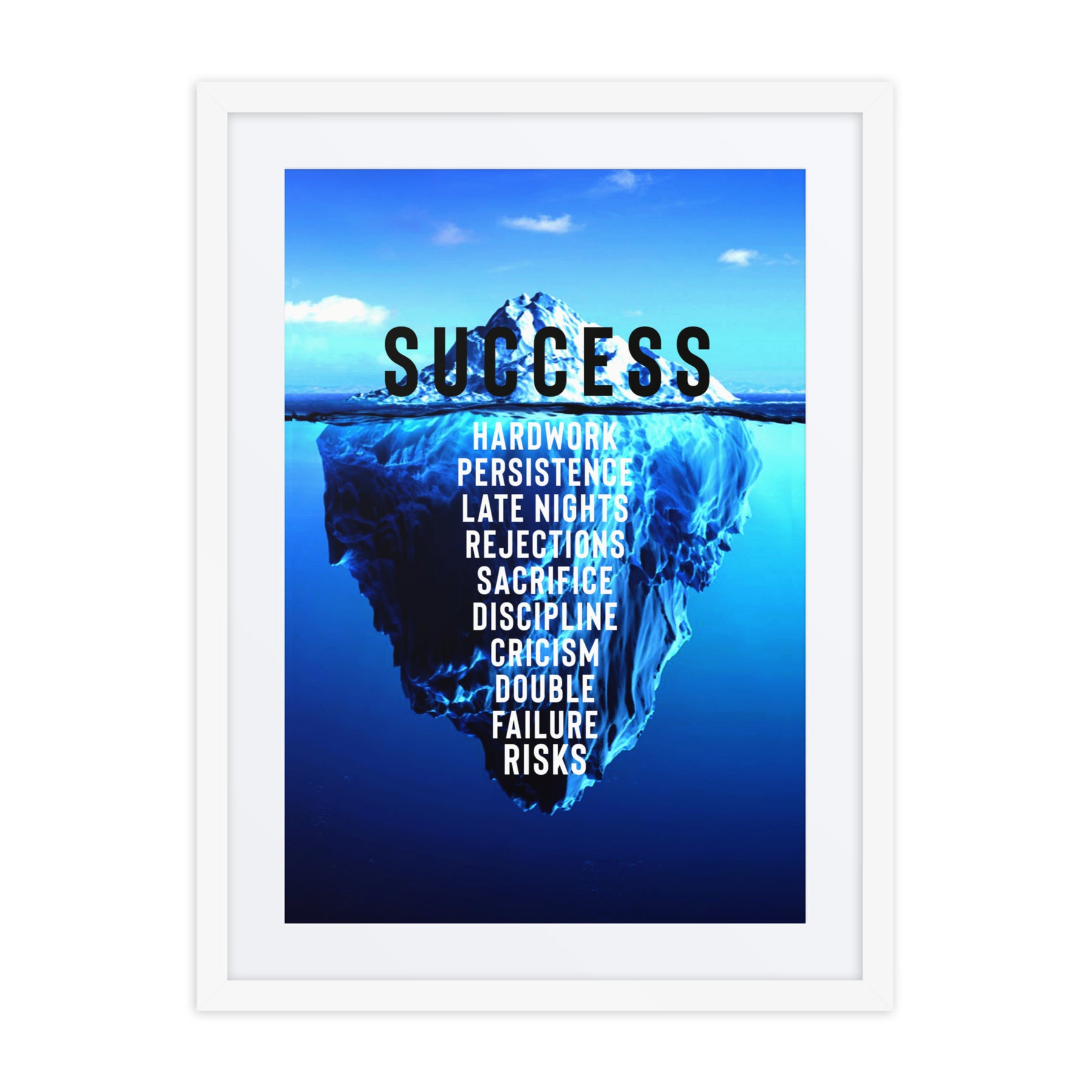 Dive deeper into the journey of achievement with this striking "Success" framed poster ! Featuring an iceberg graphic , this art reveals the unseen effort that lies beneath the surface —hard work, persistence , and sacrifice . Perfect for office decor, it serves as a powerful motivator to navigate challenges with grit . Transform your space into a hub of inspiration and