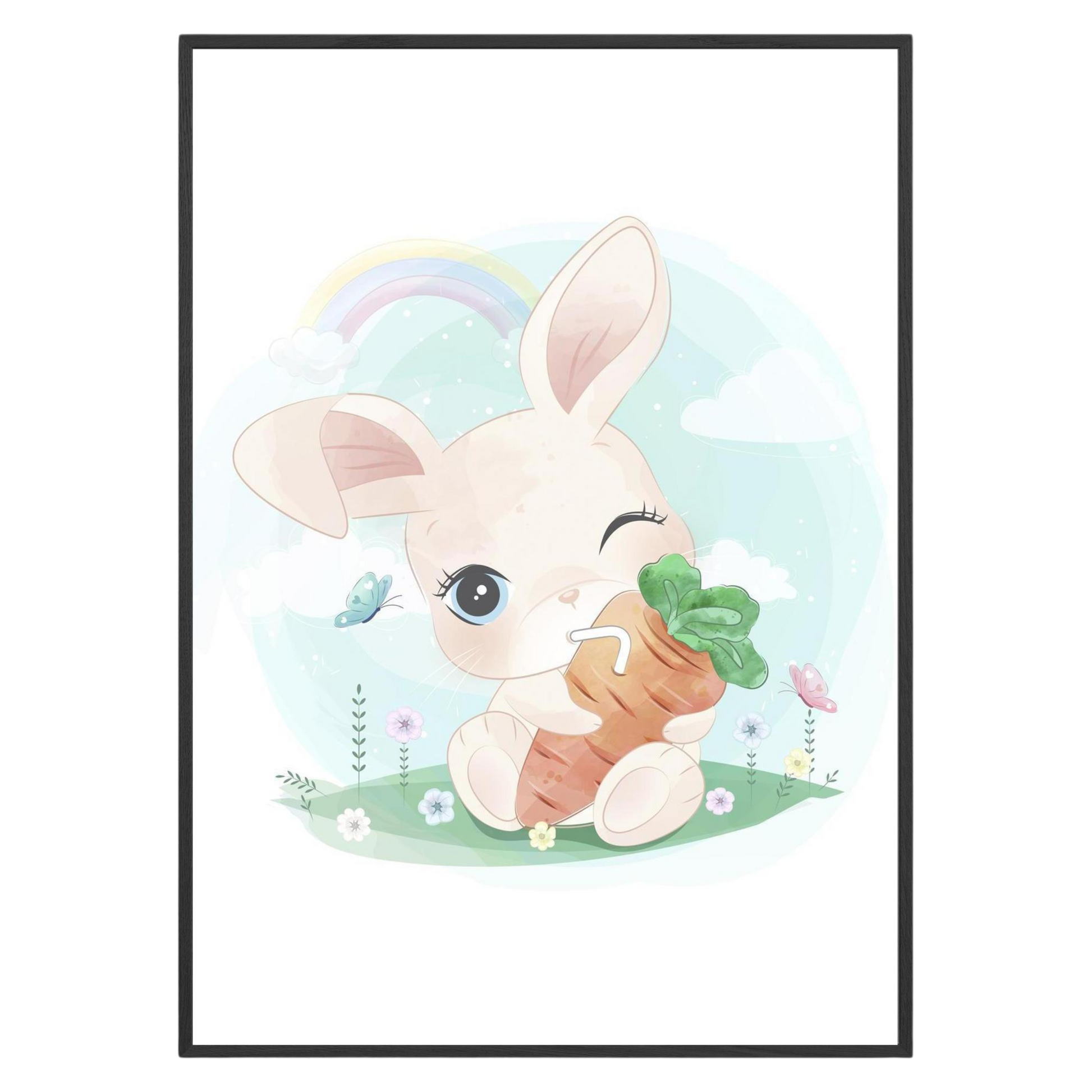 Add a dash of cuteness to your decor with our delightful Framed Poster Wall Art featuring an adorable bunny munching on a carrot ! This whimsical piece brightens up nurseries or playrooms, radiating joy and innocence . Perfect for young families and gift buyers, it encourages smiles and warmth in any space. Transform your walls into a cheerful haven with this