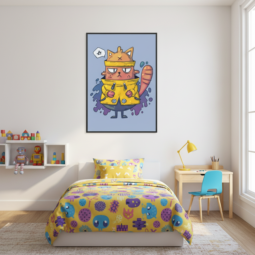 Unleash the charm of this playful feline in your space! With vibrant yellows and cartoonish expressions, this digital art print brings a lively touch to any living room or bedroom. Perfect for Gen Z renters and gift buyers, it's a quirky addition that screams personality. Transform your home decor into a whimsical wonderland with this standout poster wall art, a must-have for any digital art gallery online.