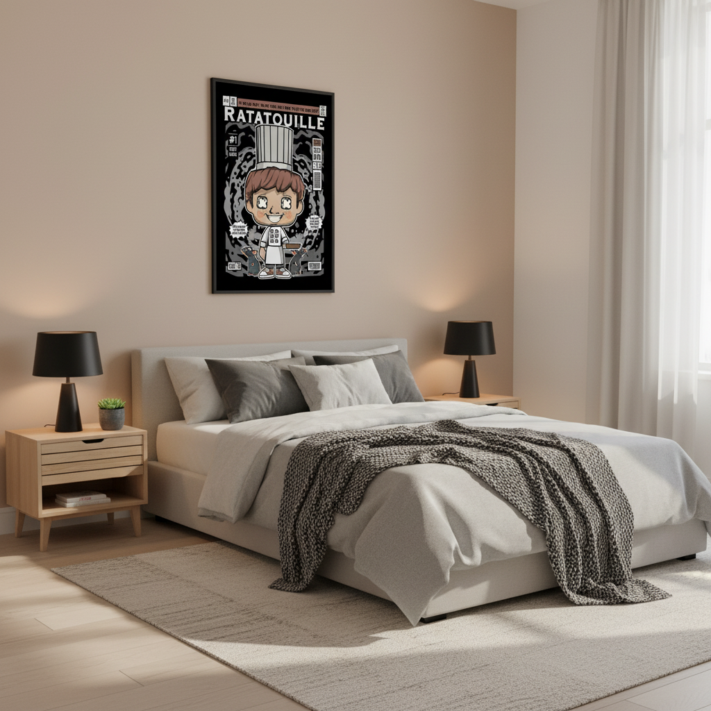 Bring a slice of whimsy to your kitchen with our fun Funko Framed Poster Wall Art showcasing Ratatouille’s talented chef! This delightful print enhances your space, encouraging culinary creativity and joy. Ideal for dining areas or kitchens , it adds a playful charm that resonates with food lovers. Add this piece to your home decor artwork collection and let every meal feel