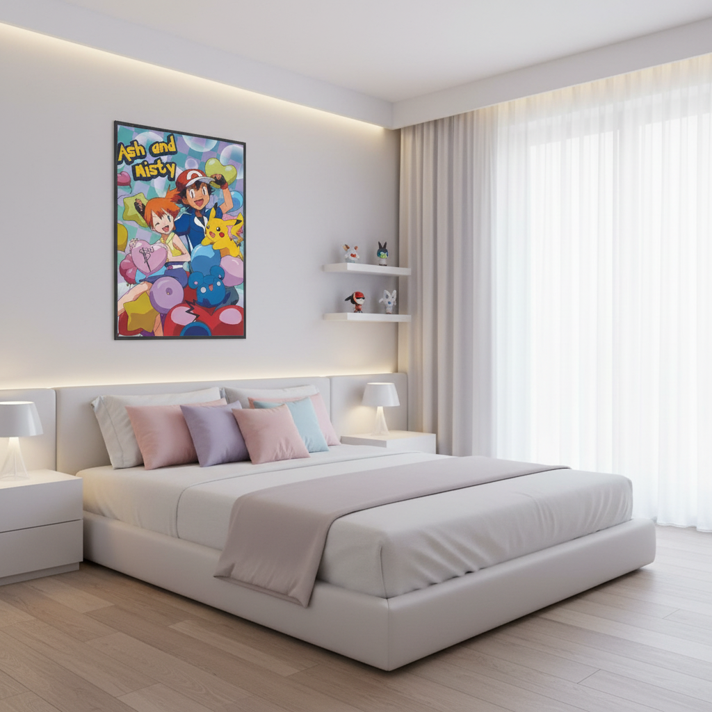 Celebrate friendship with "Dynamic Duo, " showcasing Ash and Misty alongside their adorable Pokémon companions ! This lively framed wall art adds a playful vibe to your space, making it an excellent choice for bedroom decor or a cheerful office . Infuse your walls with warmth and positivity , reminding you of the fun in every journey!