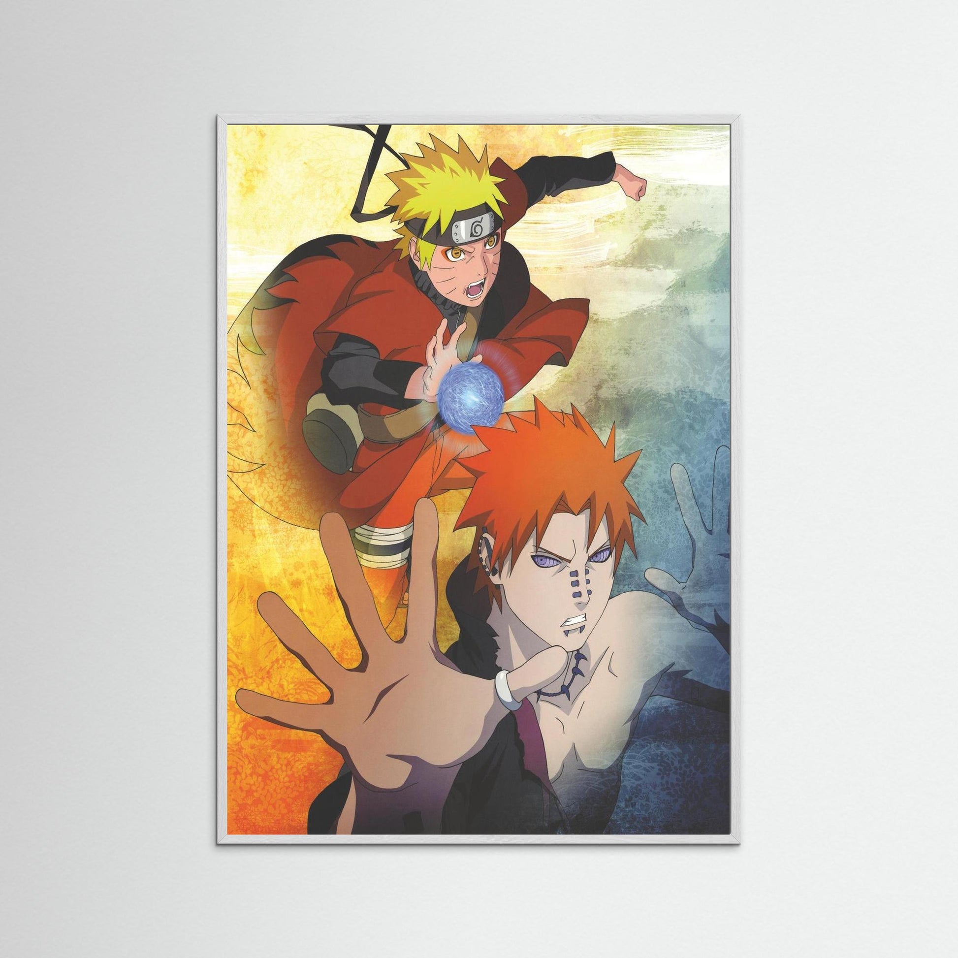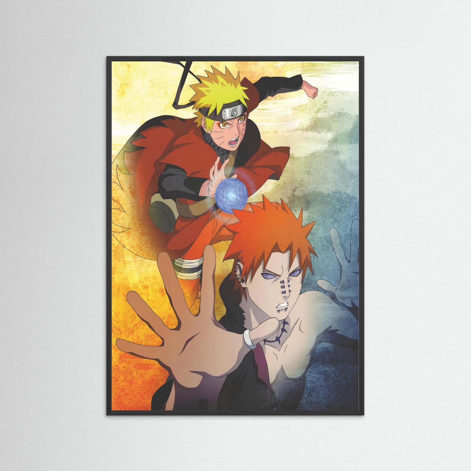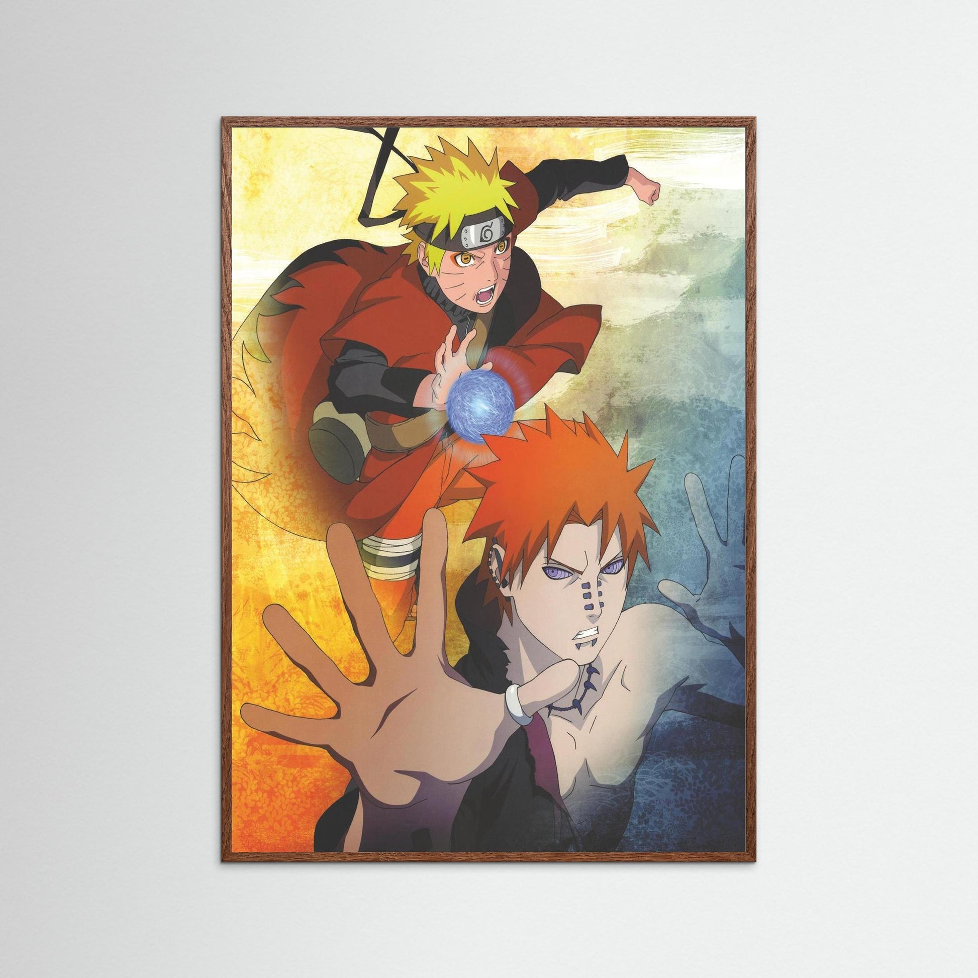 Unleash the drama with "Epic Showdown, " featuring a vibrant illustration of Naruto and Pain in a breathtaking clash. This framed poster wall art brings energy and adventure to your living room or bedroom . Ideal for anime lovers, it sparks excitement and nostalgia, transforming your wall decor into a portal to the ninja world!