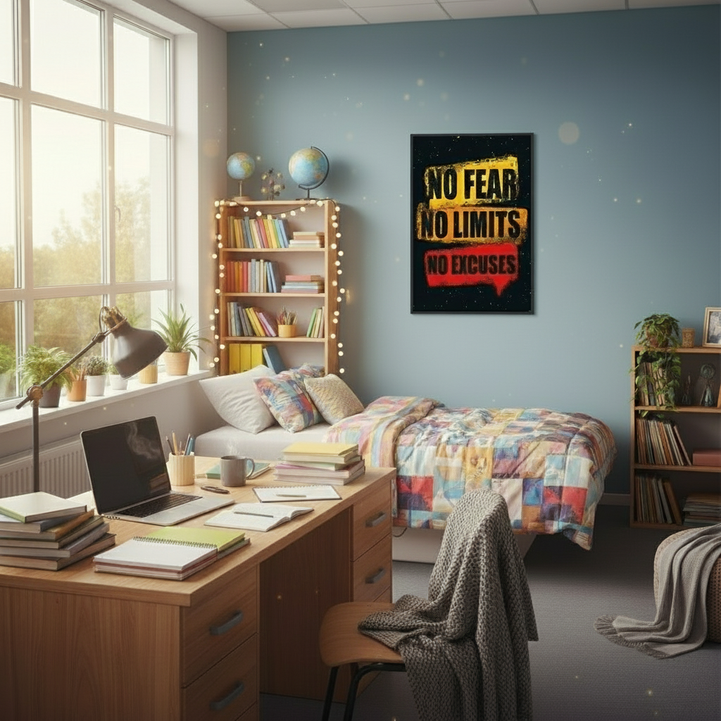 Embody resilience and strength with the "No Fear, No Limits, No Excuses" framed poster. Crafted to inject bold energy into your day, this artwork features distressed text in yellow and red splashes, signifying passion and perseverance. Ideal for personal or professional spaces needing a dash of motivation, this poster serves as a daily push towards overcoming obstacles and achieving greatness. The robust black frame not only protects but also enhances the artwork’s visual impact.