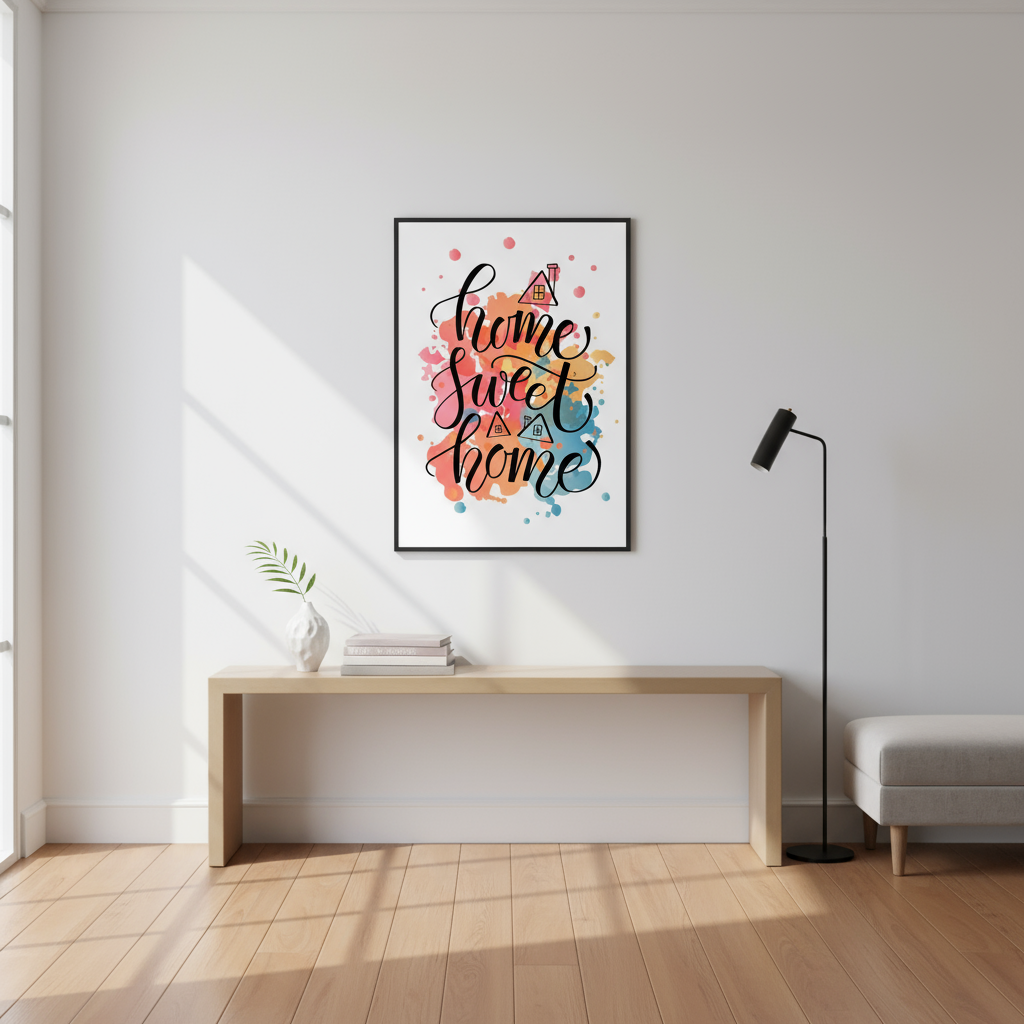 Celebrate the comfort of home with this cozy framed poster art! The beautiful "home sweet home" design, adorned with cheerful colors and playful splashes, adds warmth to any living room or bedroom . It’s not just wall art; it’s a reminder of love, laughter, and cherished moments . Transform your space into a haven of happiness and make your walls sing with joy!