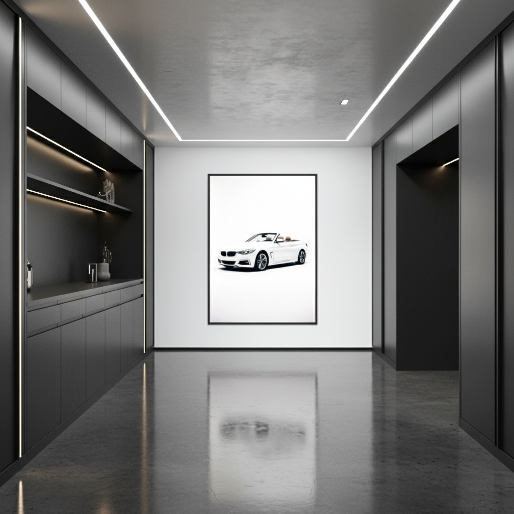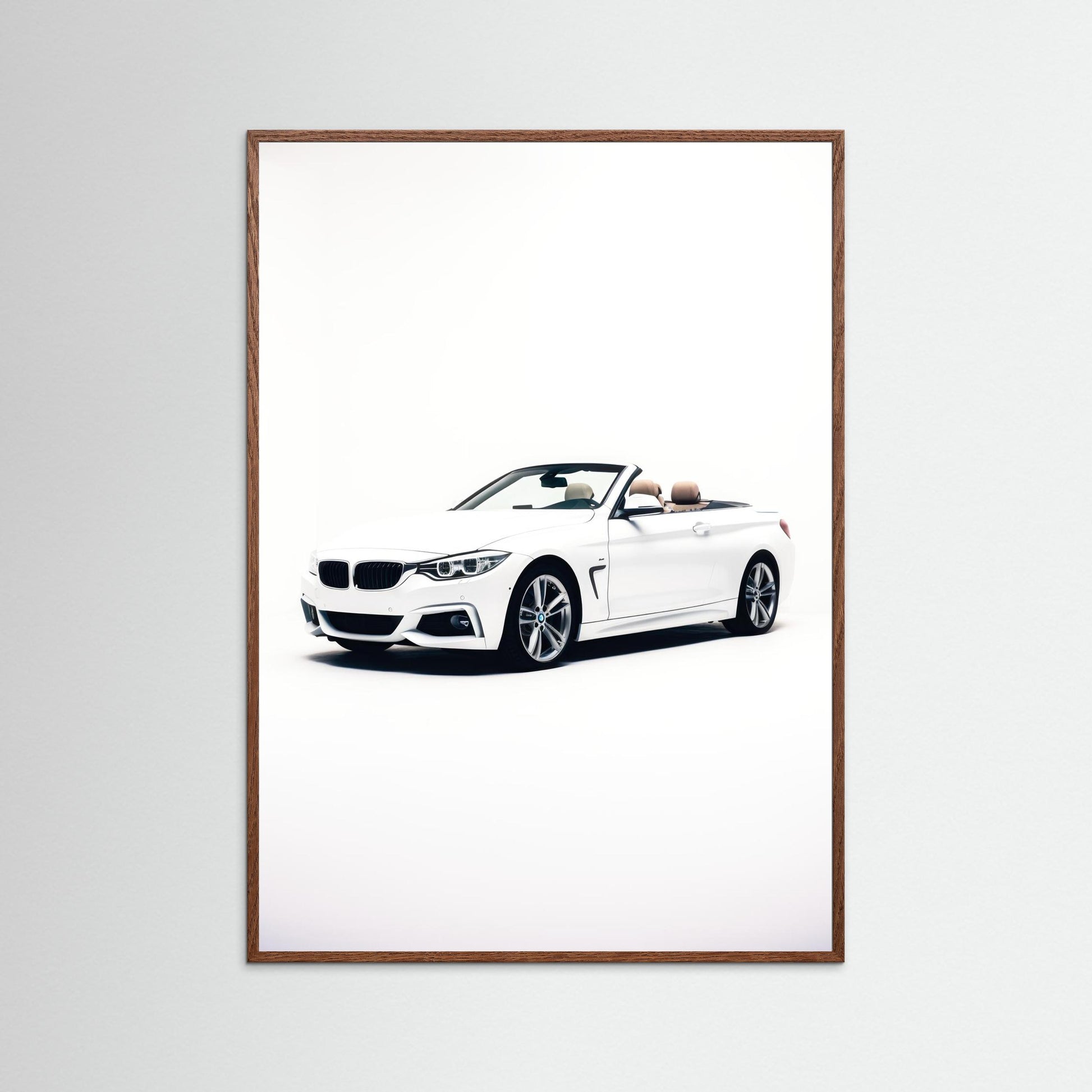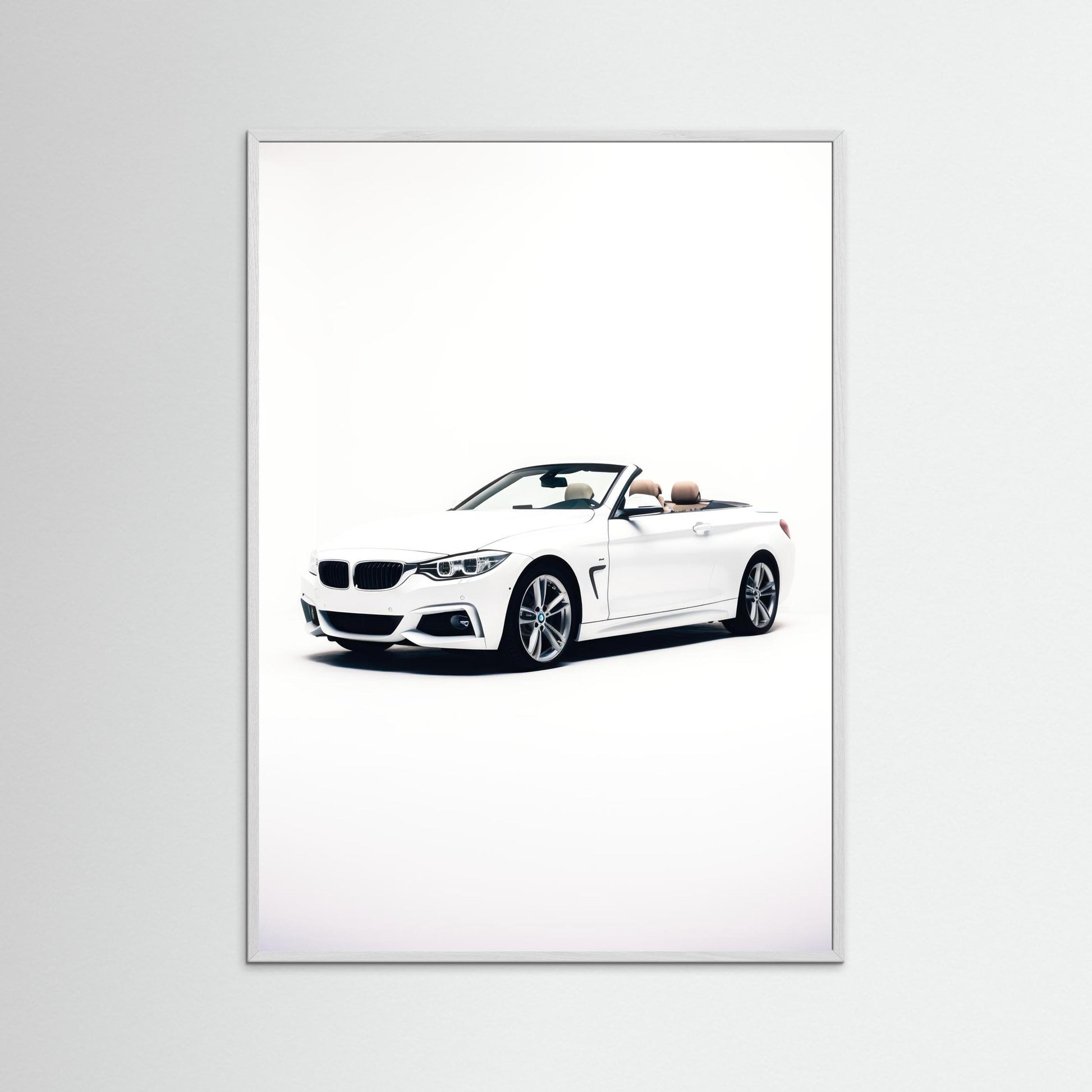 Experience sophistication with "Iconic Elegance, " featuring a pristine white BMW convertible against a clean backdrop . This chic framed poster art effortlessly enhances any bedroom or office decor, inspiring dreams of open roads and sunny days. Embrace luxury and style in your wall art while creating a serene, stylish atmosphere !