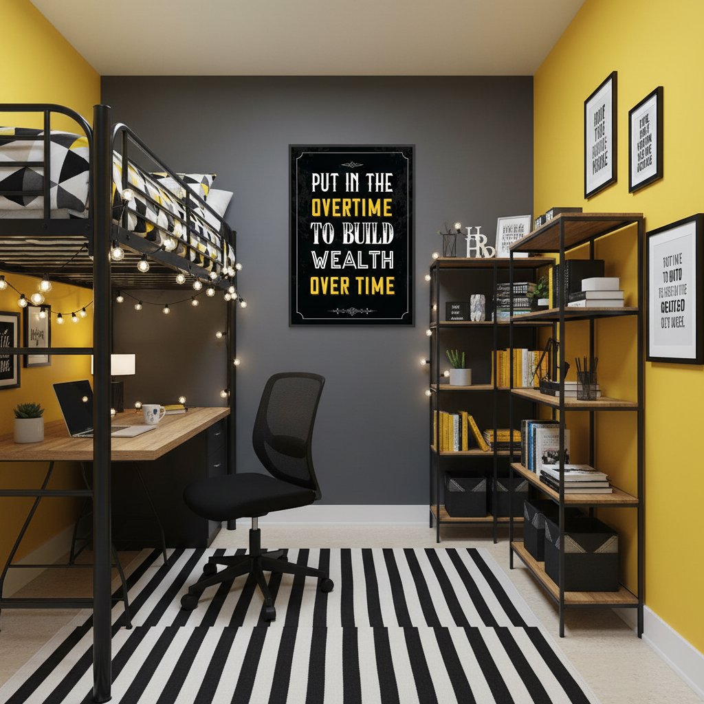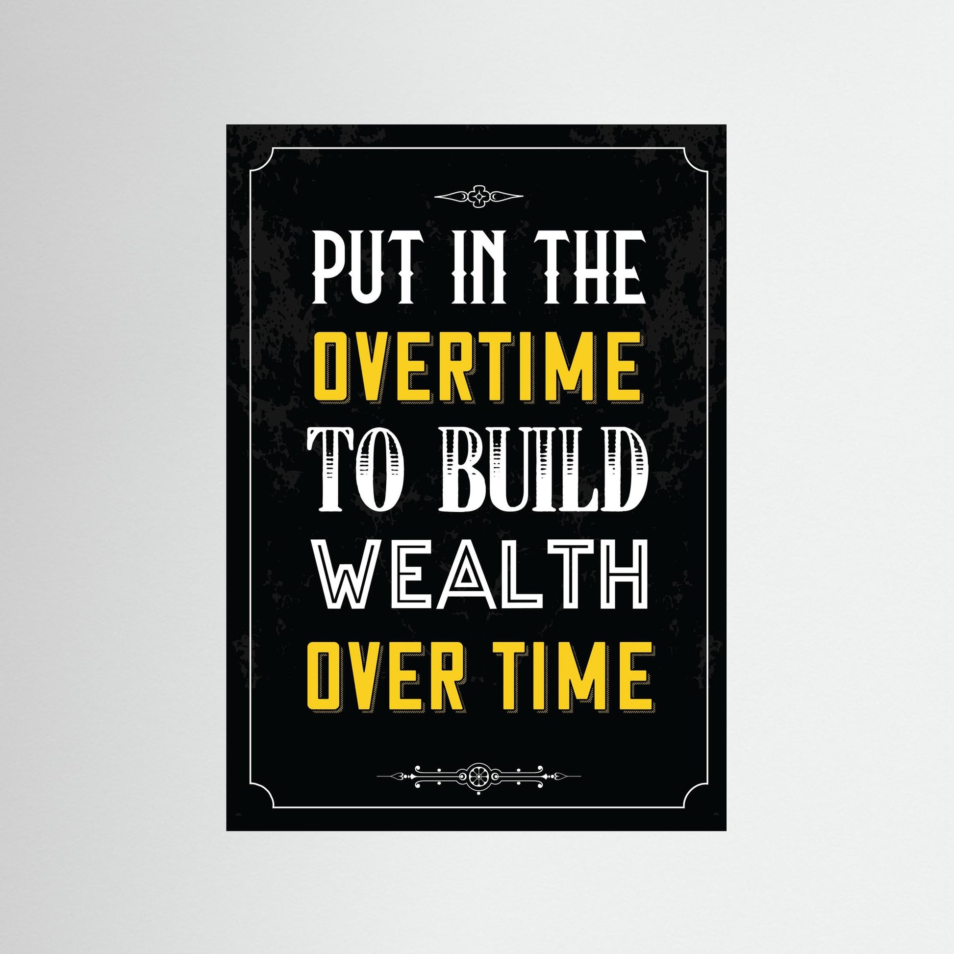 Put in the work with this motivational "Put in the Overtime to Build Wealth Over Time" framed poster ! Its bold typography and striking design remind you that commitment leads to financial success. Ideal for your office or study area, this wall art decor transforms your space into a daily source of inspiration . Get ready to hustle and watch your dreams come alive!