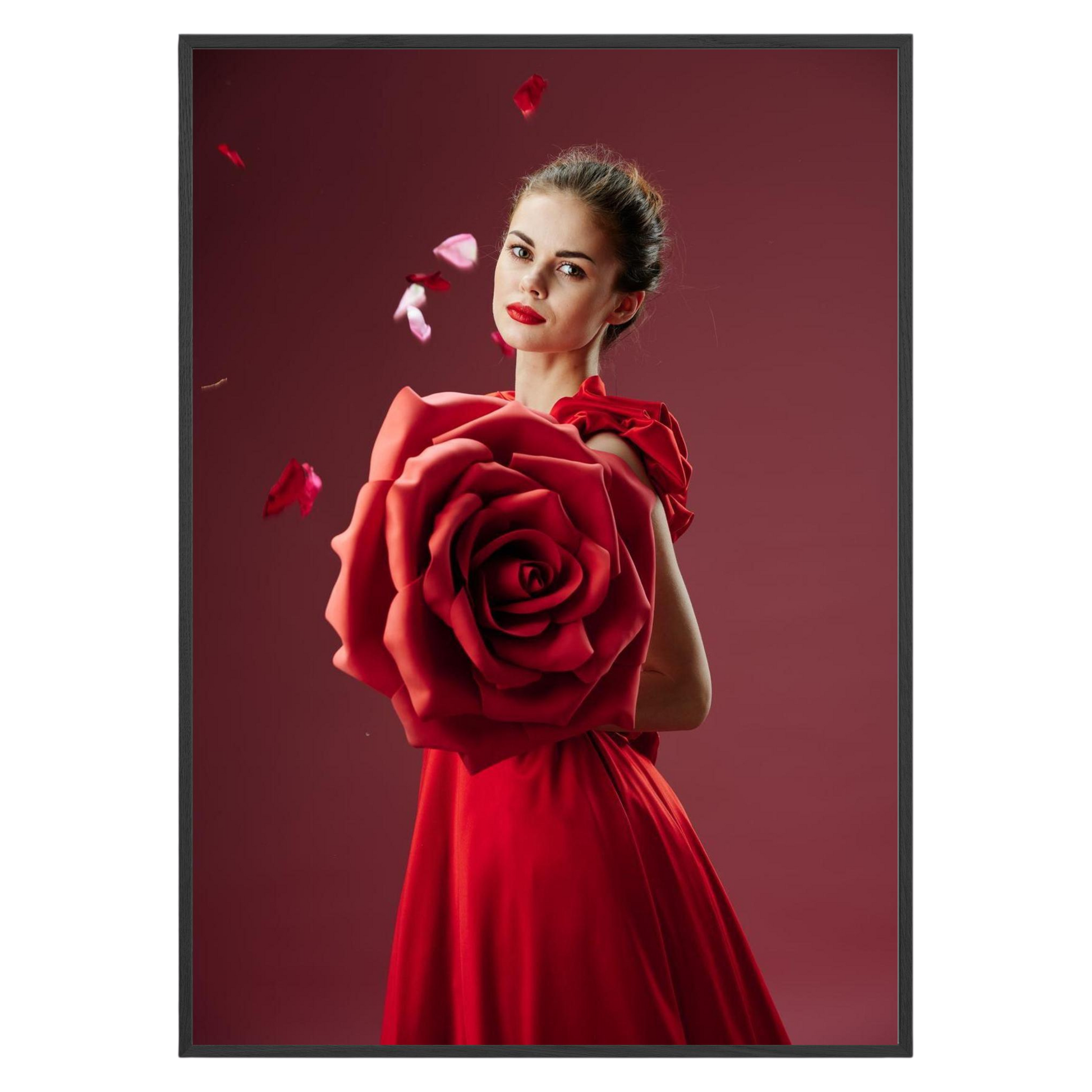 Immerse your space in romance with "Rose of Elegance," a stunning framed poster art piece portraying a woman holding a giant rose. This artwork brings beauty and drama into any living room, bedroom, or creative workspace, making it ideal for Gen Z renters and romantic gift buyers alike. Transform your wall art decor with this eye-catching piece! Explore our digital gallery online for more captivating digital art prints for home decor!