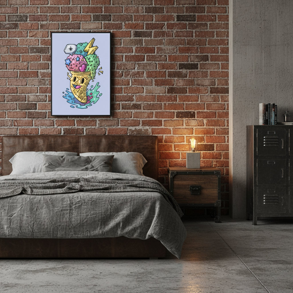 Dive into a whimsical adventure with this imaginative ice cream delight! This digital art print adds a splash of joy to any room, making it a perfect gift for design lovers and Gen Z renters. Its colorful, playful aesthetic makes it an impactful piece of wall art for your living room or as a centerpiece in a digital art gallery online.
