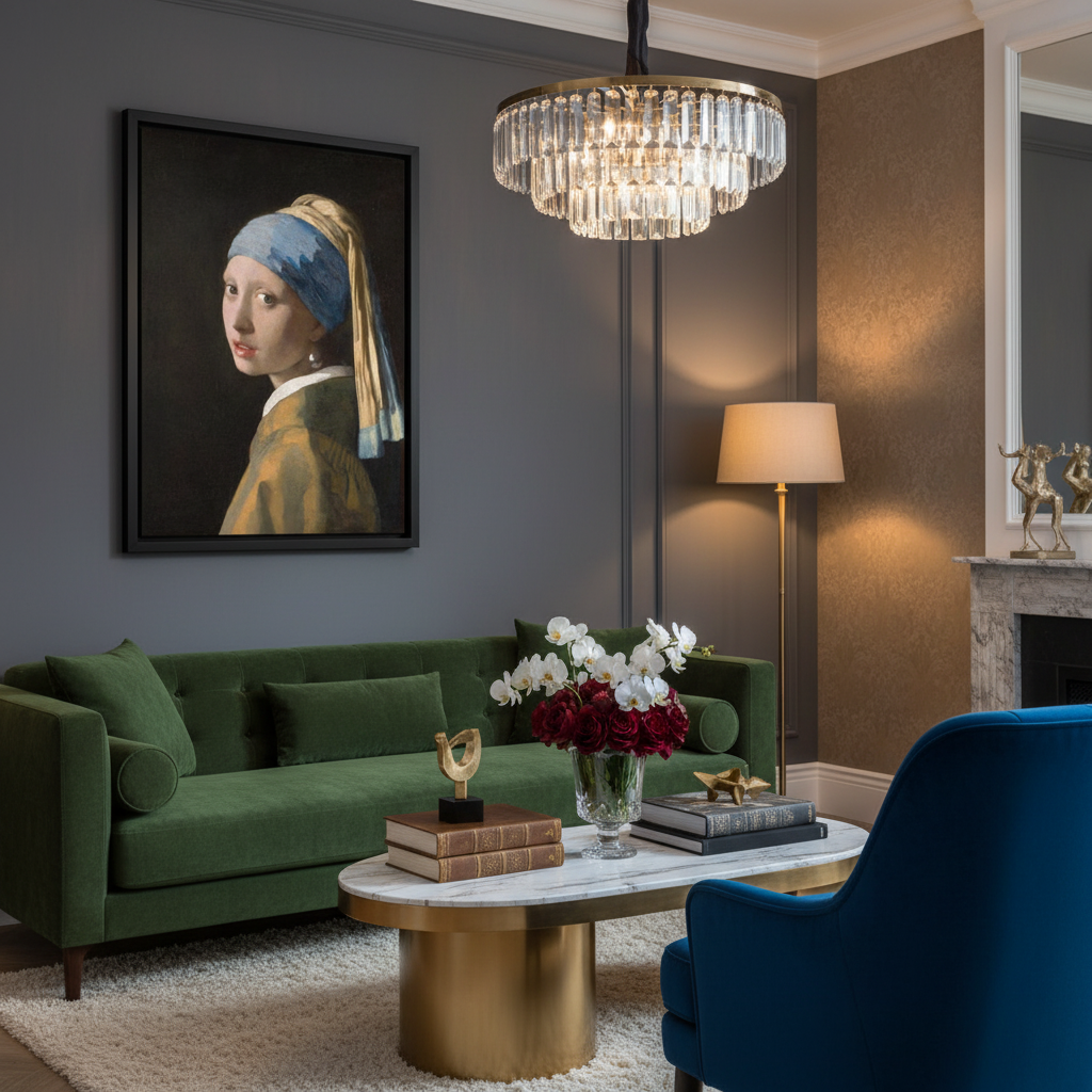 Minimal yet magnetic, The Girl with the Pearl evokes quiet mystery and timeless grace. The striking contrast between the dark background and the luminescent face captures the purity of light and emotion, making it one of the most captivating portraits ever painted.
