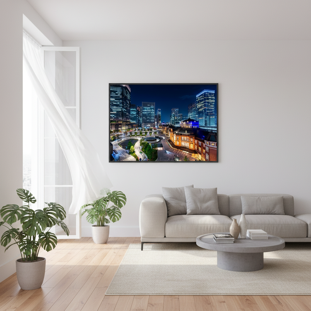 Celebrate the architectural wonder of Tokyo Station with this captivating framed poster. Its unique blend of historic charm and modern design makes it a conversation starter